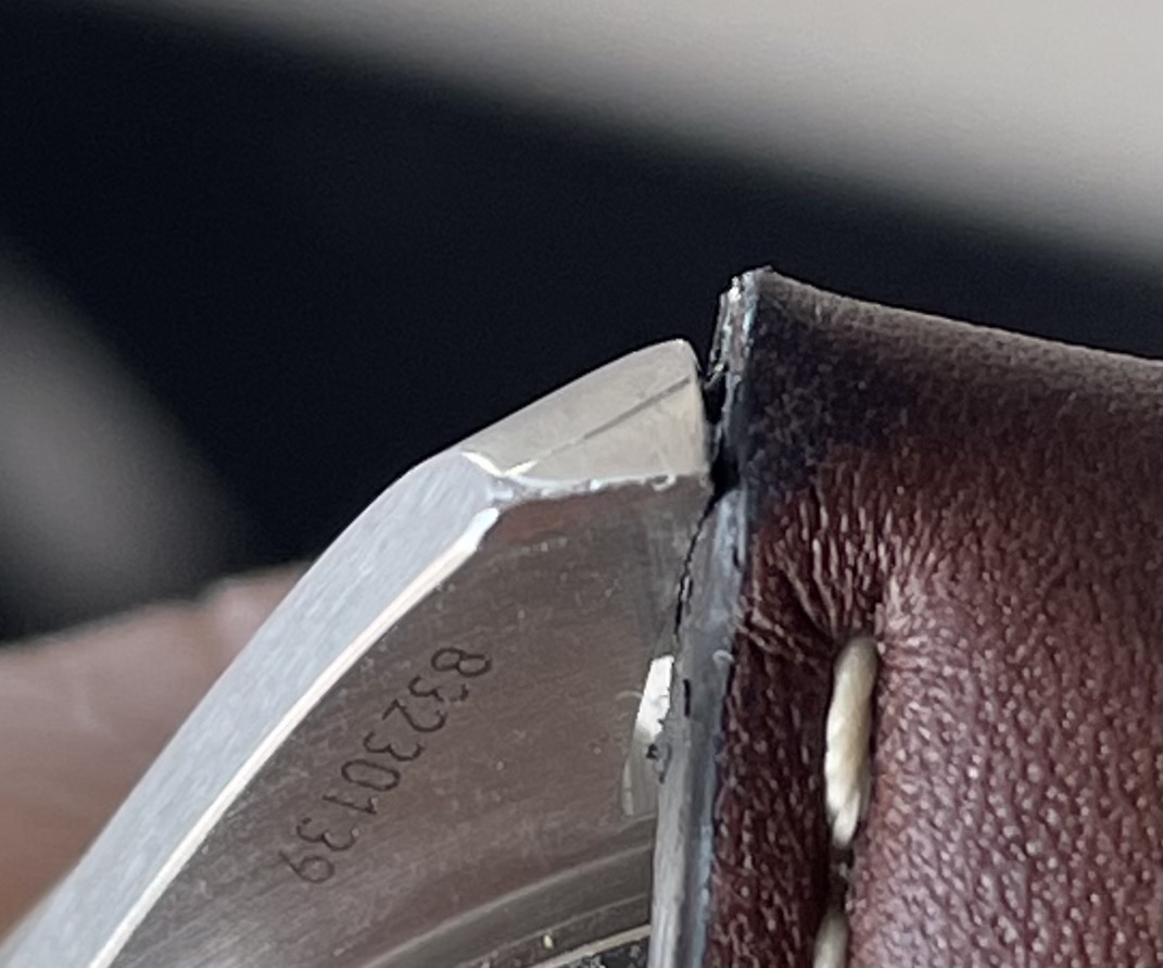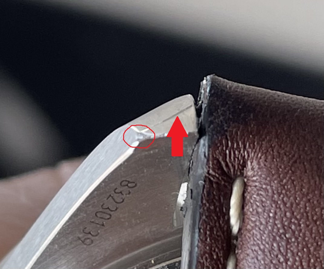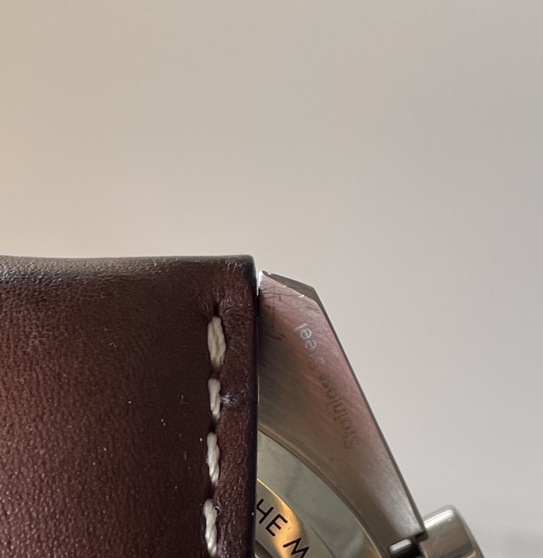 They told me they were unable to fit the bracelet as they didn't have the correct tool, so put the leather strap back on (in the back of the shop). Initially this was the wrong way round necessitating they gave it another go. Shortly after that I inspected the watch and this is what I found.