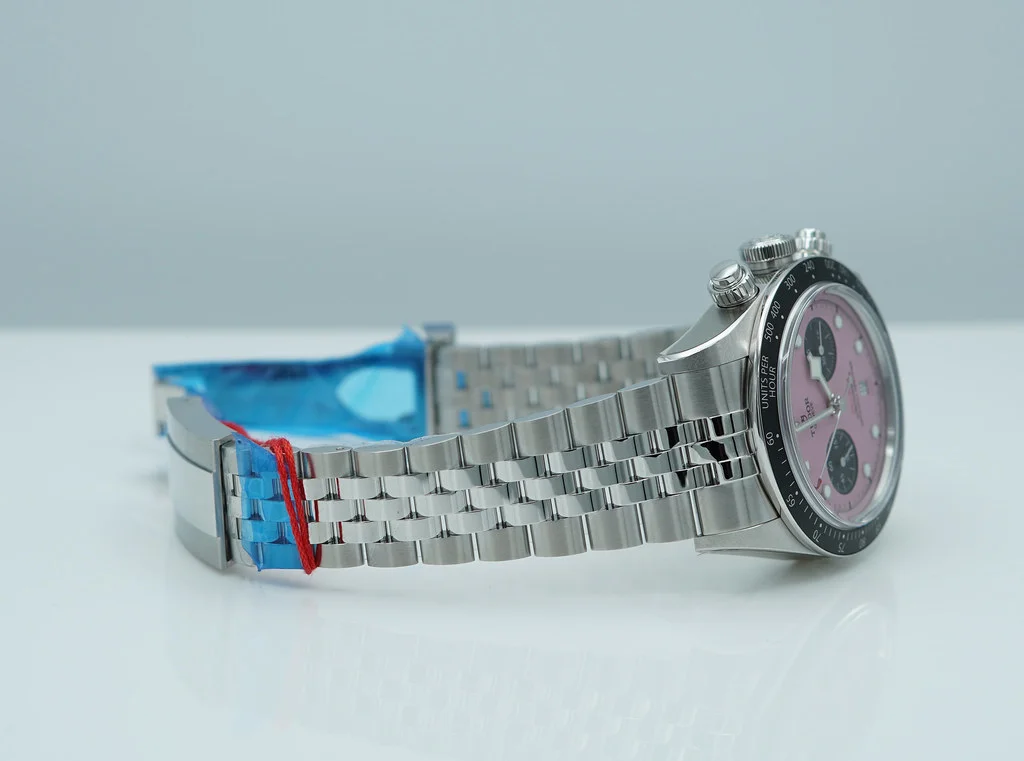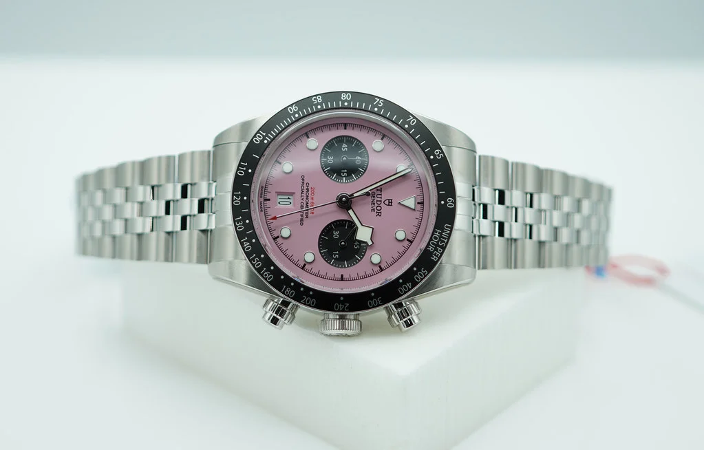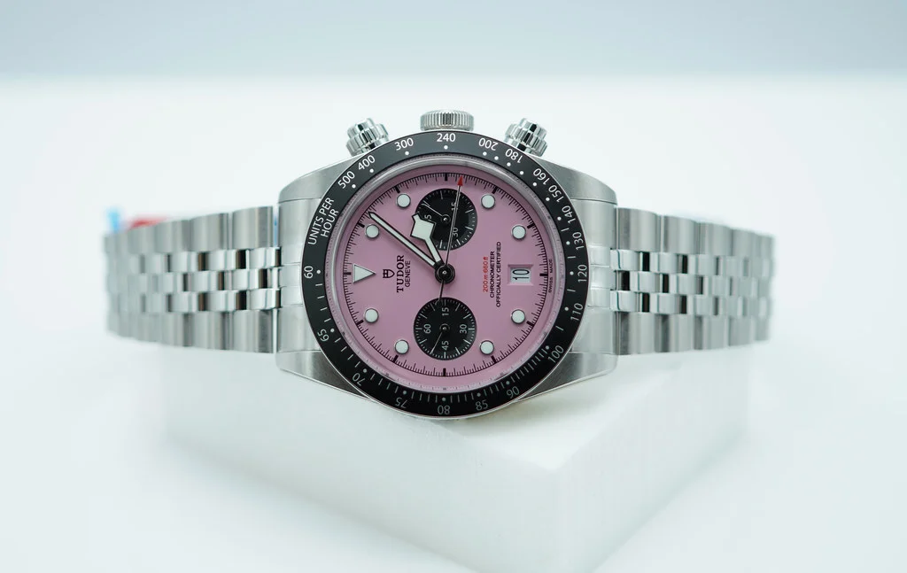 A Brand New In Box & Very Beautiful New 2024 Model 41mm Tudor 79360n-0019 Black Bay Chronograph Stainless Steel with Pink Dial & Black Bezel. Purchased from Tudor USA Authorized Dealer in 10.2024. Unworn & Unsized with Stickers Intact. Full Set & Under 5 Years Factory Warranty.