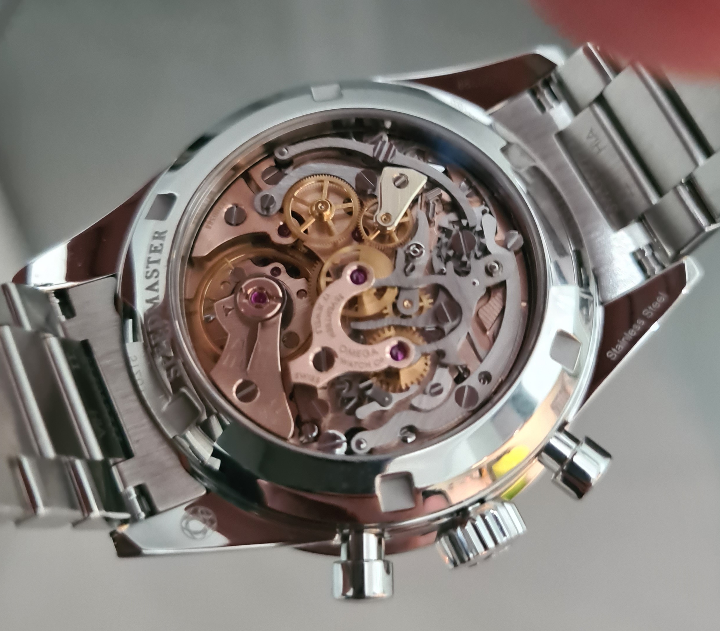 Also not new news but good to recap is Omega's use of their Sedna-gold PVD on (most of the bridges). The use of "German silver" on the one bridge is IMHO questionable (a potential for tarnishing) and while the Omega spokeperson doesn't know why they chose that material I assume that at the very least, Omega wanted to color to match the original 321 which also used a different finish (or material) for the one bridge. I'm sure a watchmaker like @Archer can clarify to purpose of this one bridge and maybe why it couldn't be plated back then... .