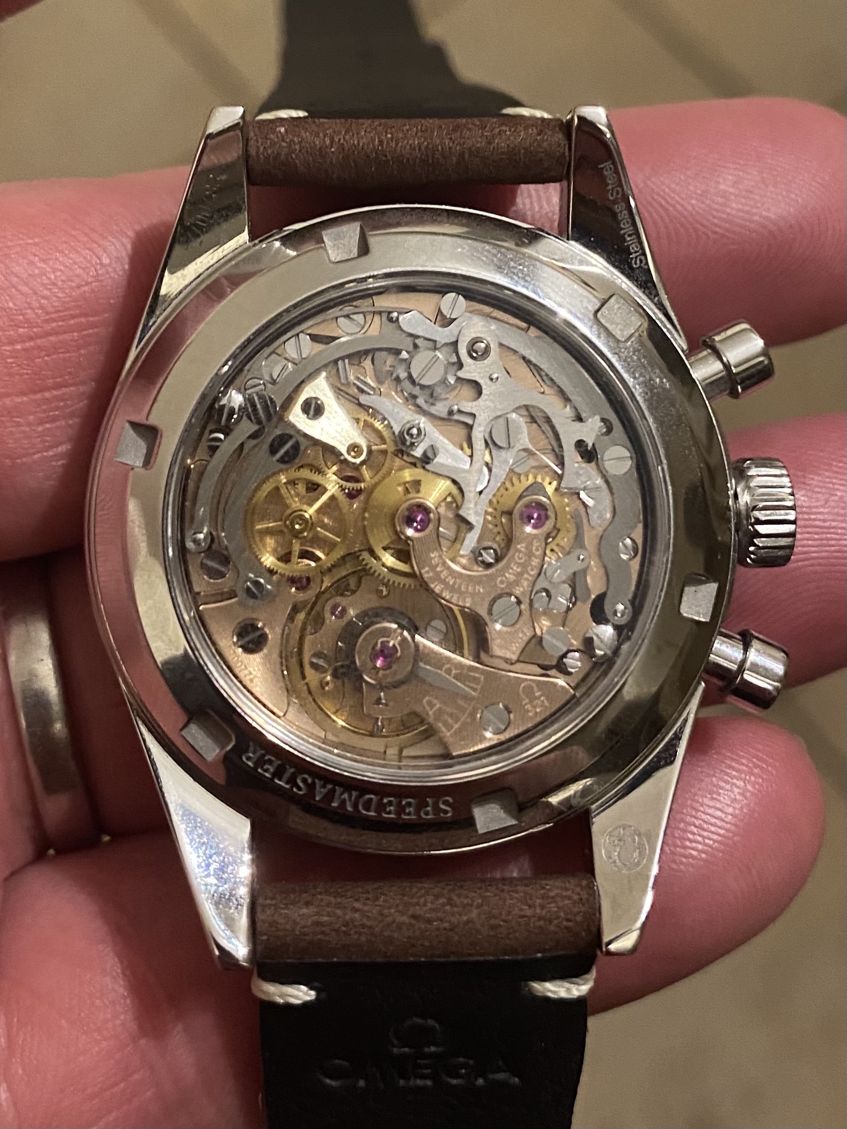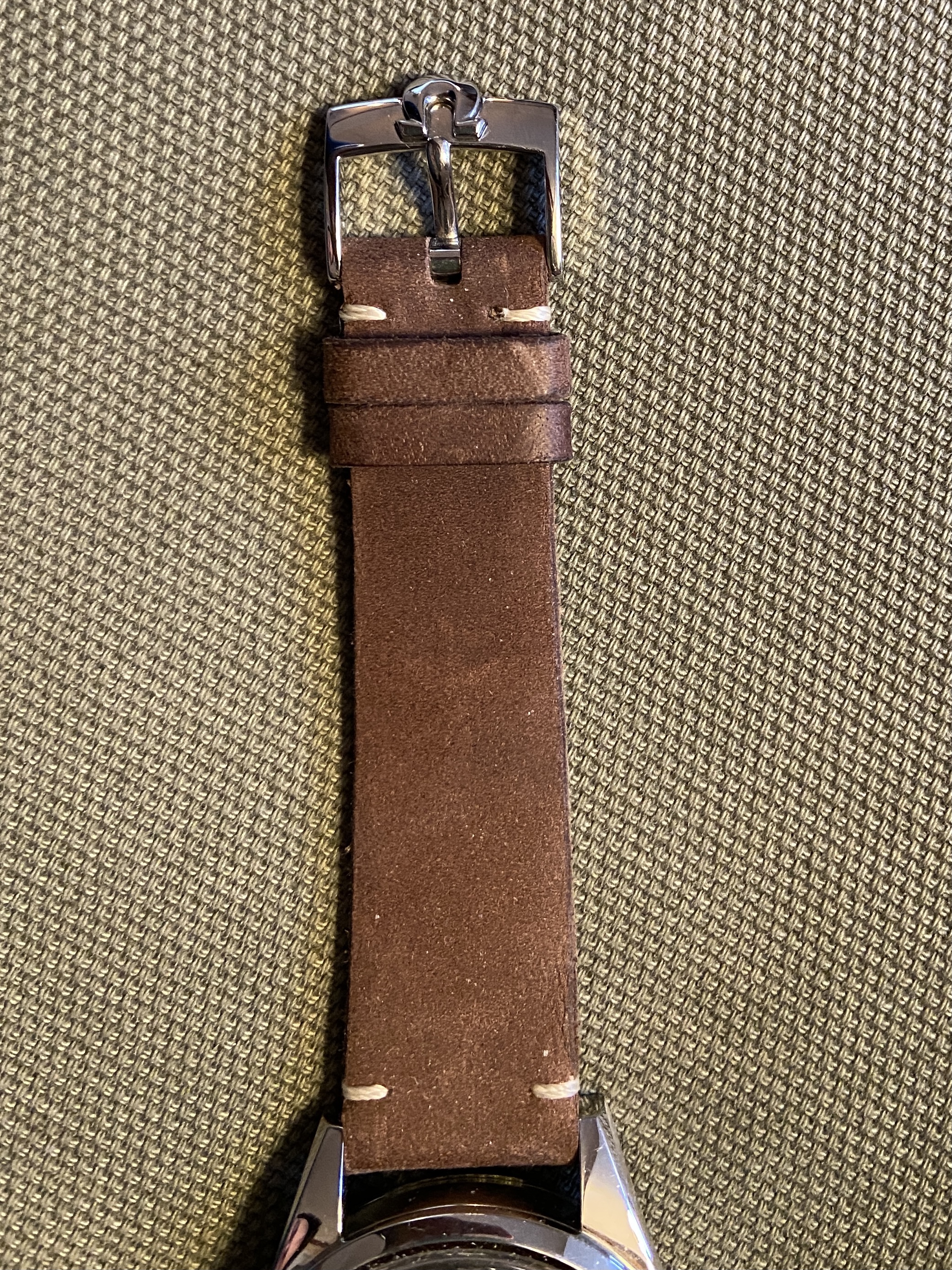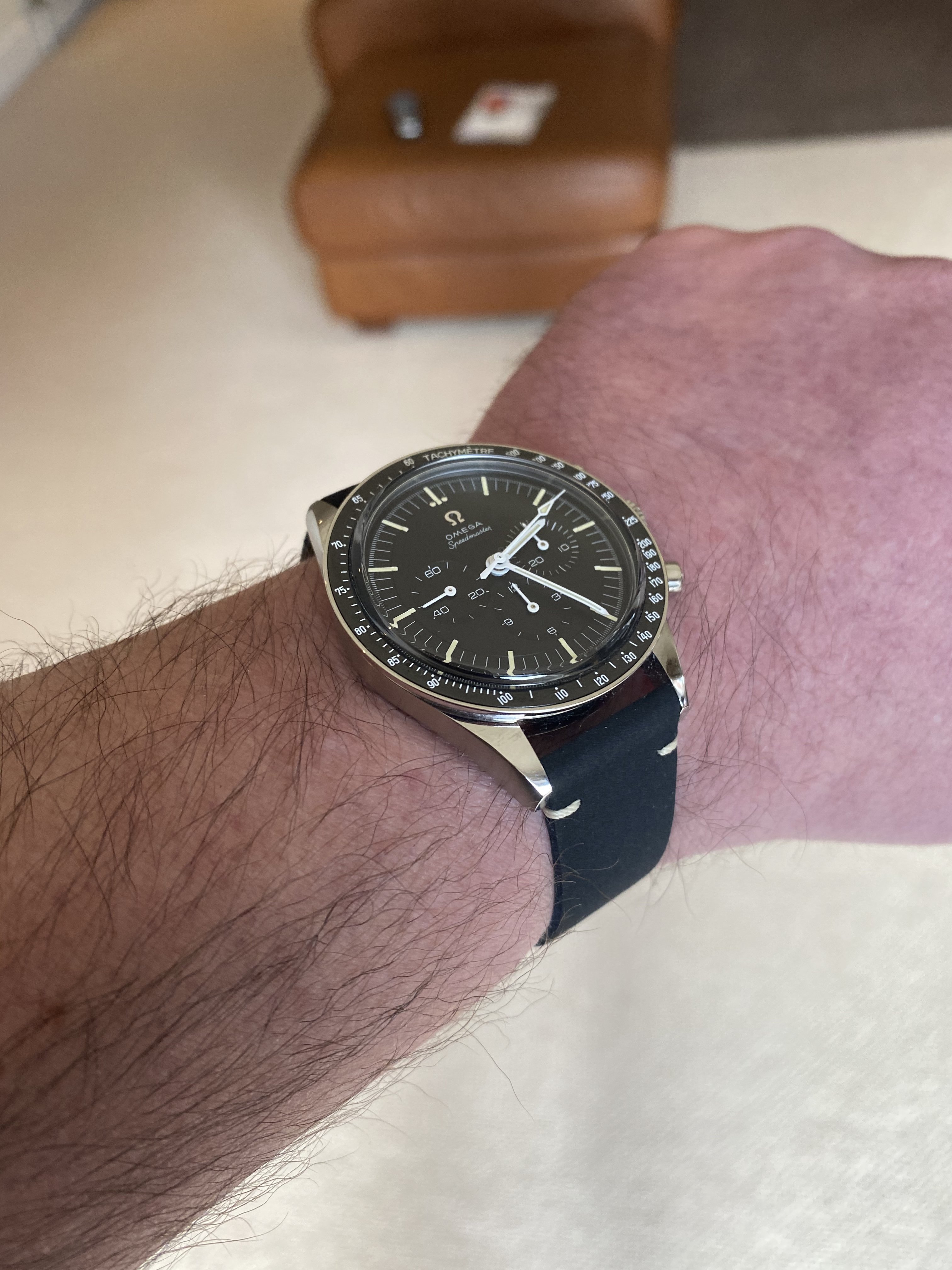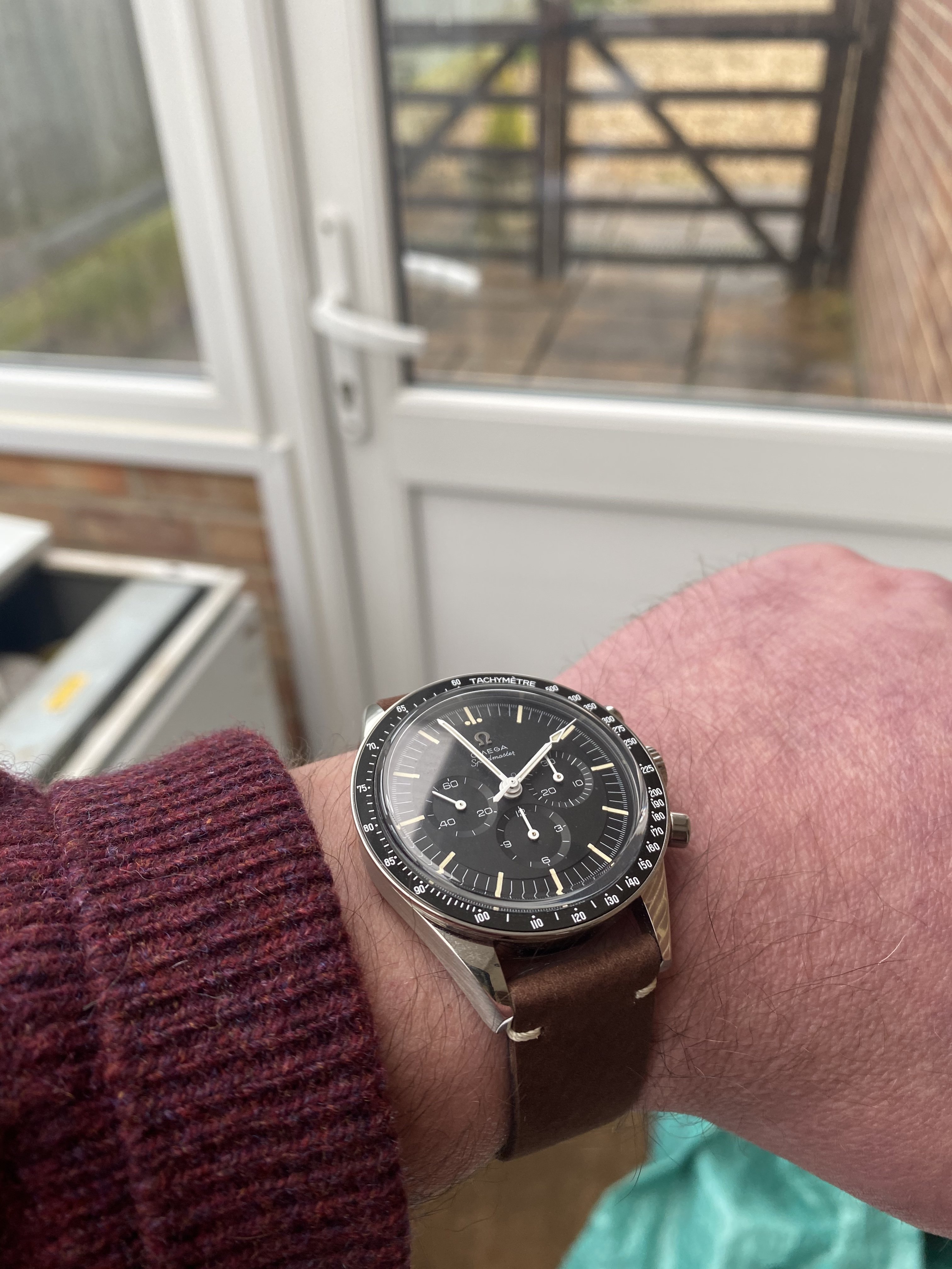 Thought I’d share a pic of the new strap. I’ve ordered both the dark brown and black from the trilogy watches. I like them as they are extremely supple from the outset and very thin. I think the brown looks good (black not here yet). Came with the vintage omega buckle to complete the look.