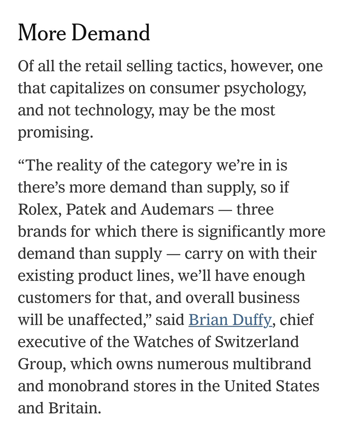 So is this admitting now that the scarcity of Rolex is something they are purposefully engineering? Because my impression all along is that you have resisted this idea.