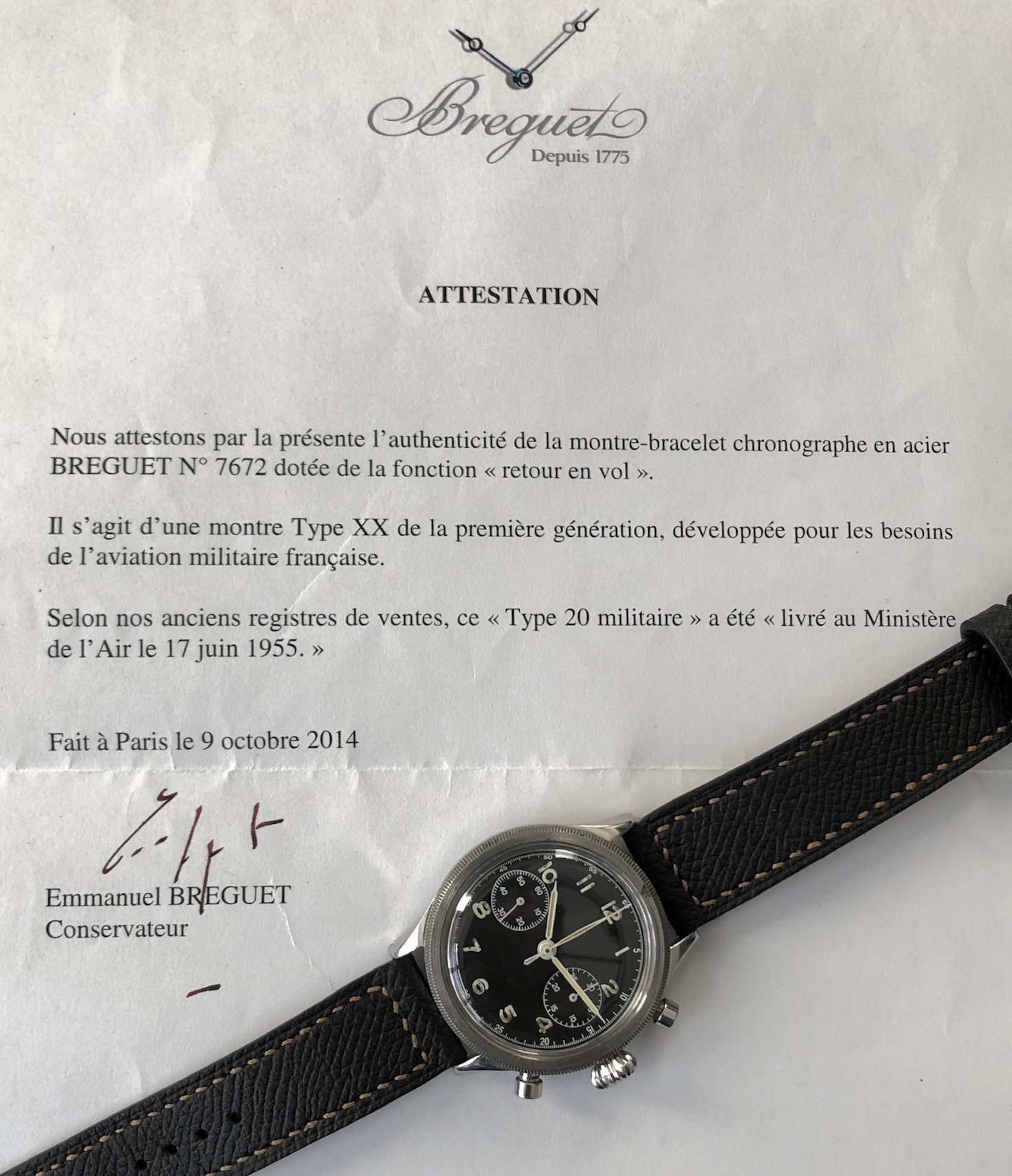Includes original letter of attestation from the Breguet archives