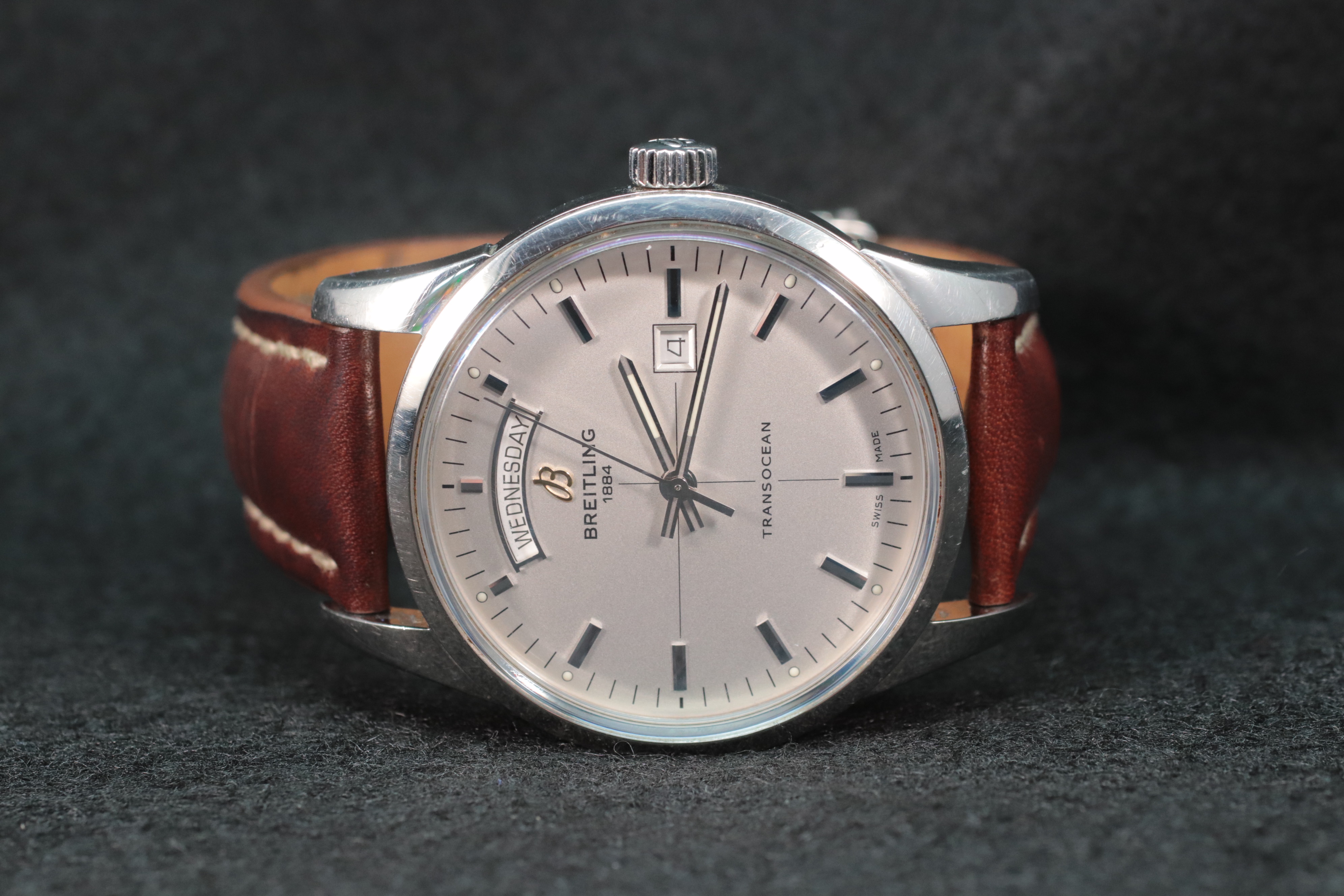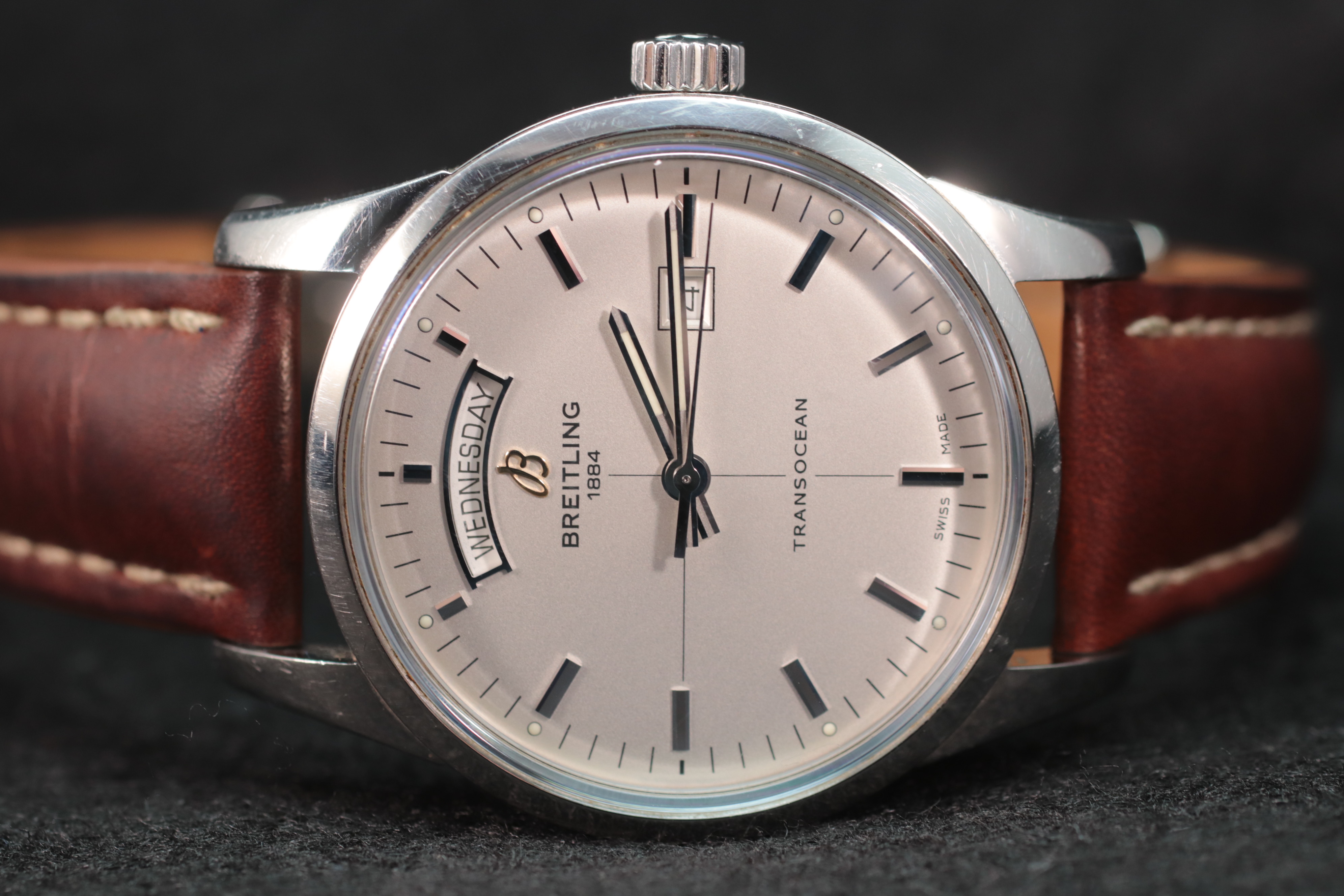··Spam RiskCatch and release. For sale is a Breitling A45310 Transocean Day Date Chronometer. Service history is unknown. I am not the original owner. Watch is in overall nice condition as the pictures show. The crystal does have few marks to the coating, but I can only see them with the help of a loupe. The last picture shows timing dial up fully wound. Will include a picture 24 hours from now to show timing after running down. I am asking $1500. Shipping and paypal will be extra on top of that. I have several references on here and almost 20 years of buying and selling on ebay. Refunds gladly given if not as described. Please feel free to ask any questions. Watch is located in Portland Oregon if a face to face is preferred.