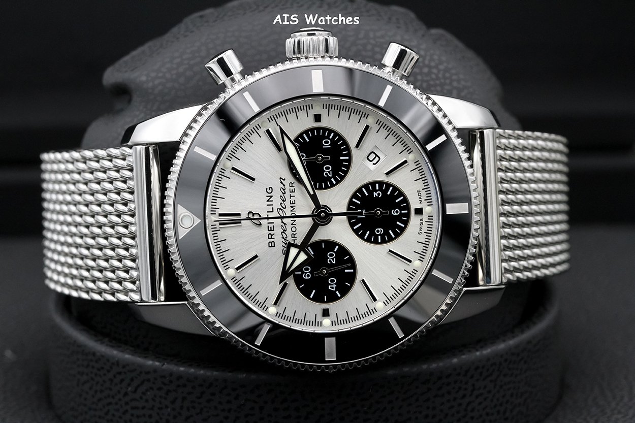 ** Breitling AB0162121G1A1 Superocean Heritage B01 Chronograph Silver Dial SS Strap