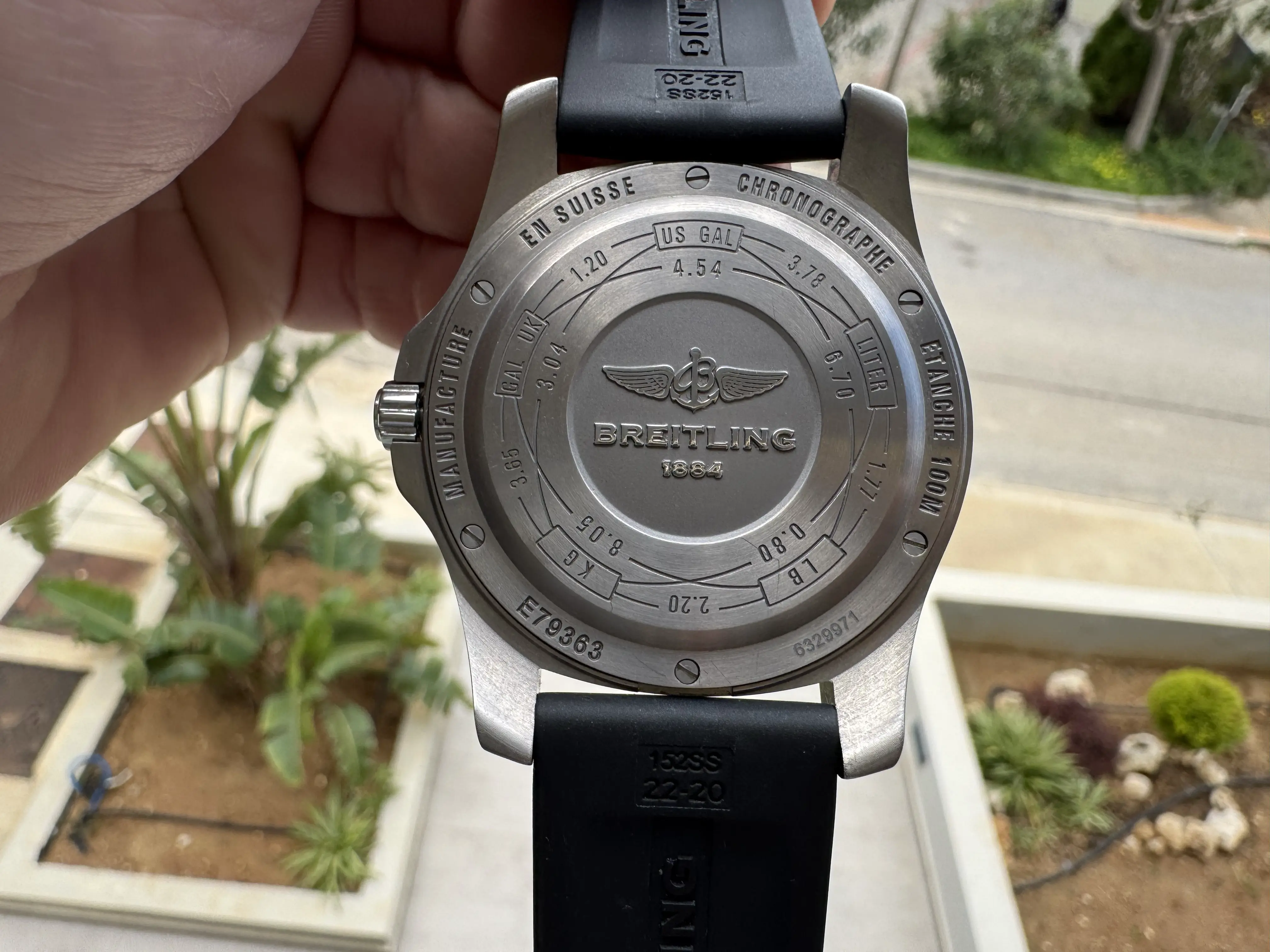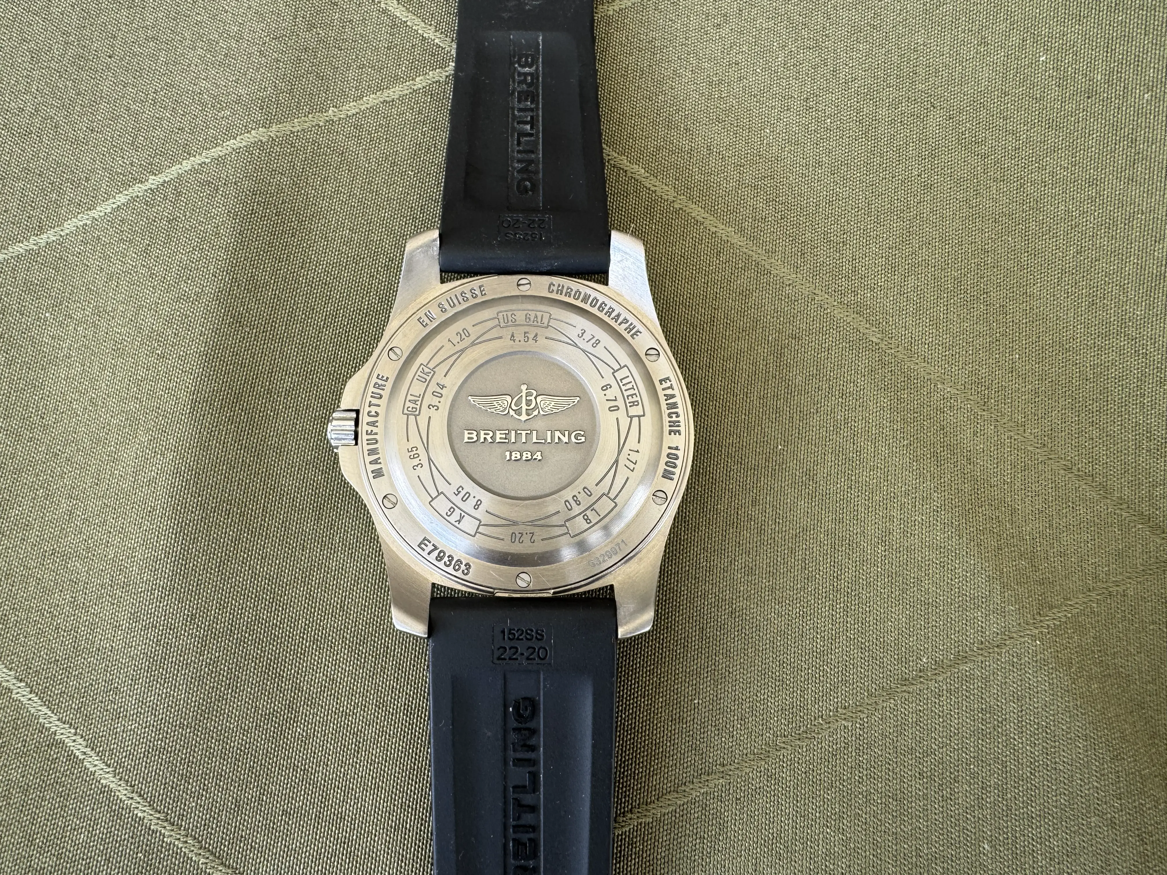 • Movement: Breitling 79 SuperQuartz (thermocompensated), COSC-certified chronometer, 10x more accurate than standard quartz.