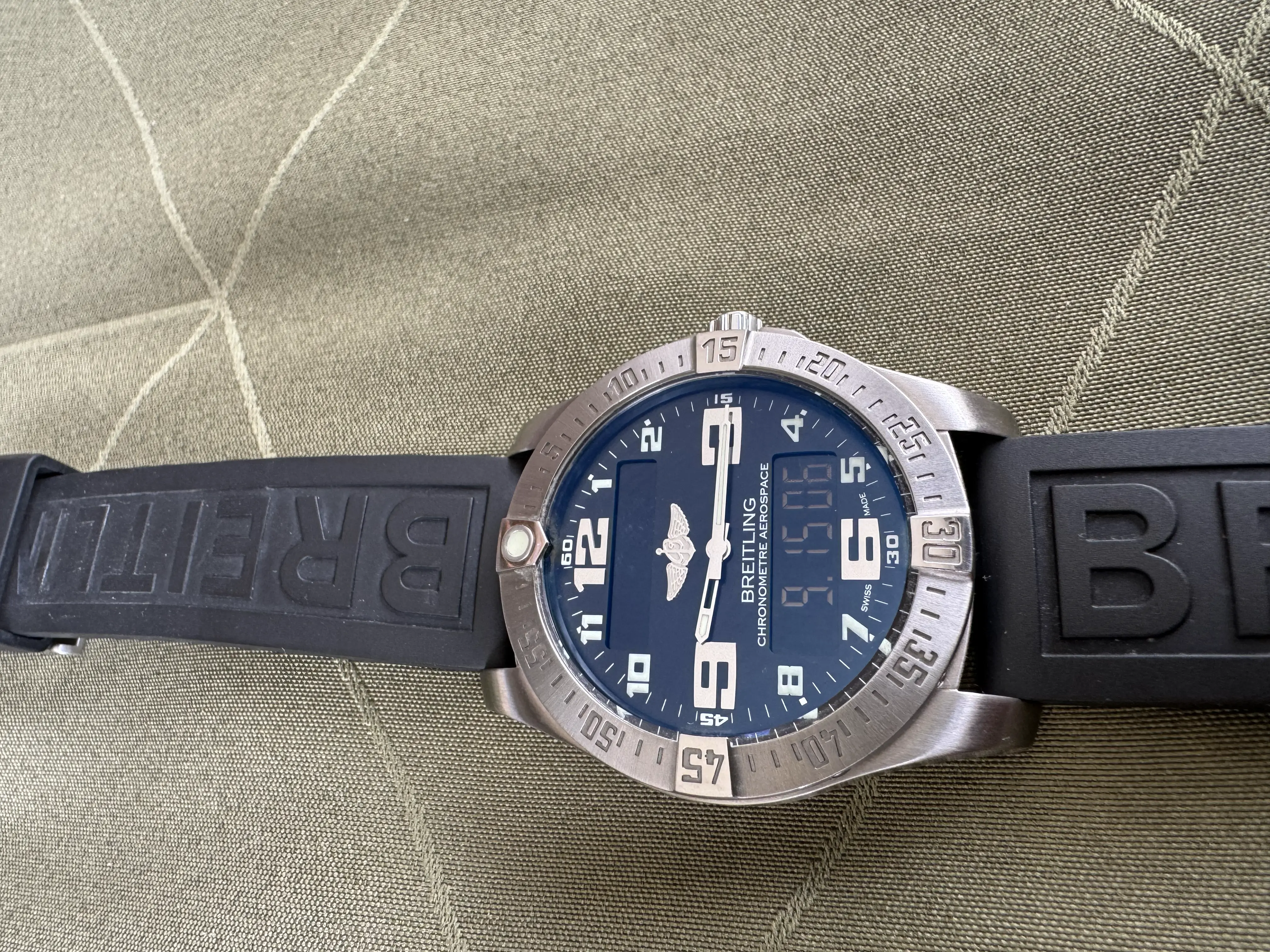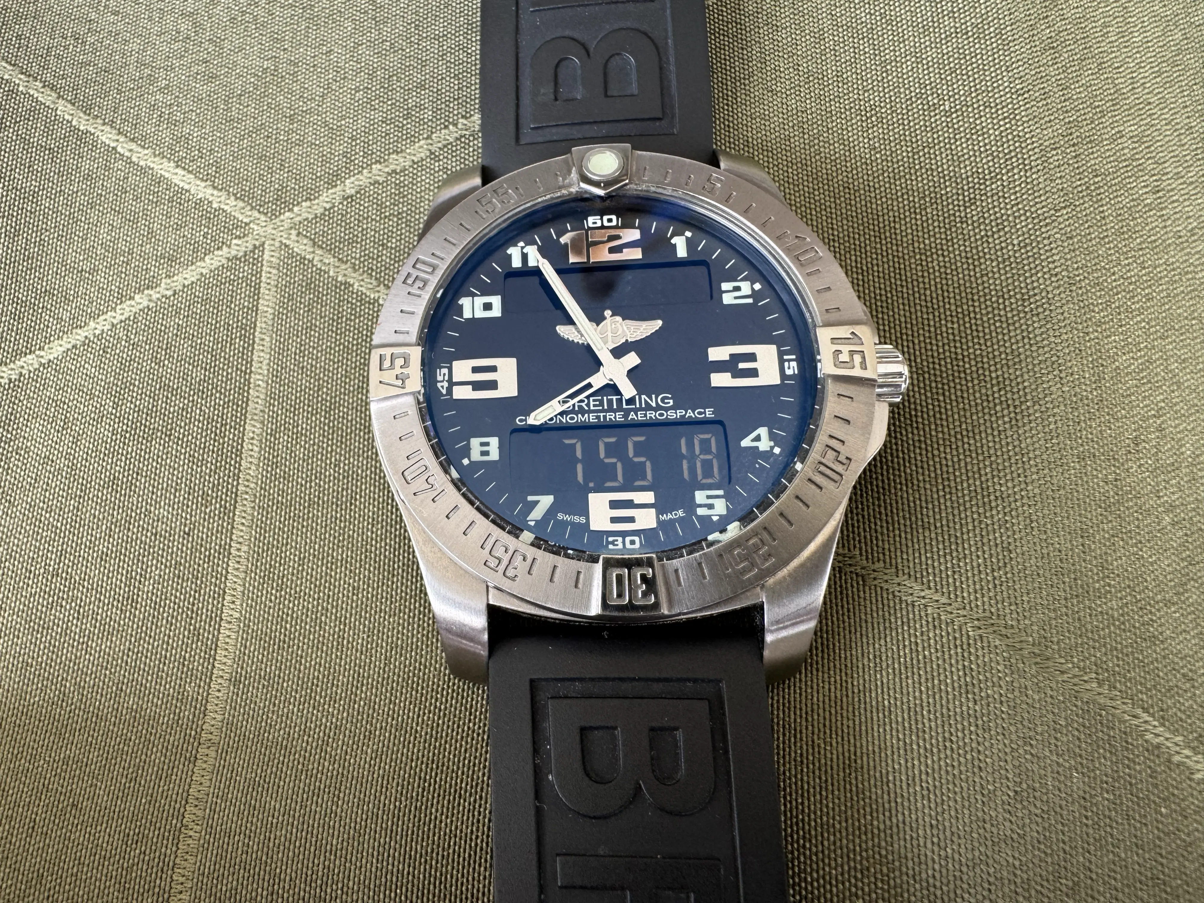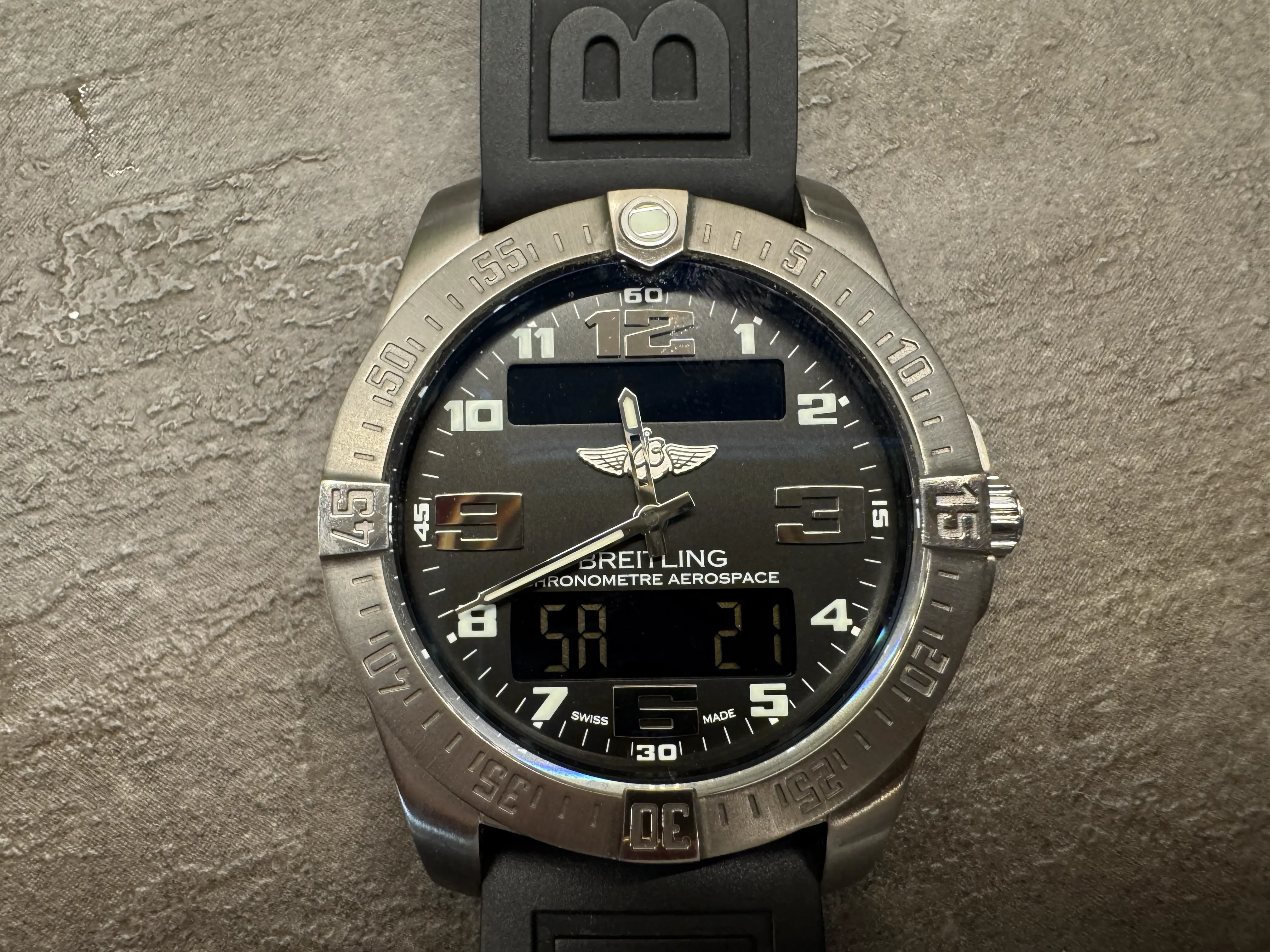 ·Up for sale is a stunning Breitling Aerospace EVO (Ref. E79363), the most modern and refined iteration of the legendary Aerospace line. Crafted from Grade 5 Titanium, this timepiece is incredibly lightweight, durable, and comfortable for daily wear.