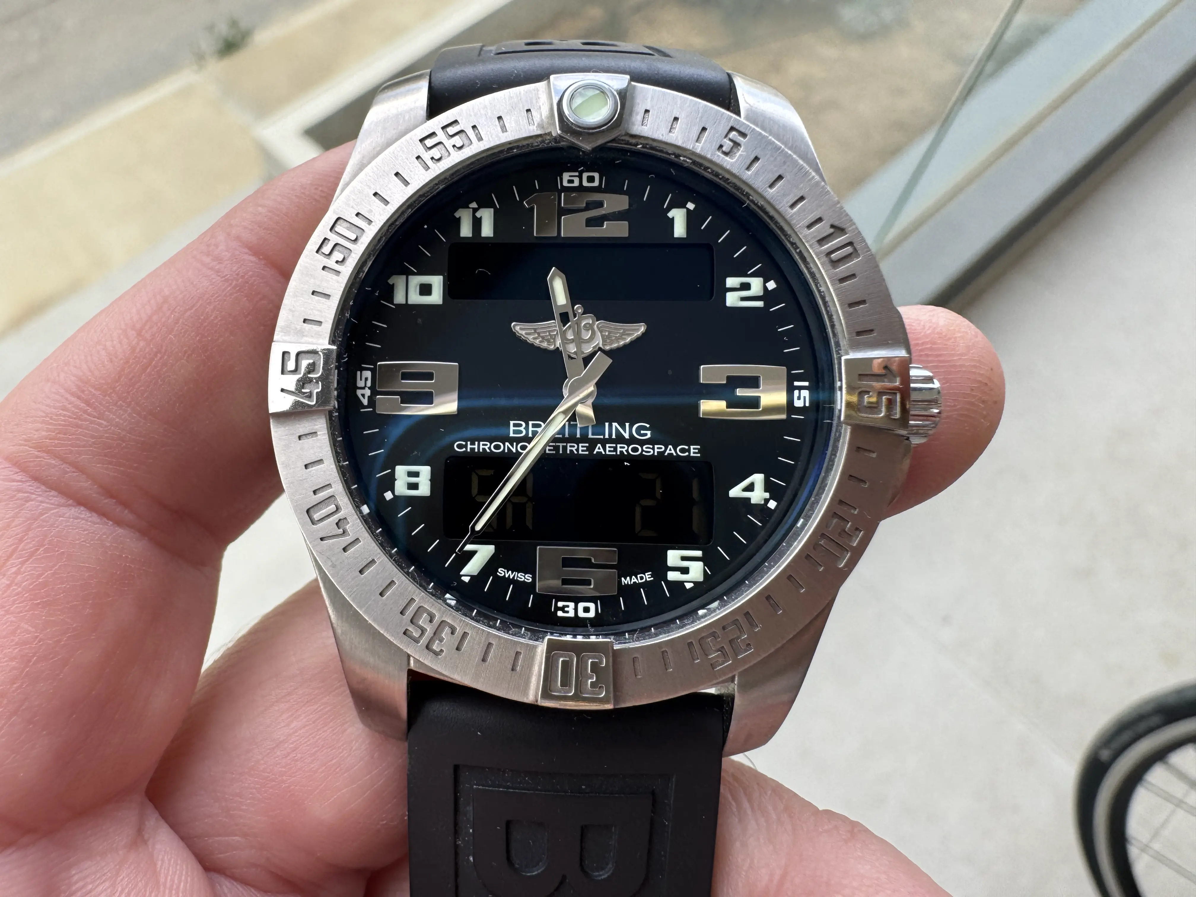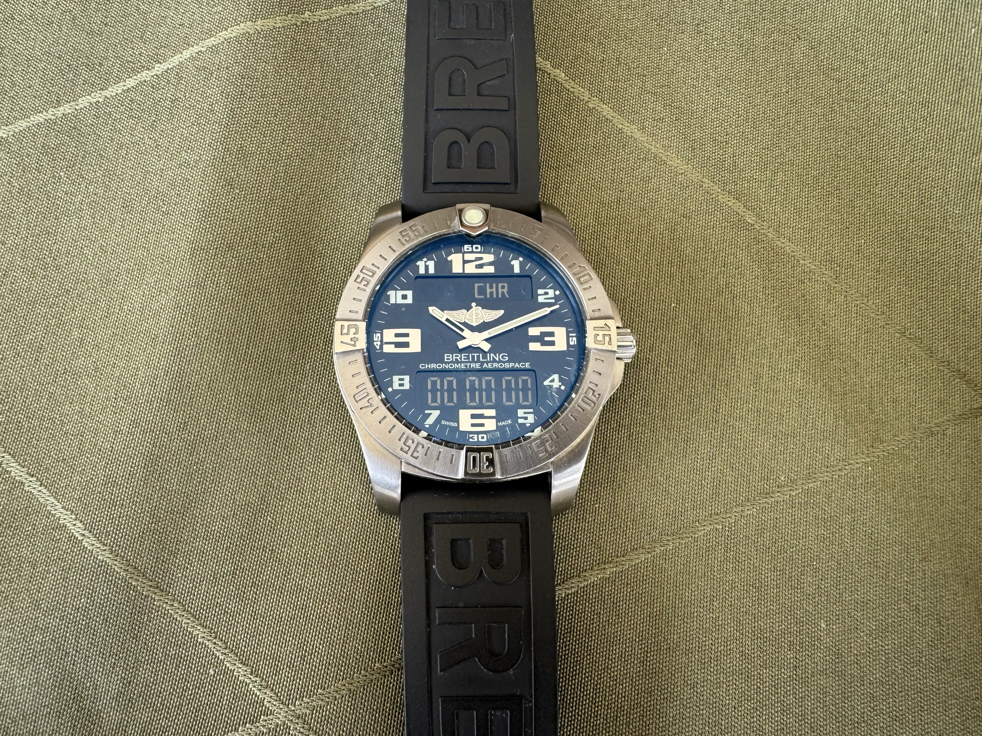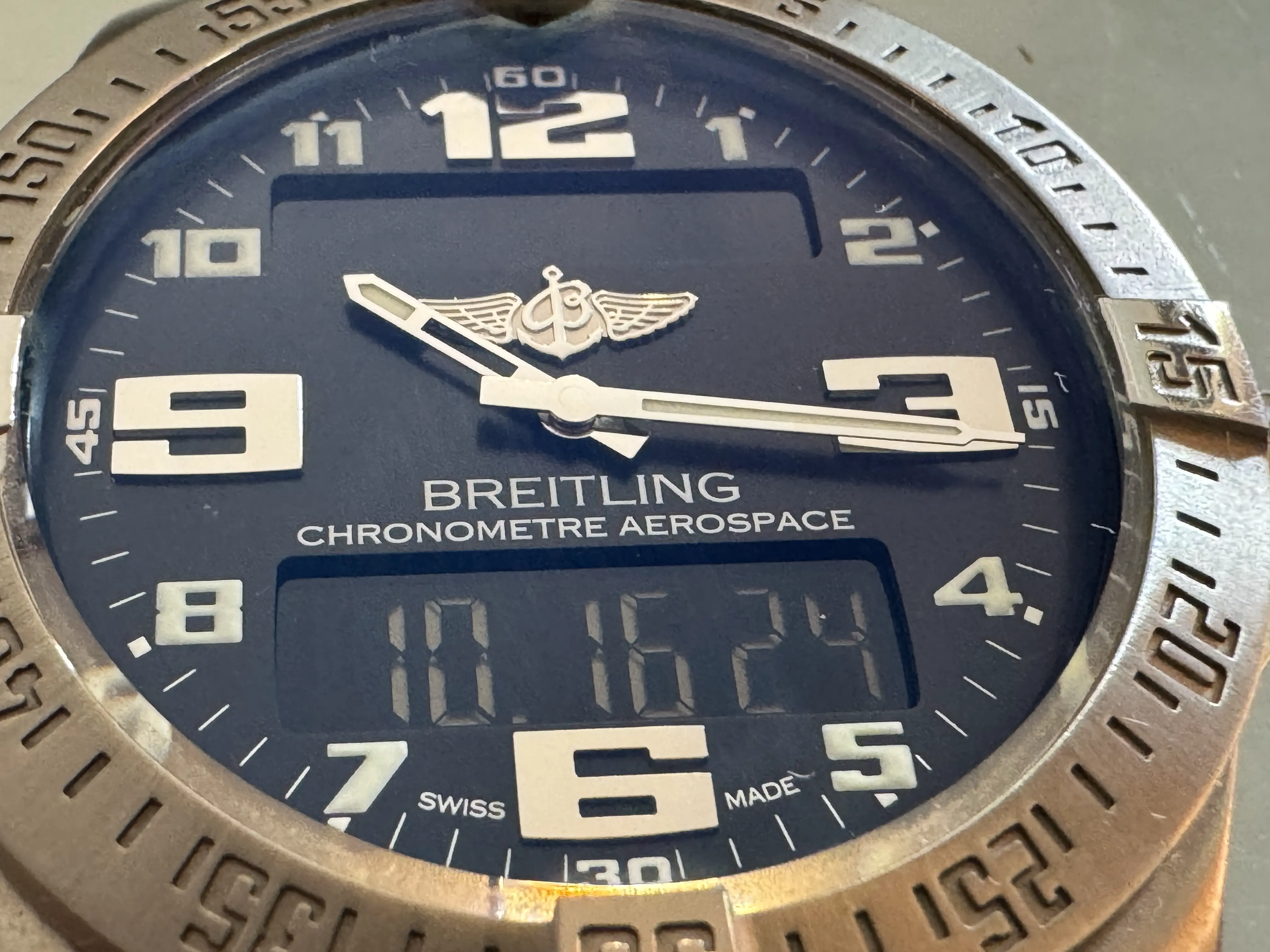 ·Up for sale is a stunning Breitling Aerospace EVO (Ref. E79363), the most modern and refined iteration of the legendary Aerospace line. Crafted from Grade 5 Titanium, this timepiece is incredibly lightweight, durable, and comfortable for daily wear.