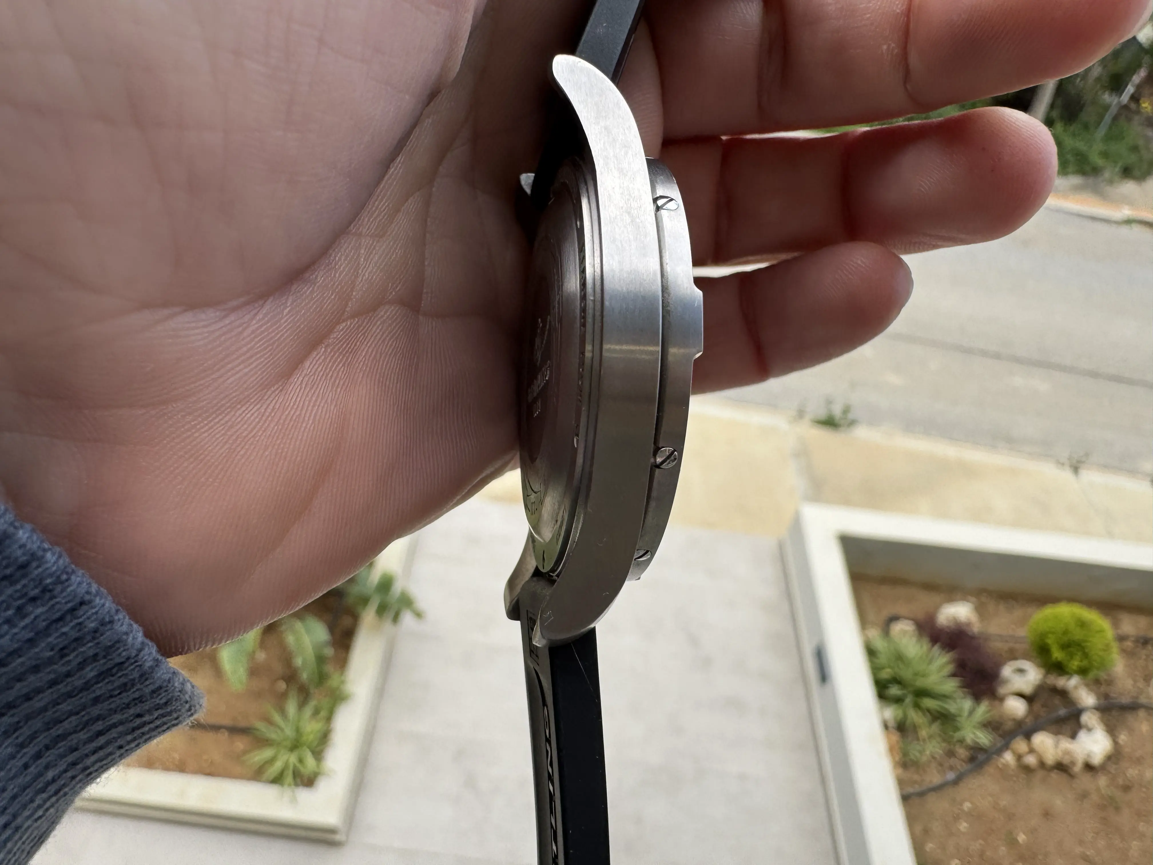 The watch is in very good condition with only minor signs of wear typical of titanium. The sapphire crystal is flawless, and the anti-reflective coating is intact. All functions, including the crown-operated menu and the audible signals, work perfectly.