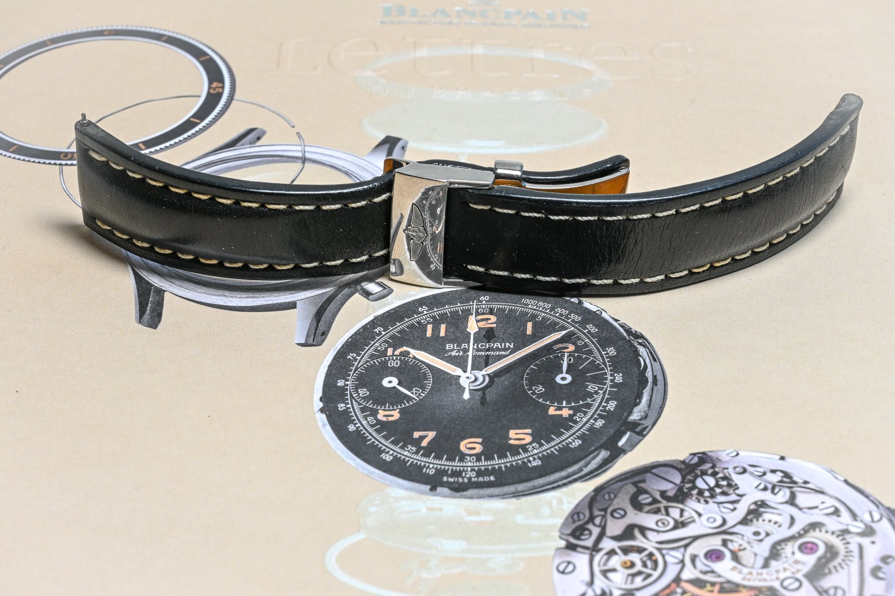 ·For Sale is this Breitling Black Leather Strap with Breitling Deployant Clasp for a 22mm lug width that tapers to 20mm at the clasp