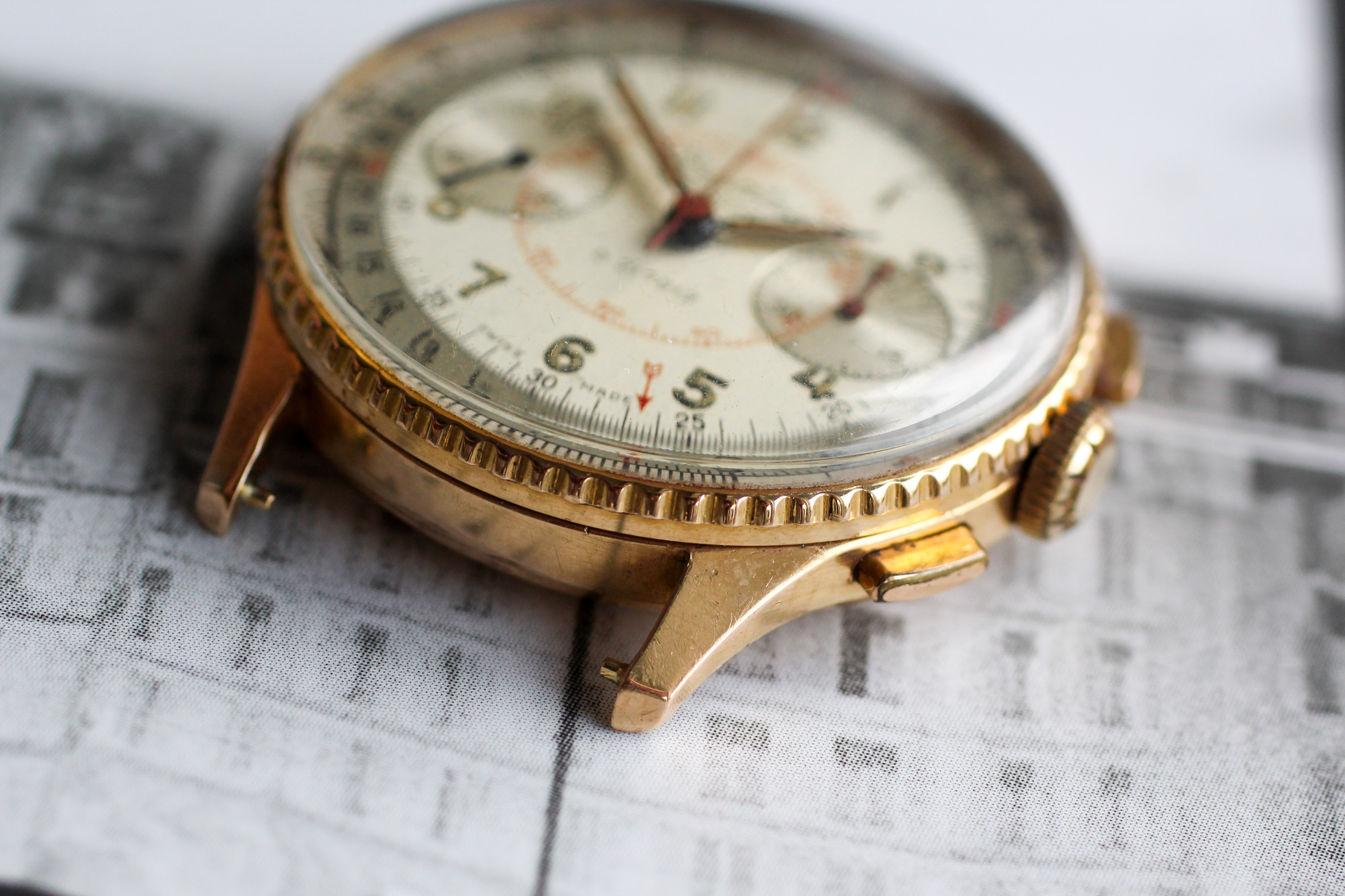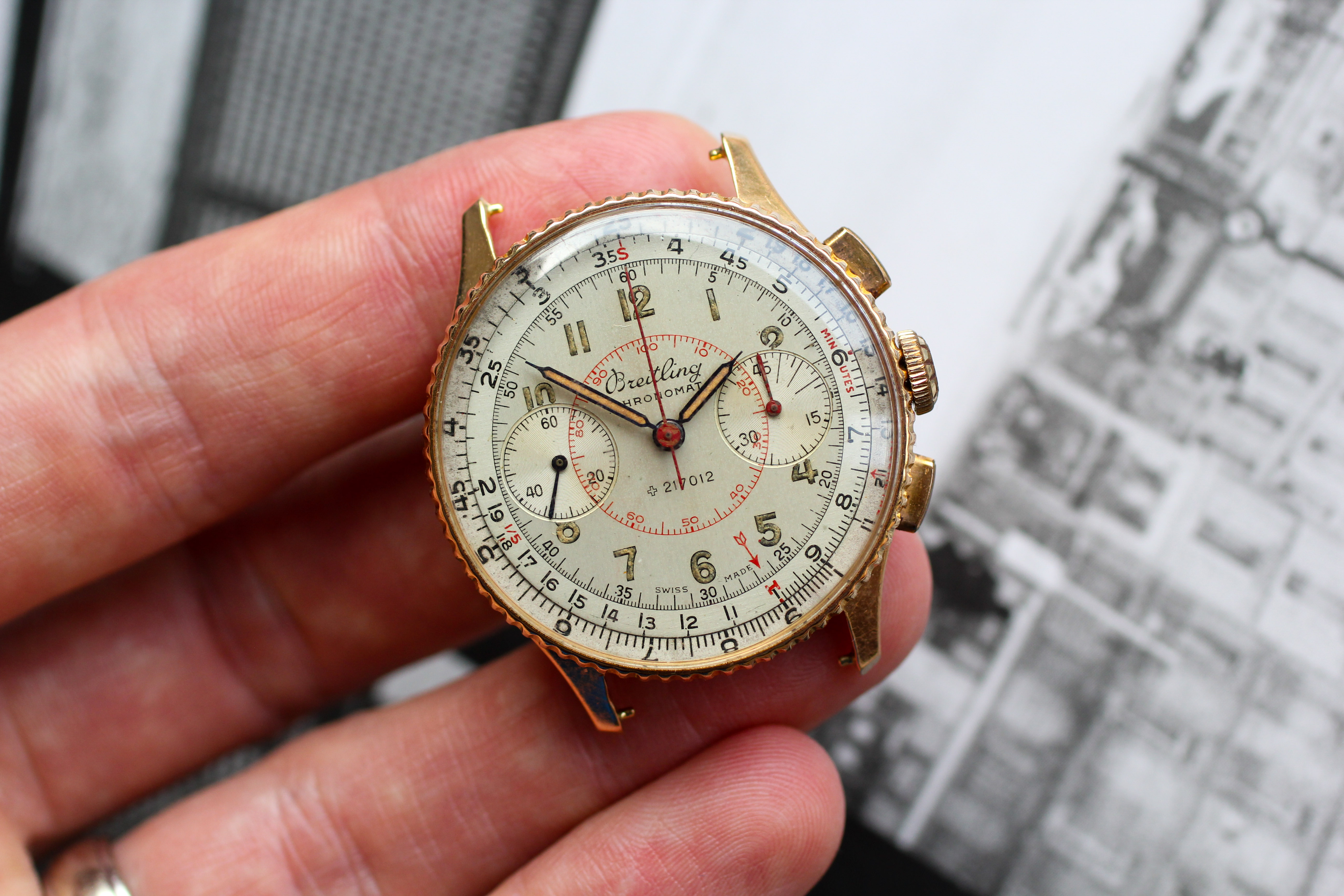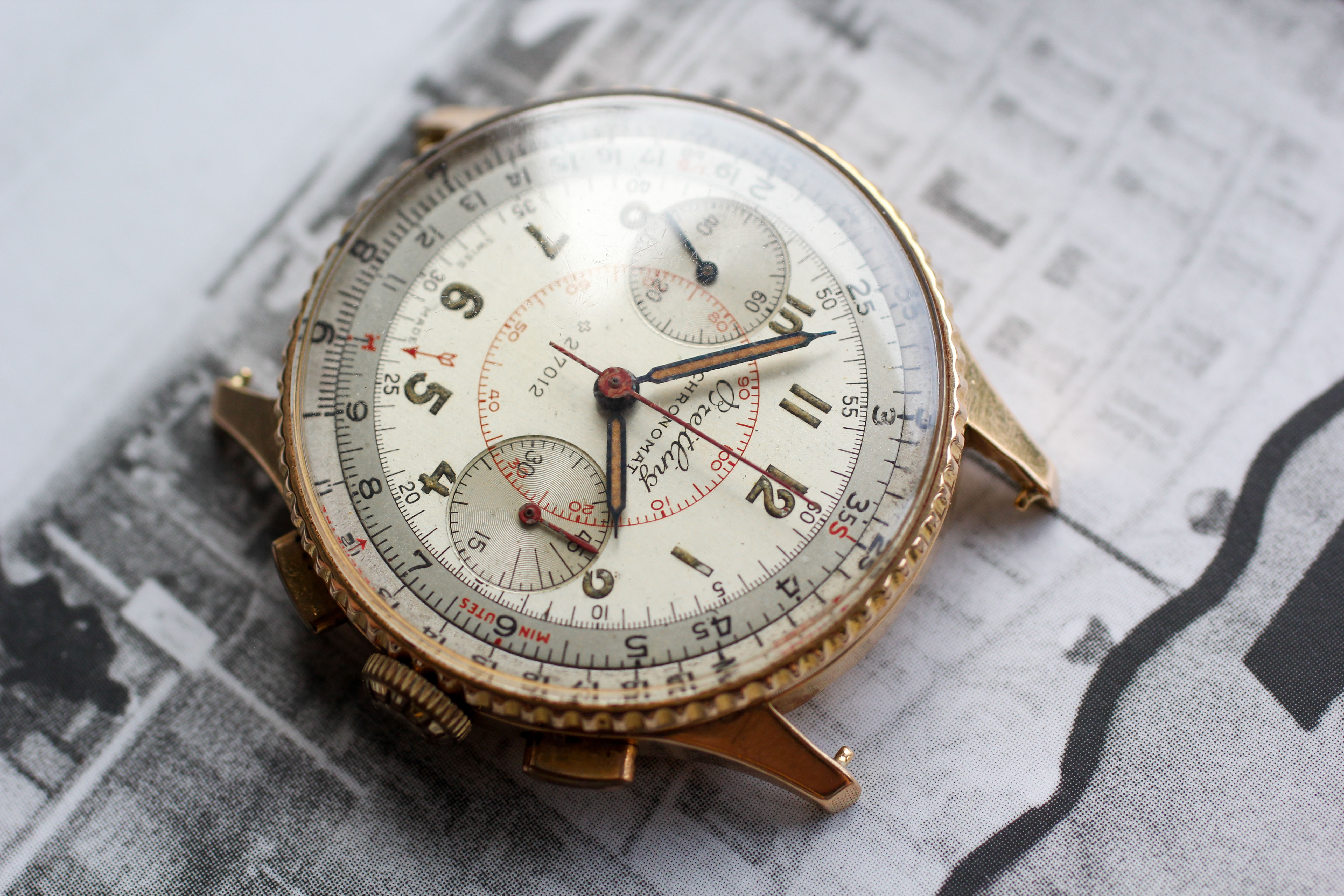 ·The Marie Kondo clean-out continues. This watch gives me immense joy to look at, but I bought it from the original owner and had goals of servicing / wearing it often, haven't ultimately fulfilled them. Time to move it on to someone who will do so. I am far from a Breitling expert, but as I understand it from the owner and subsequent research, this example is all original and unmolested. I casually track the general market for 769's and have seen few that are as well preserved as this example (at this price). On to the description: