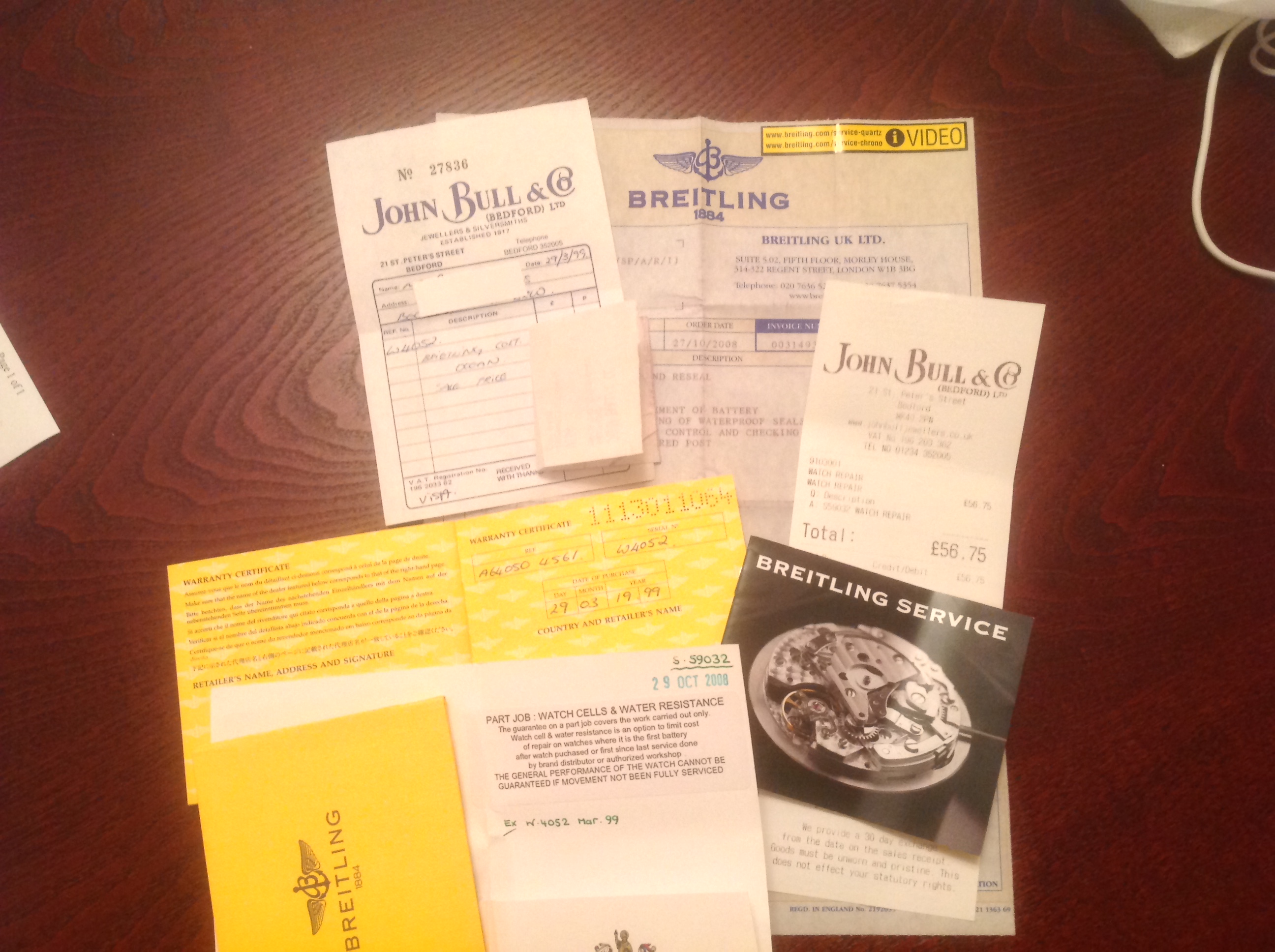 Includes original purchase receipt, all original documentation and various receipts for batteries and water seals.