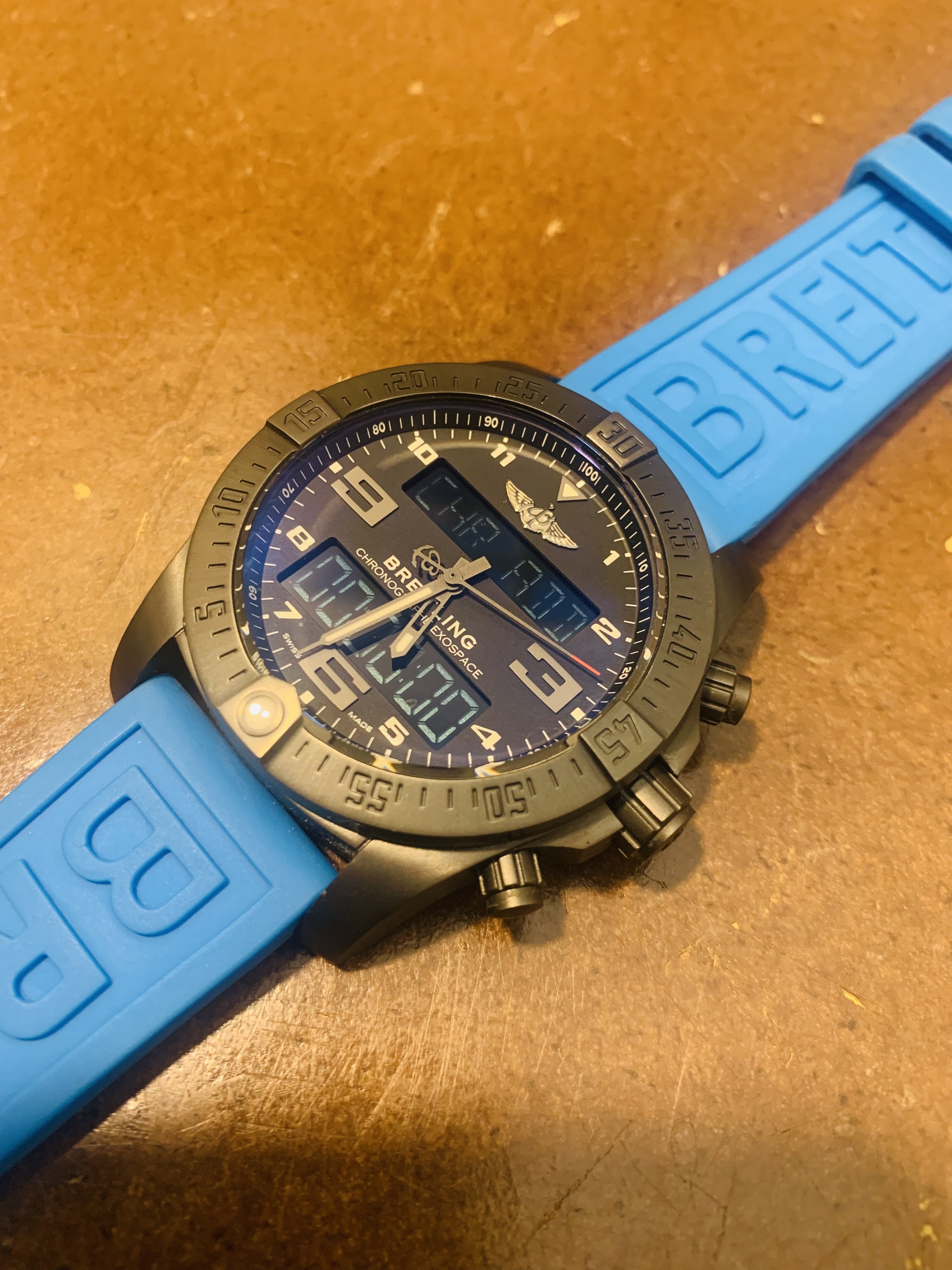 ·For sale is my Breitling Exospace B55 Connected Black. This is an awesome tool watch that looks great on a wide variety of straps and bracelets. It’s very wearable and comfortable due to its all titanium construction, and is a great fit on my 6.8” wrist. It’s the perfect grab and go for work or for the weekend.