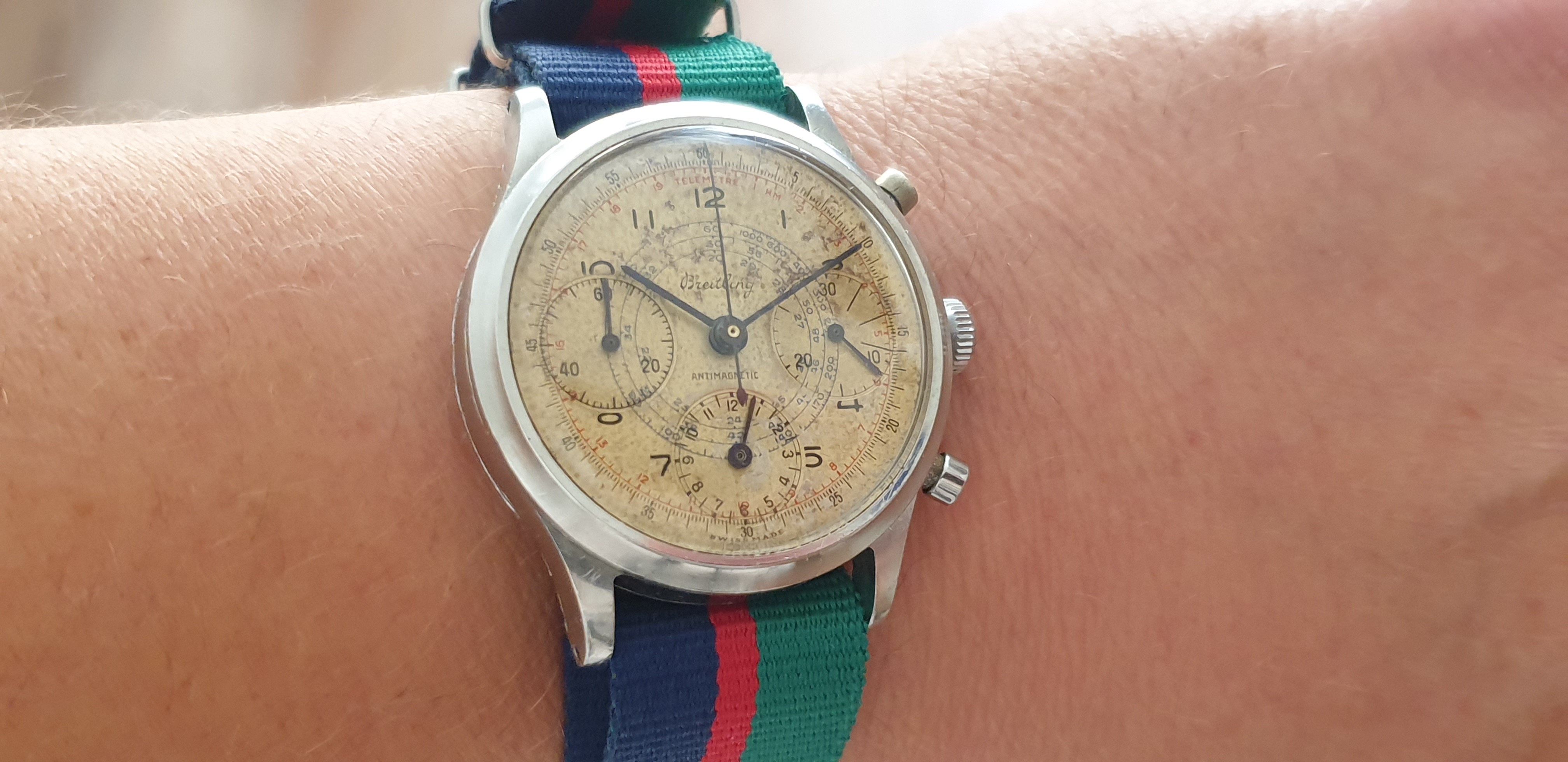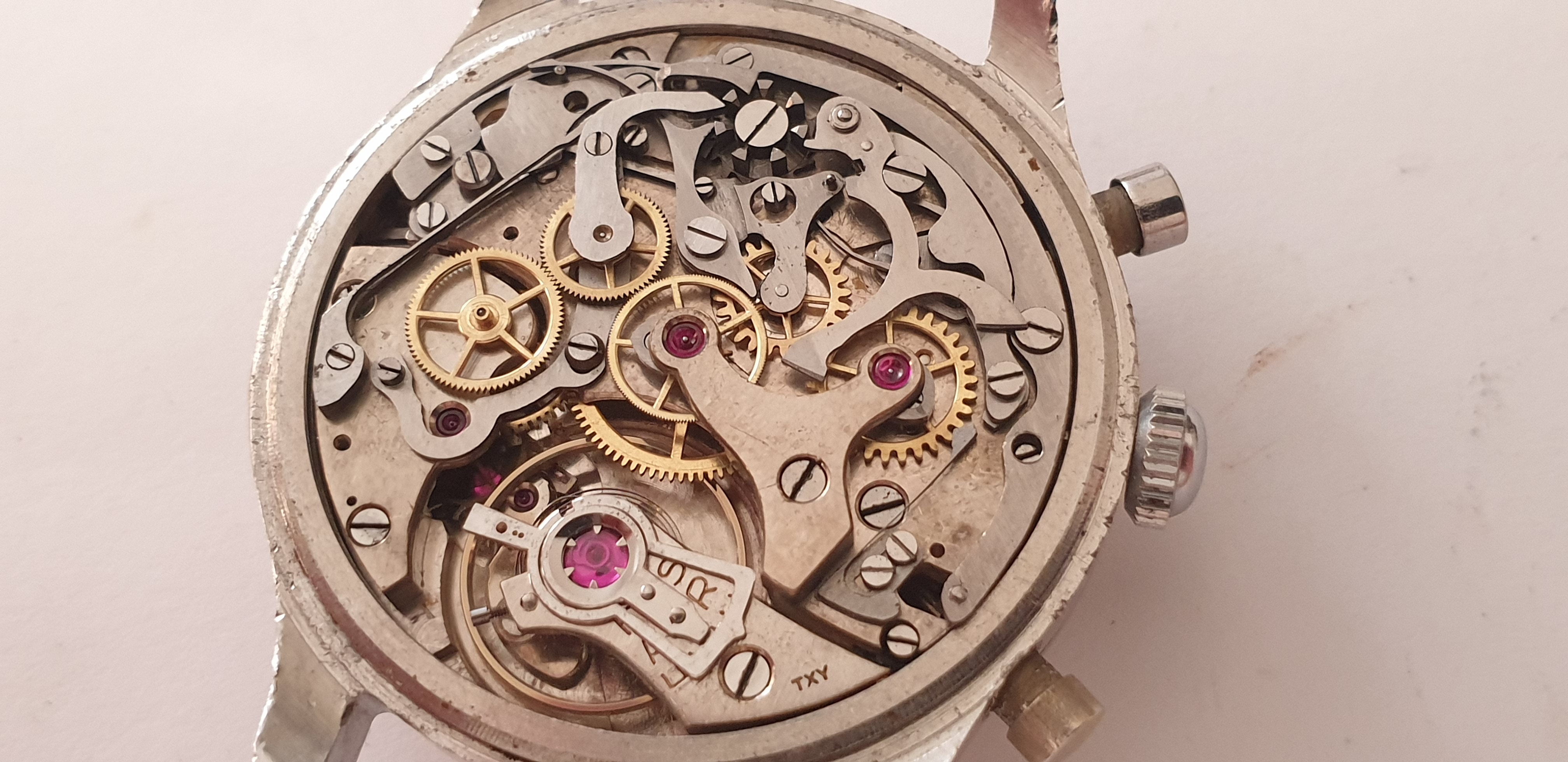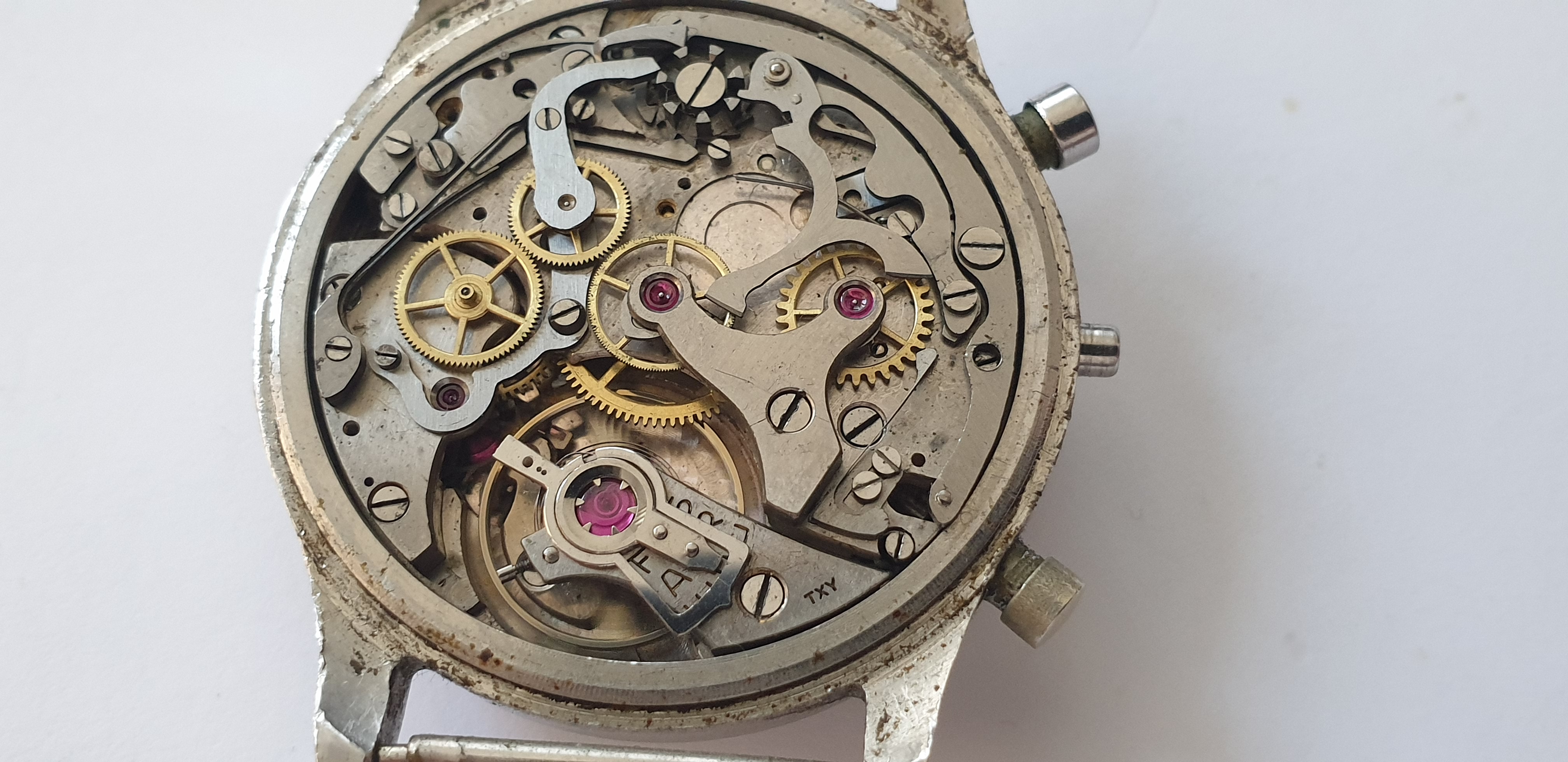 ·Hi OF! I recently picked up this Breitling with a Landeron 42 movement. It came to me without a rementoire and crown. Two brakes/lever were also missing, but luckily for me in Bulgaria, where I am from, there is a craftsman who made them and now the watch is fully functional! According to my research it was made in the late 30's or early 40's. The glass is plexiglass and I believe it is the original, it is glued and the watchmaker just polished it. A very interesting thing I noticed is the original seal on the back cover, and the watchmaker told me that there is the same under the bezel. I also want to ask what is marked on the balance bridge - TXY?