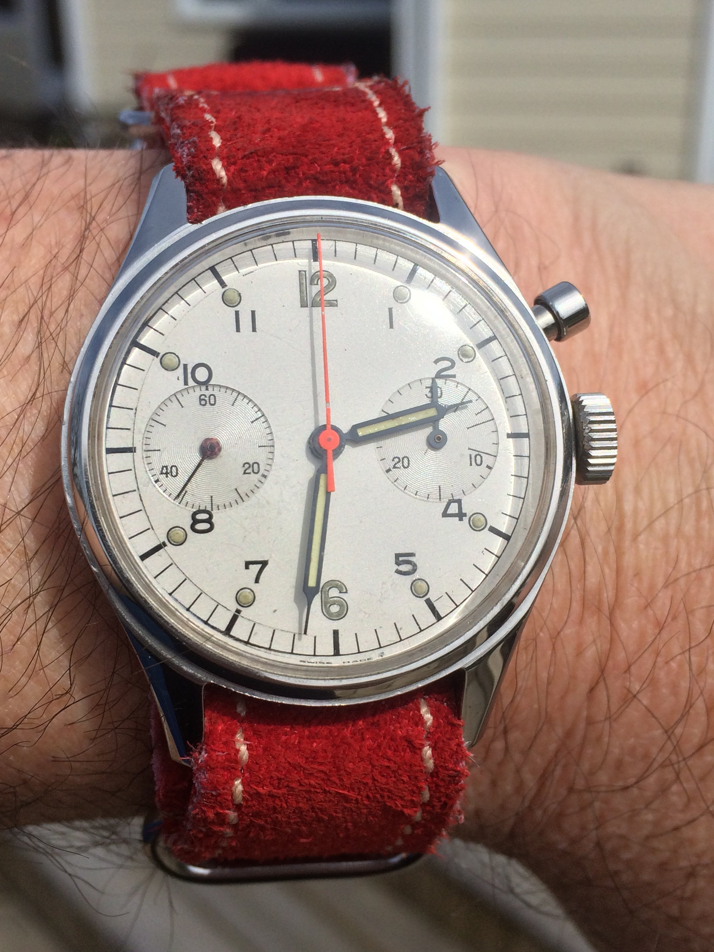 This watch is becoming increasing difficult to find. These unsigned military mono pushers are really starting to appreciate in value.