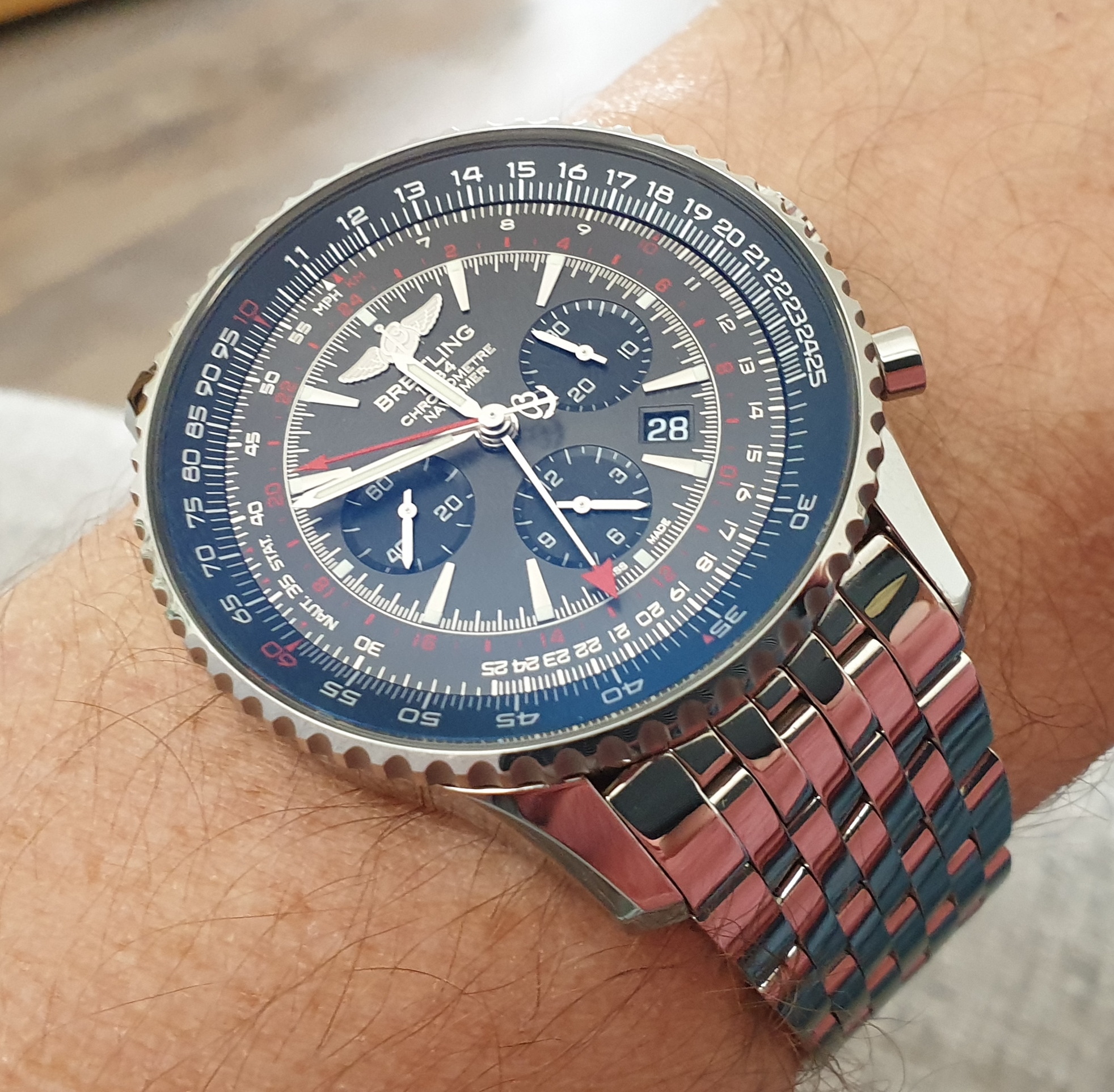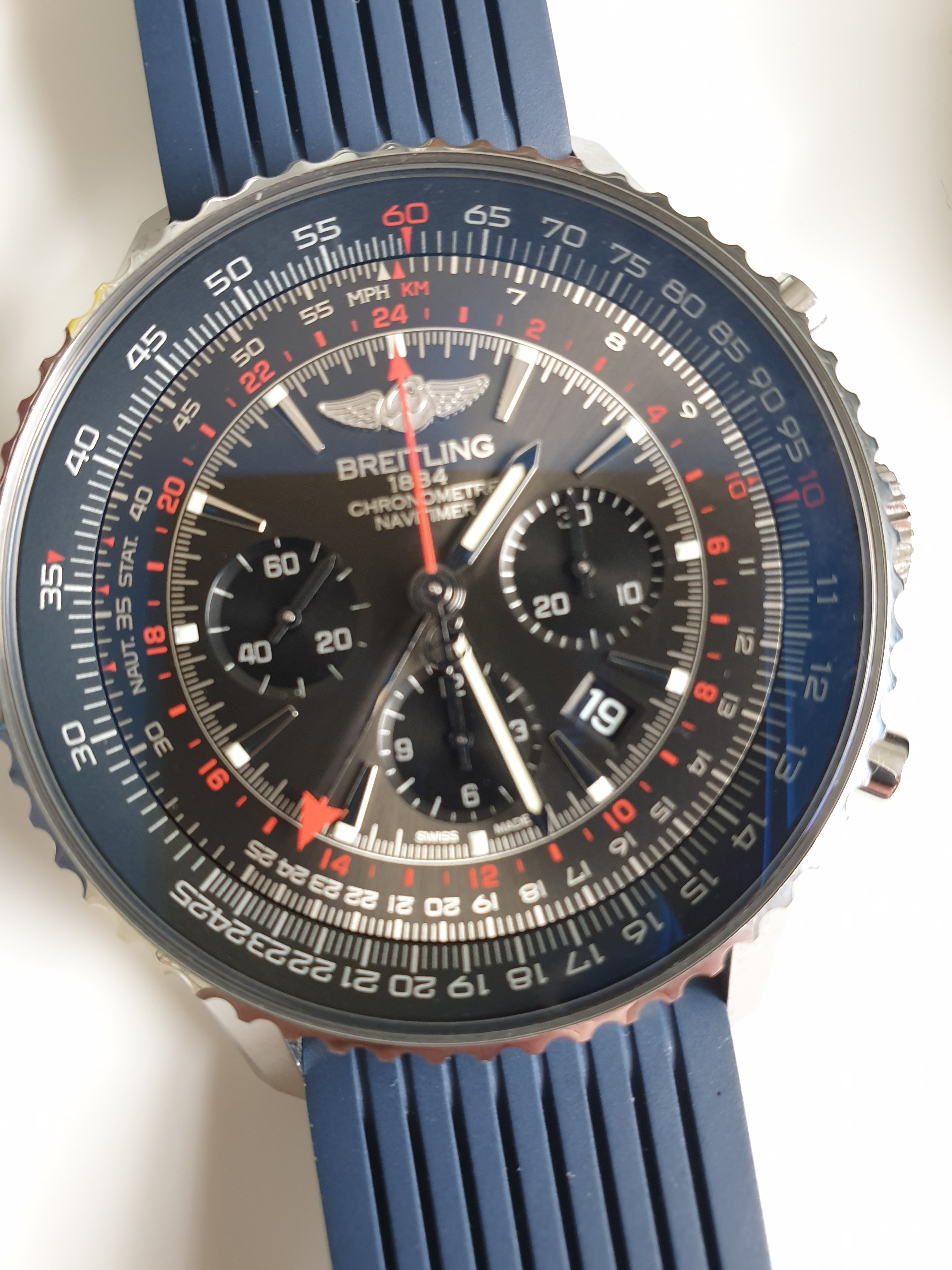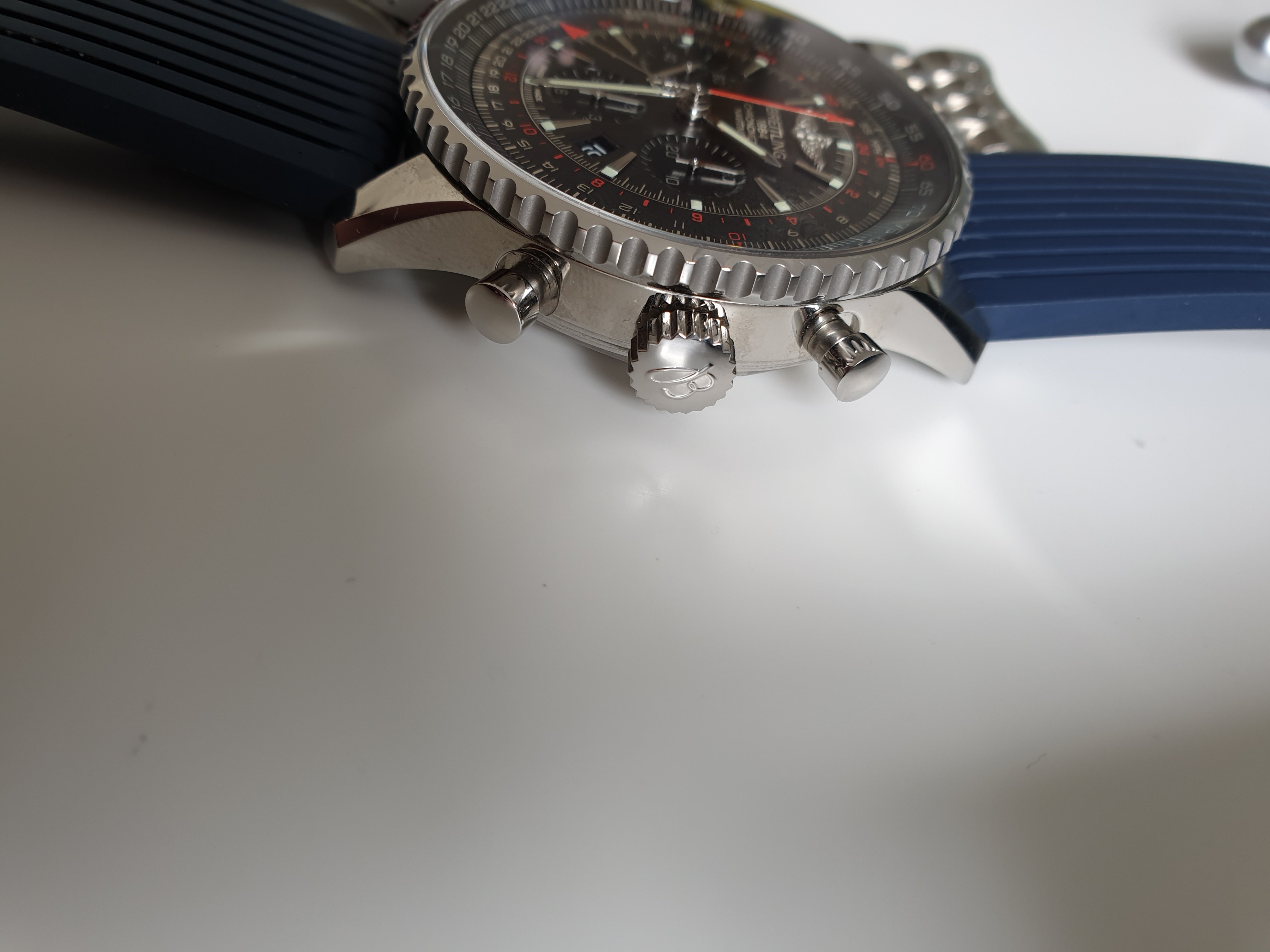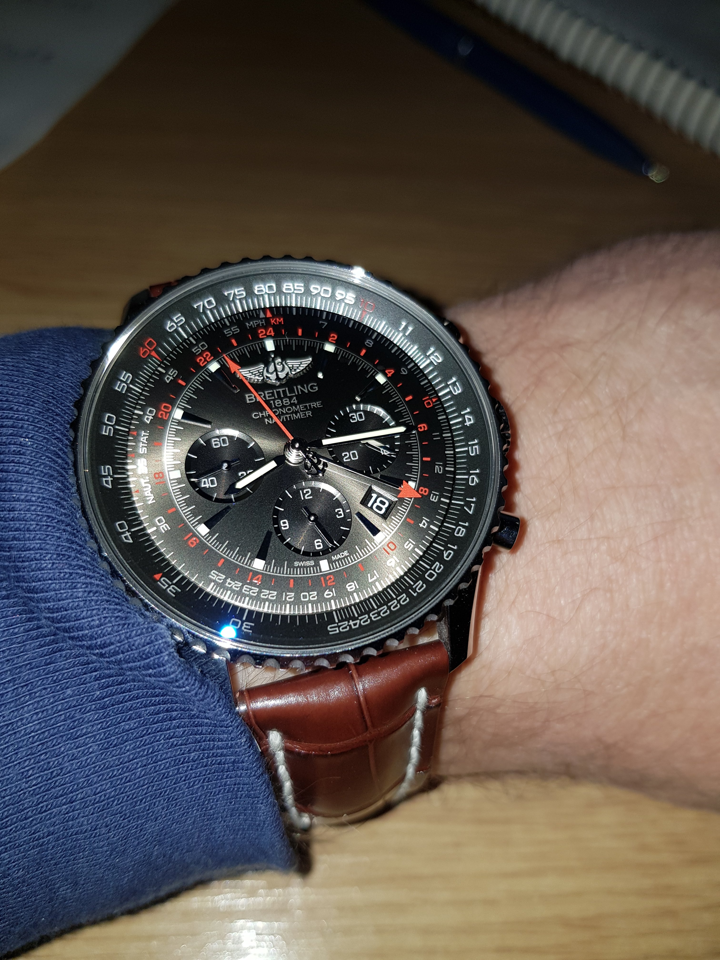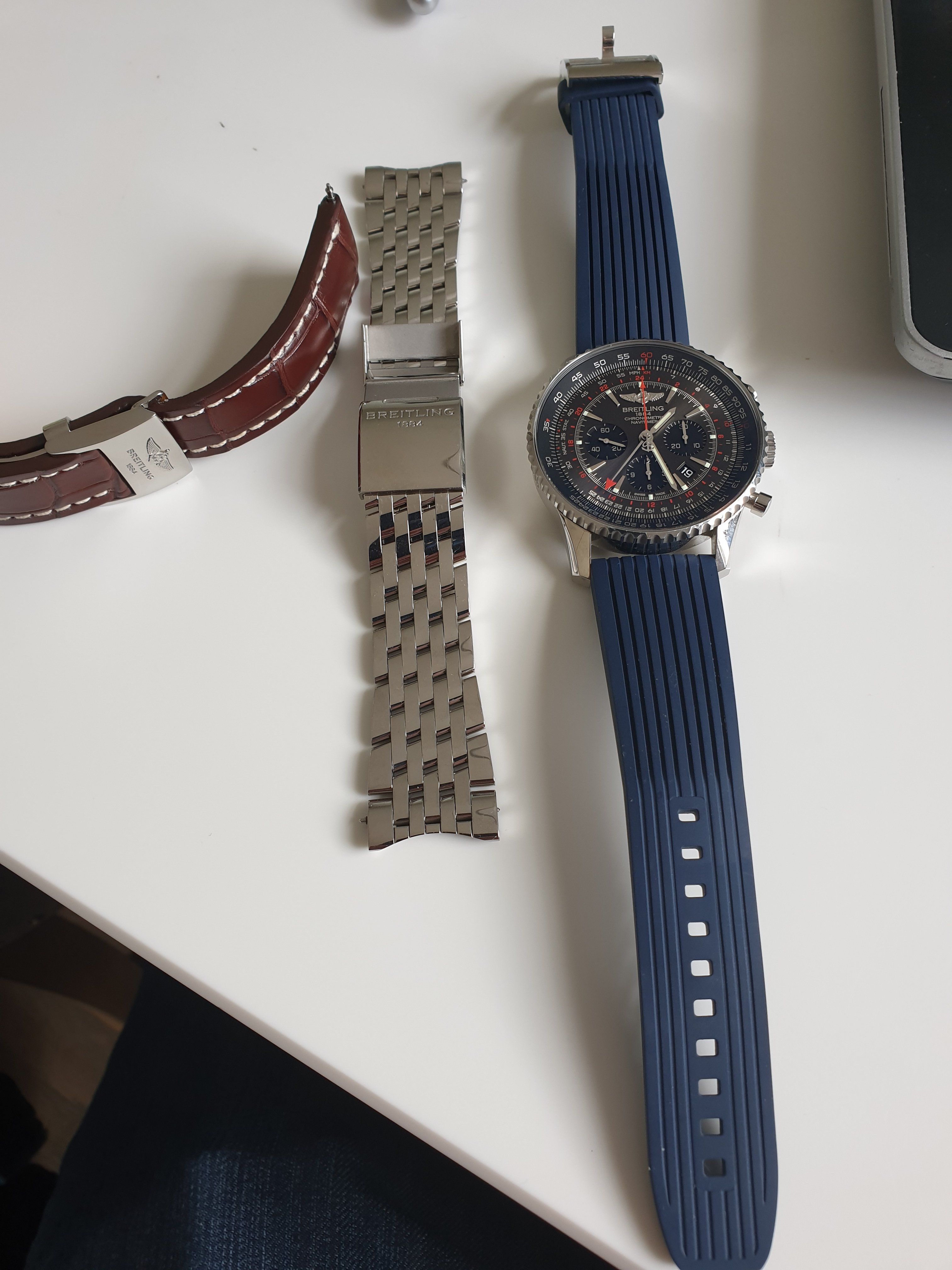 Limited edition (1000 of) bought from breitling boutique in July 18 on bracelet and brown croc strap with deployment clasp. Comes with additional blue ribbed rubber breitling strap. Full set with box and papers. Breitling warranty.