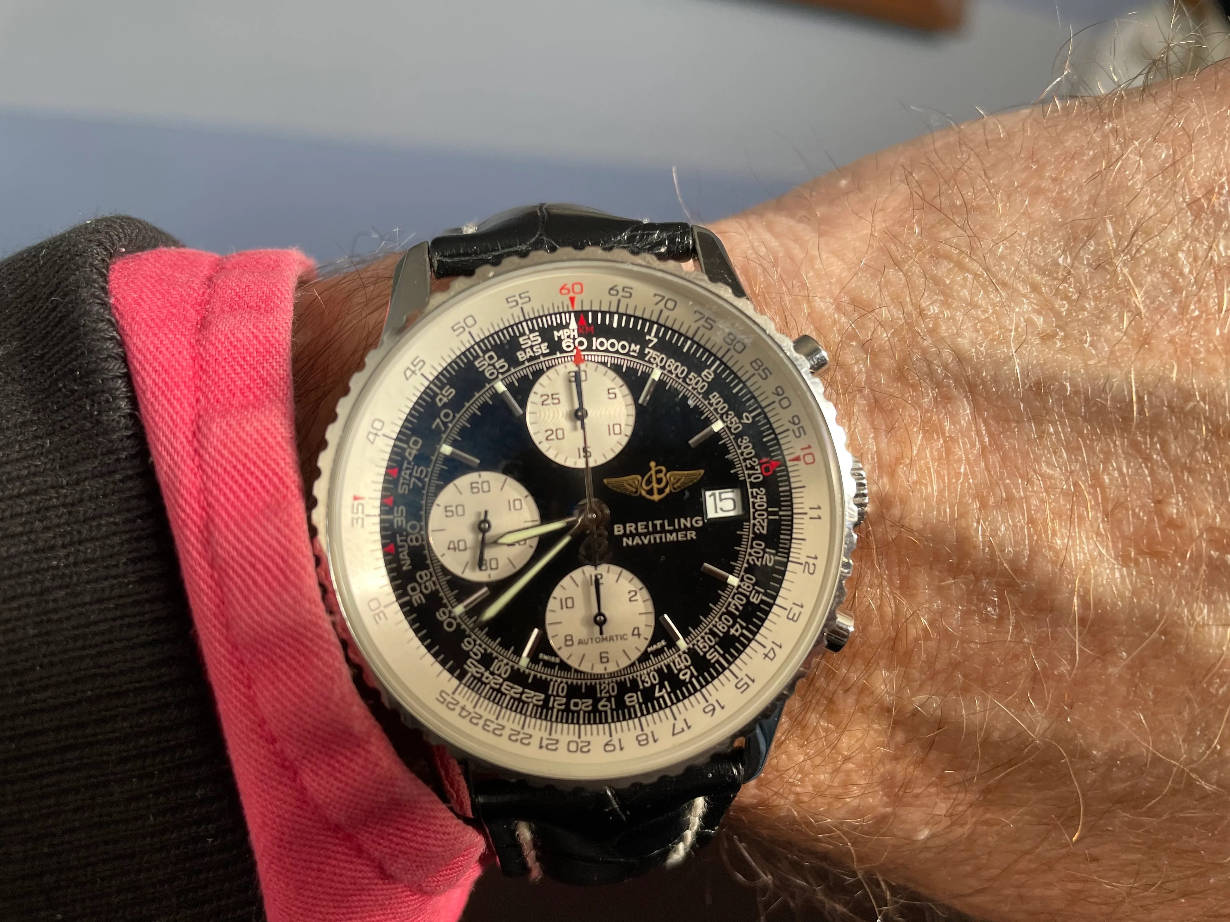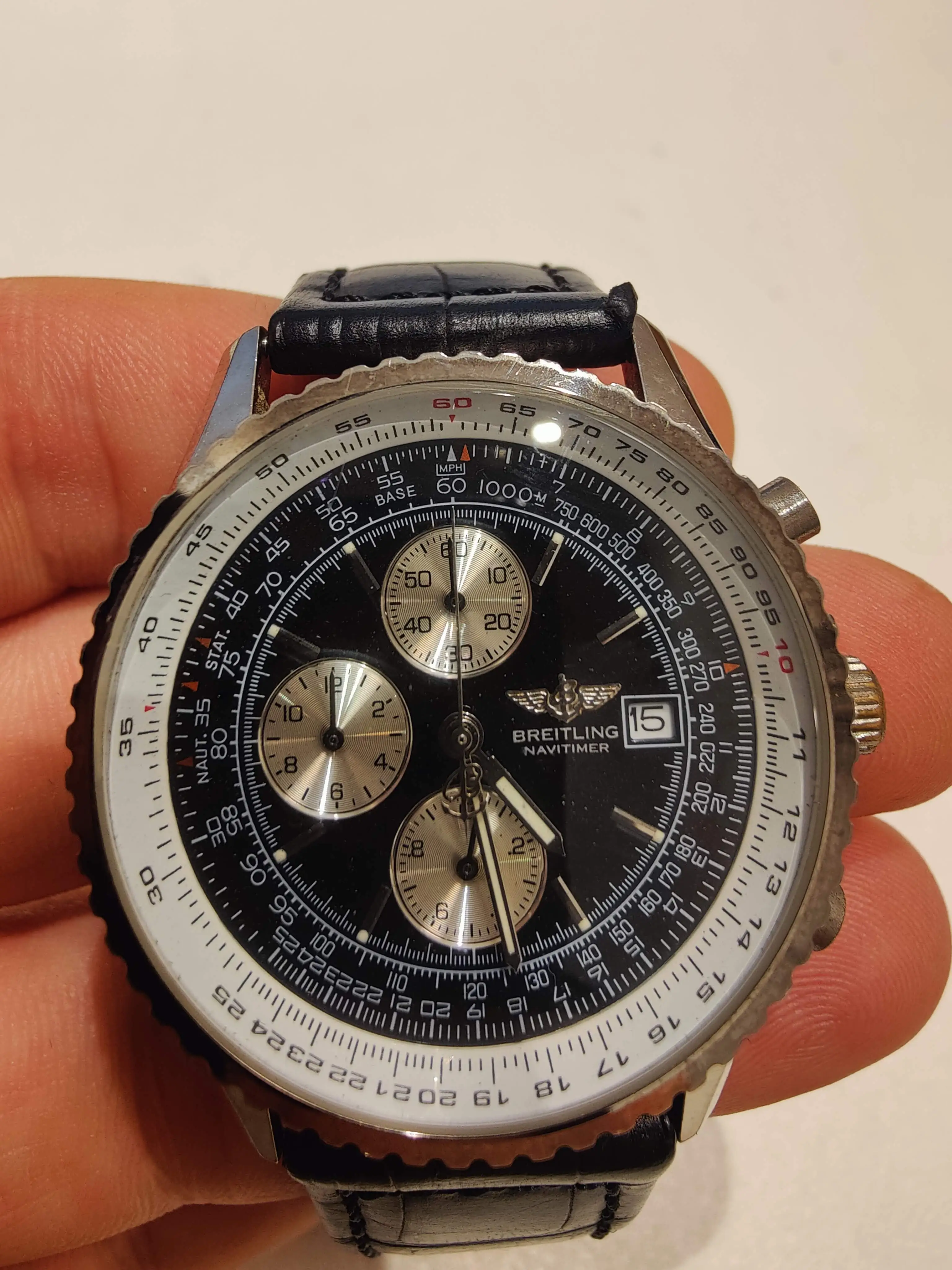 i am a complete Newbie to these wonderful timepieces, but recently i have received 2 old watches from my late Grandfather's estate, one of them seems to be a Breitling Navitimer, but not knowing much about these watches i can't tell if it's a genuine piece or a replica. It looks very nice and has definitely been worn for many years, but other than that i don't know much about it.