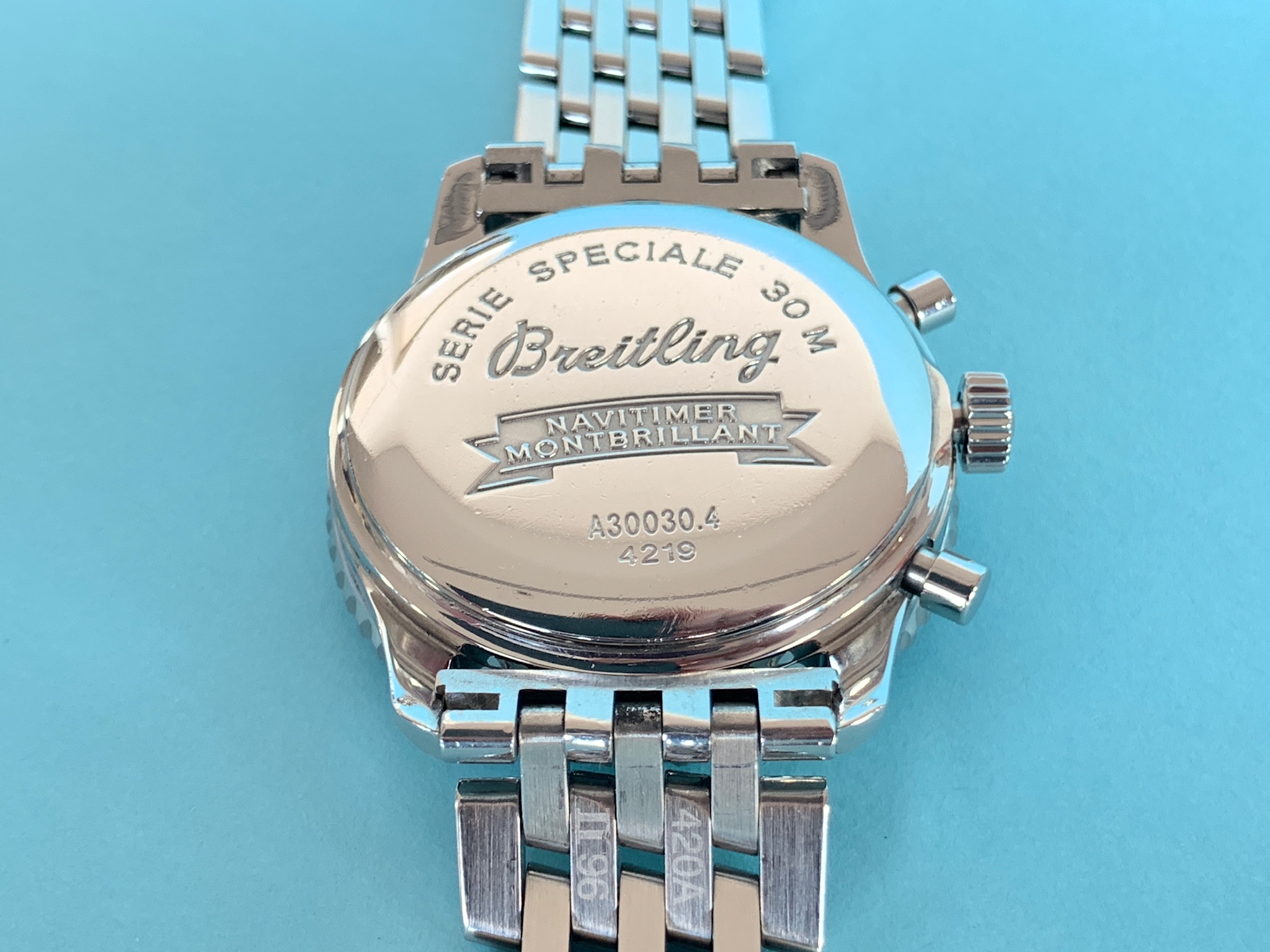 ·On offer is a 1998 Breitling Navitimer Reference A30030.4 "Montbrillant" automatic no-date. Due to it's svelte dimensions, I call this the Navitimer-mini. If you have ever coveted a Navitimer but were put off by the size, this might be the one for you.