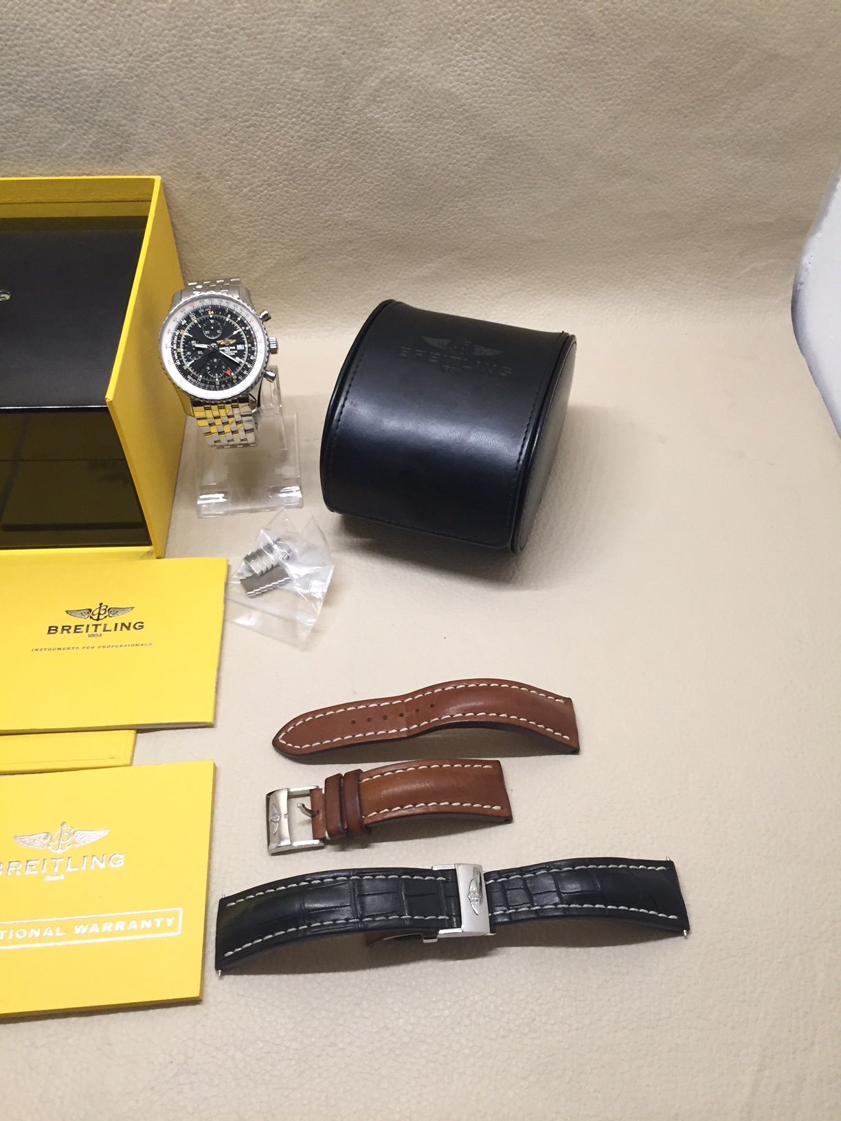 Notes- The watch comes with the bracelet which is like new, Black Alligator and deployment buckle and brown leather and tang.