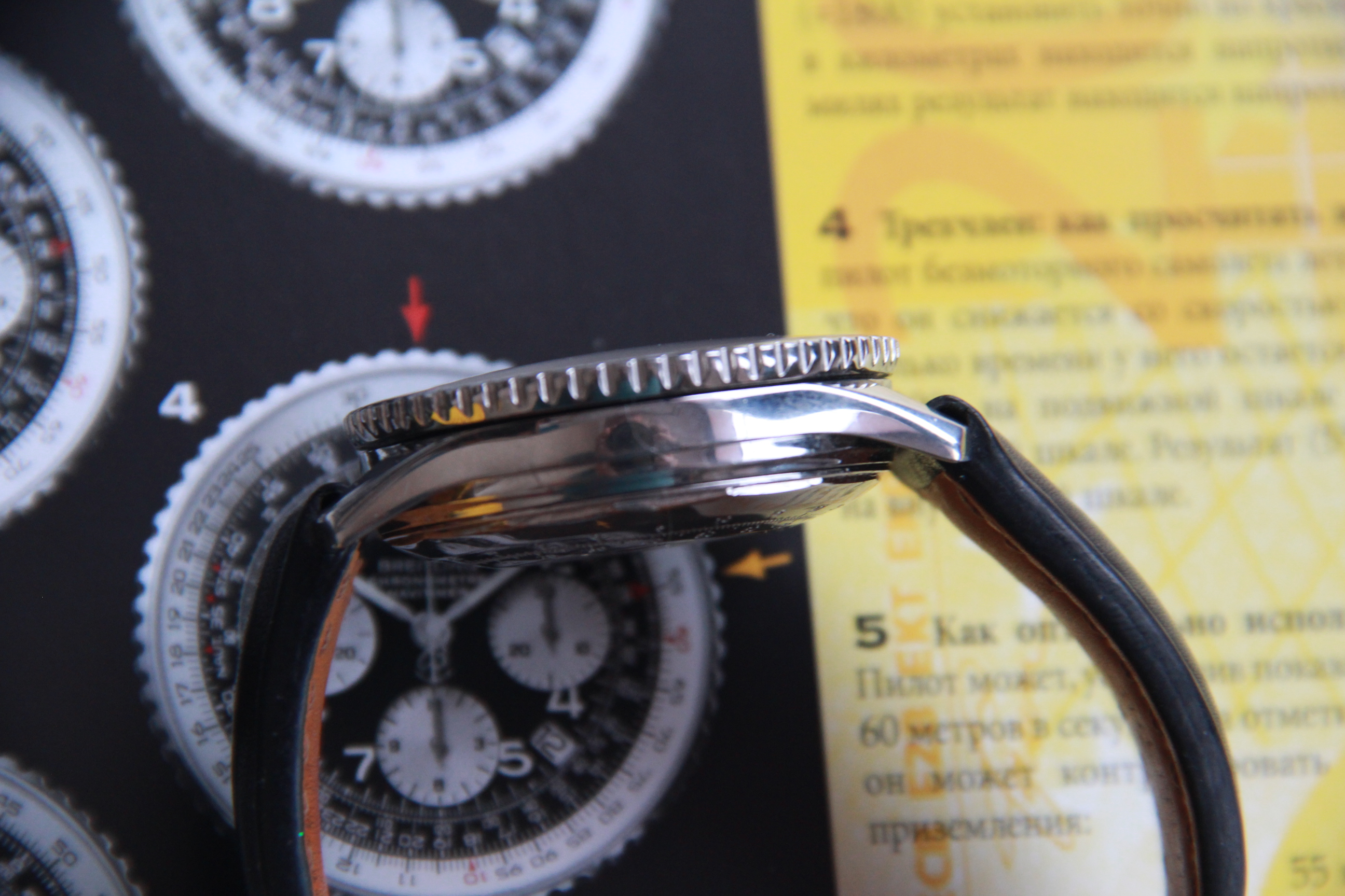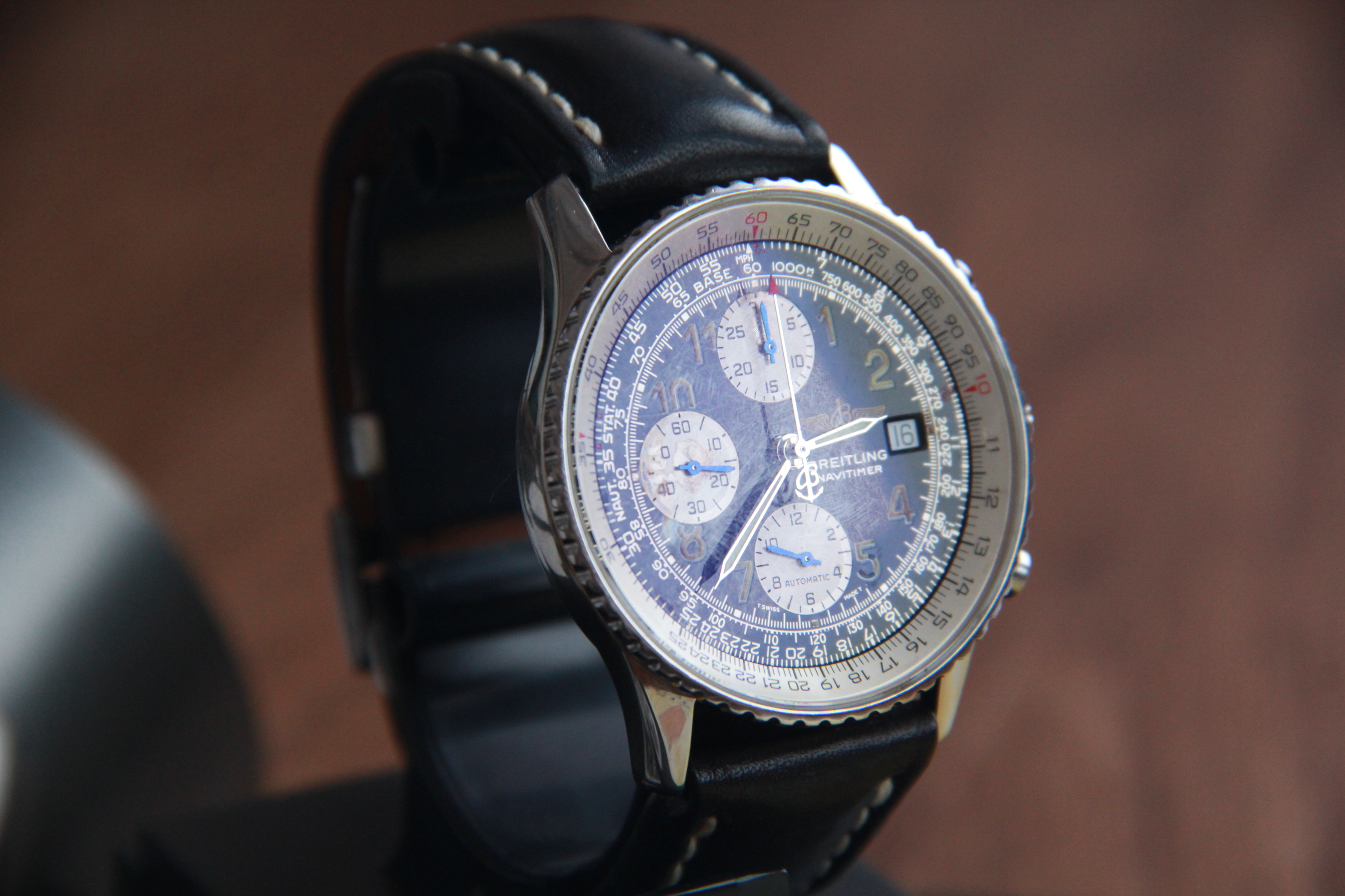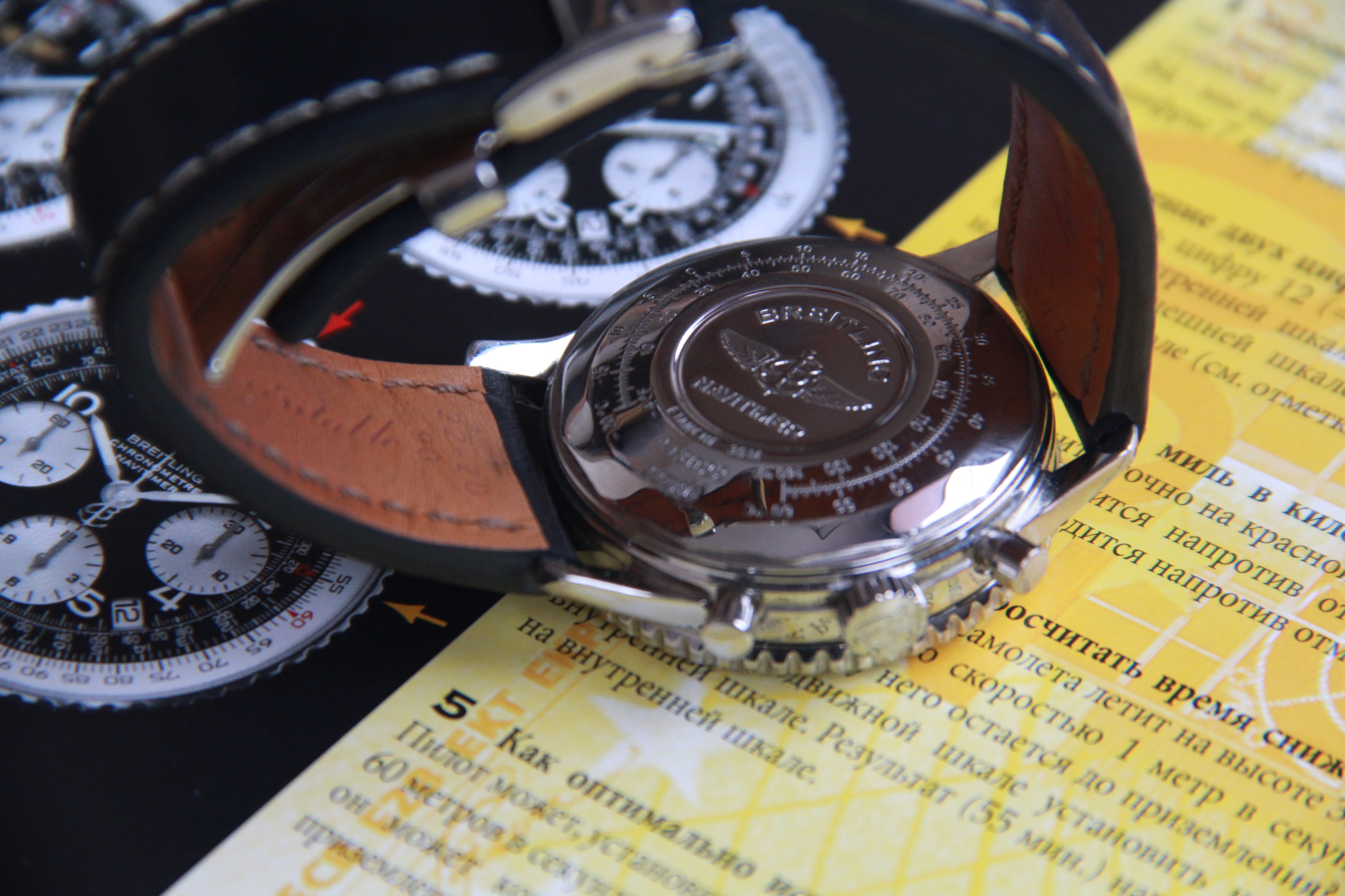 ·For sale Breitling OLD navitimer A 13022. The watch is in normal condition. Dial has traces of time and loss of coverage on the drive around 9 and 12 o'clock. Also, the lum on the number "5" is partially lost. the bezel rotates with tension. The watch keeps a great time . There are no boxes and documents. The original belt is in normal condition. The hand of the chronograph Drive, which is located around 6 o'clock, constantly counts down the time. I put a low price taking into account the above comments.