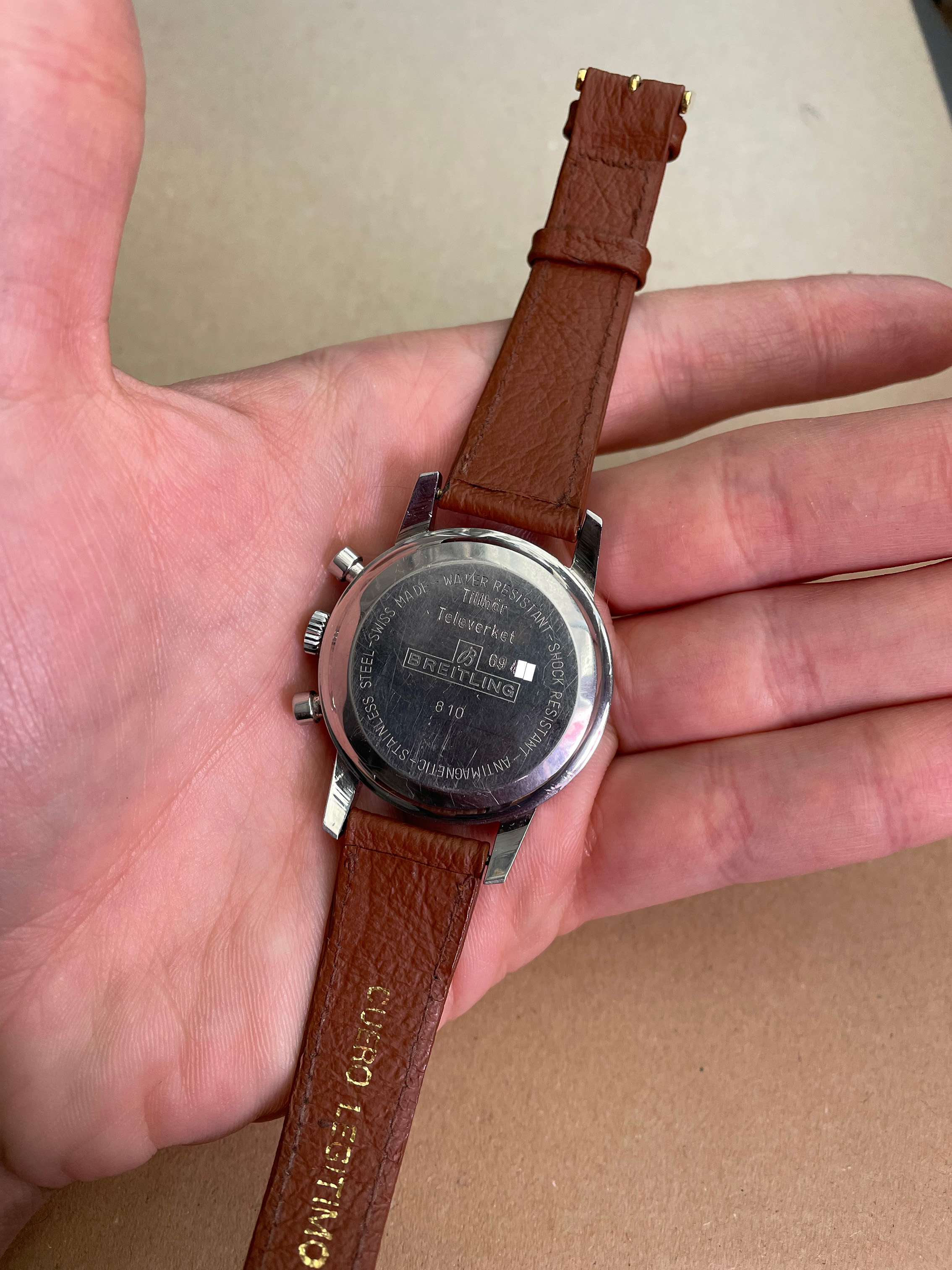 ·Up for sale is a nice and cool vintage Breitling sold under "Kronometer Stockholm" brand. This example was sold to the government run telephone company Televerket. Which can be seen on the case back.