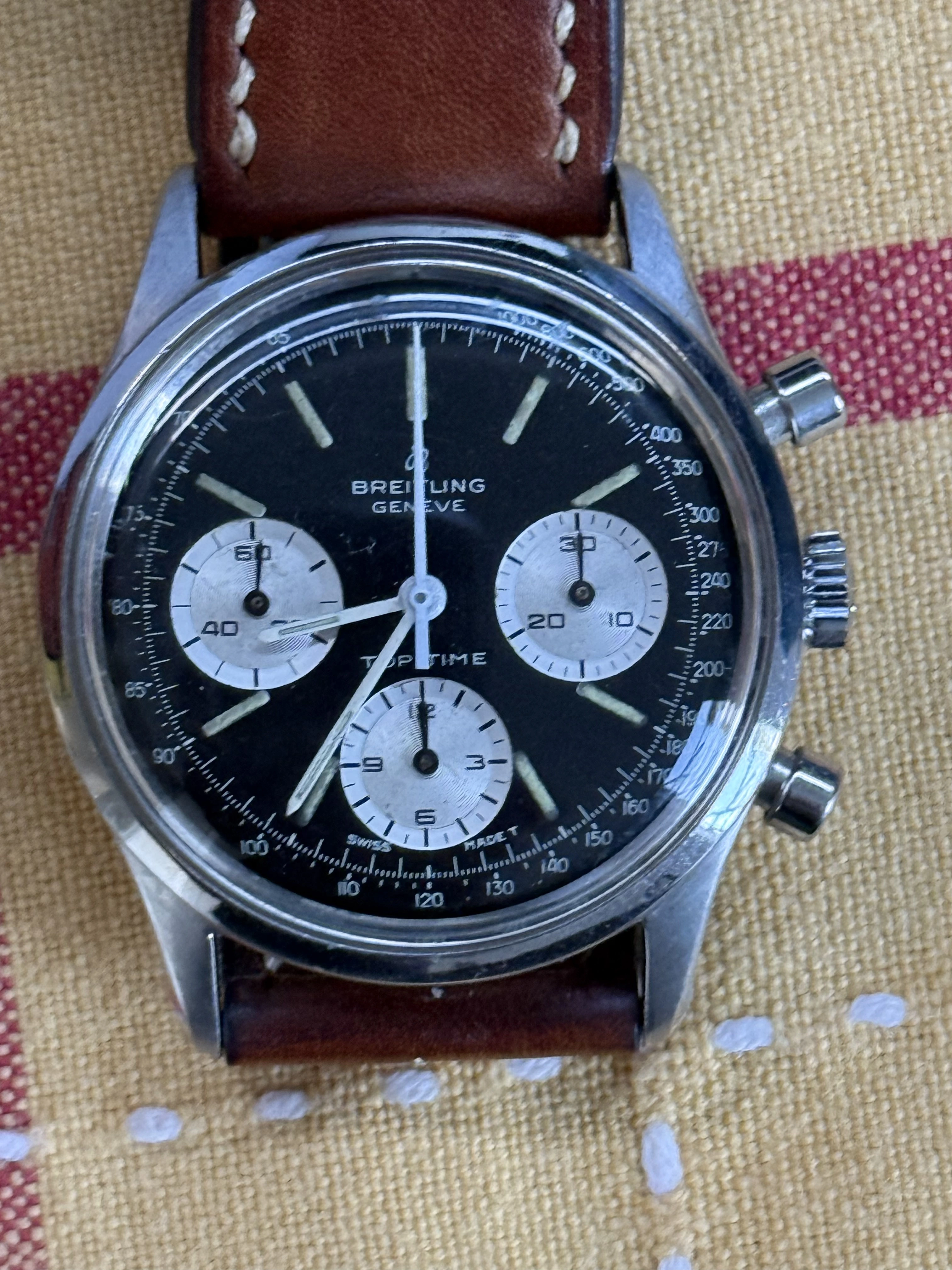 ·1964 Breitling Top Time 810 Mark 1. Venus 178 movement. Fully serviced and refurbished in 2024. Hopefully the last watch that has to be sacrificed for car funds. Priced to sell but open to sensible offers.