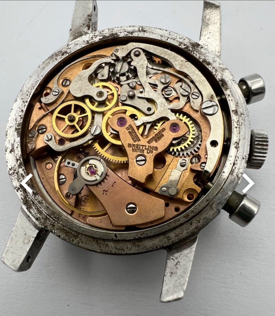 The Venus 178 movement runs and keeps the time well. The time keeping functionality works well and resets perfectly. Service history unknown.