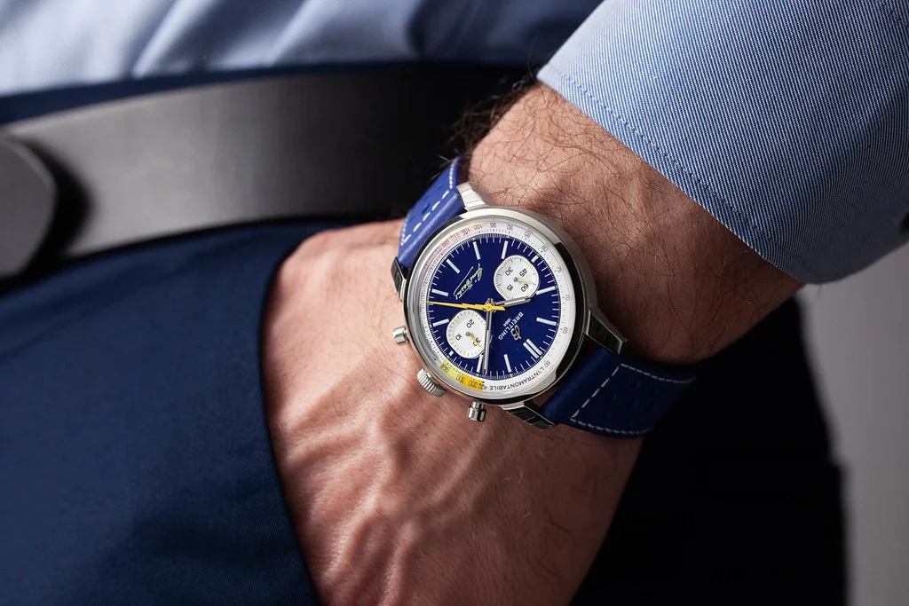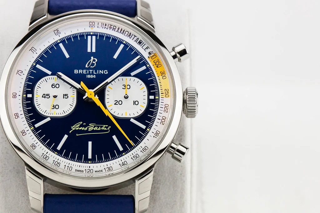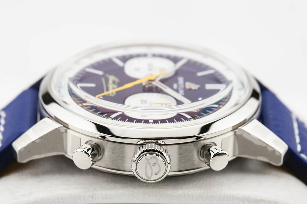·Up for sale is an unworn condition Breitling Top Time B01 Gino Bartali 41mm Blue Dial on Leather Strap, reference # AB01767A1C1X1. It comes complete with all boxes, papers, booklet, hang tag and Breitling Warranty Card dated May 2025. One of 750 pieces.