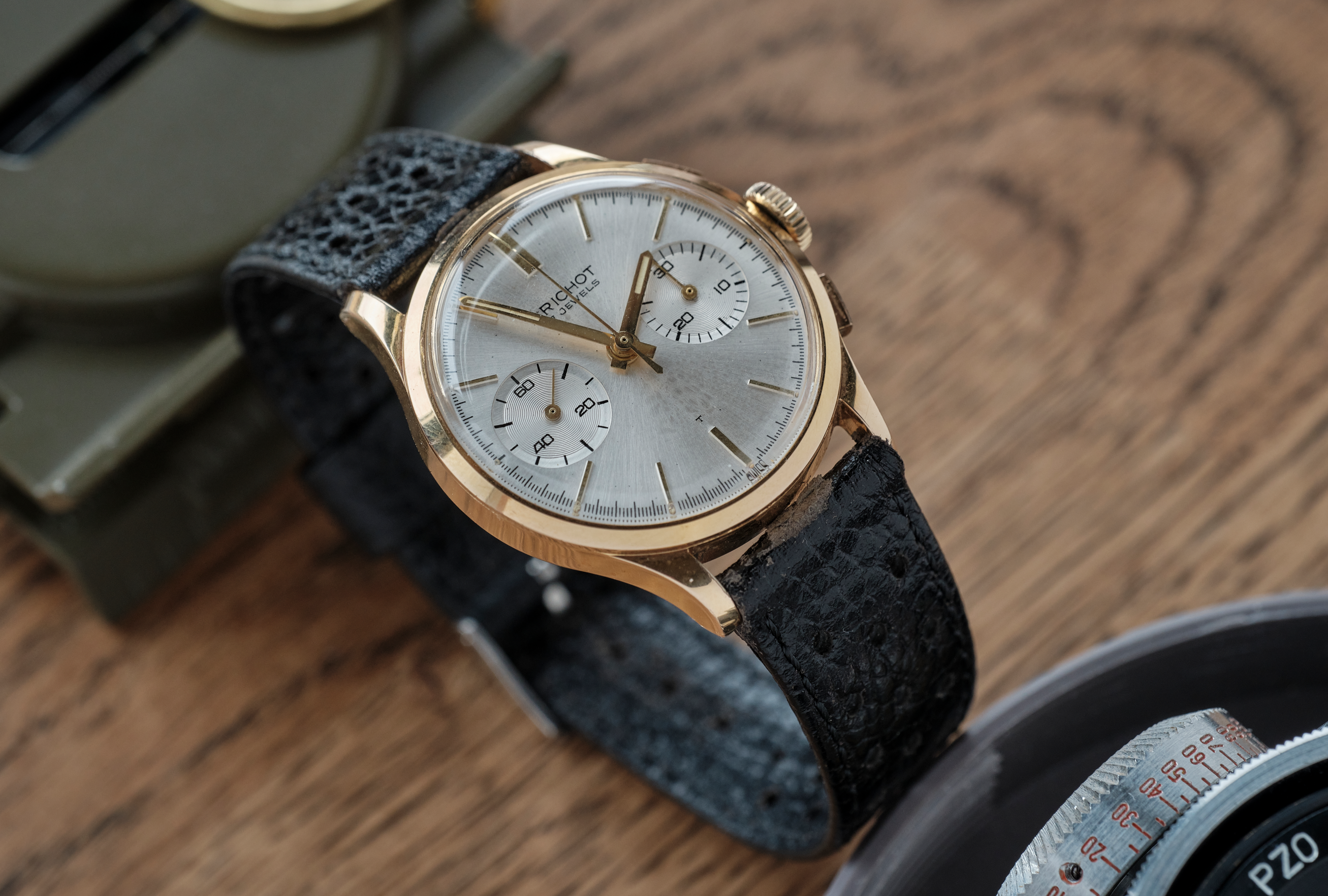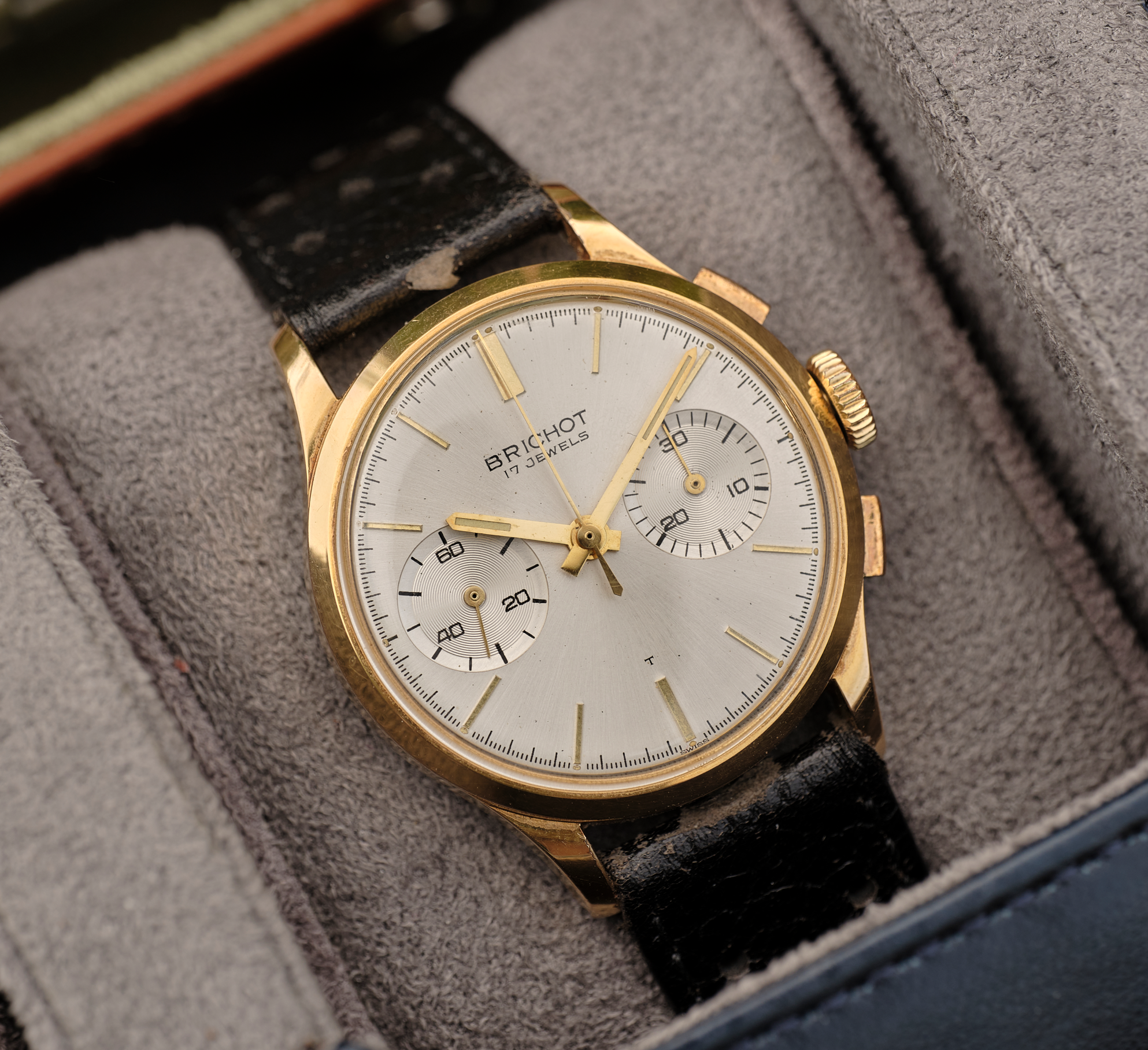 ·I am selling this pretty 1960s gold-plated Brichot chronograph that has Heuer Carrera aesthetics.