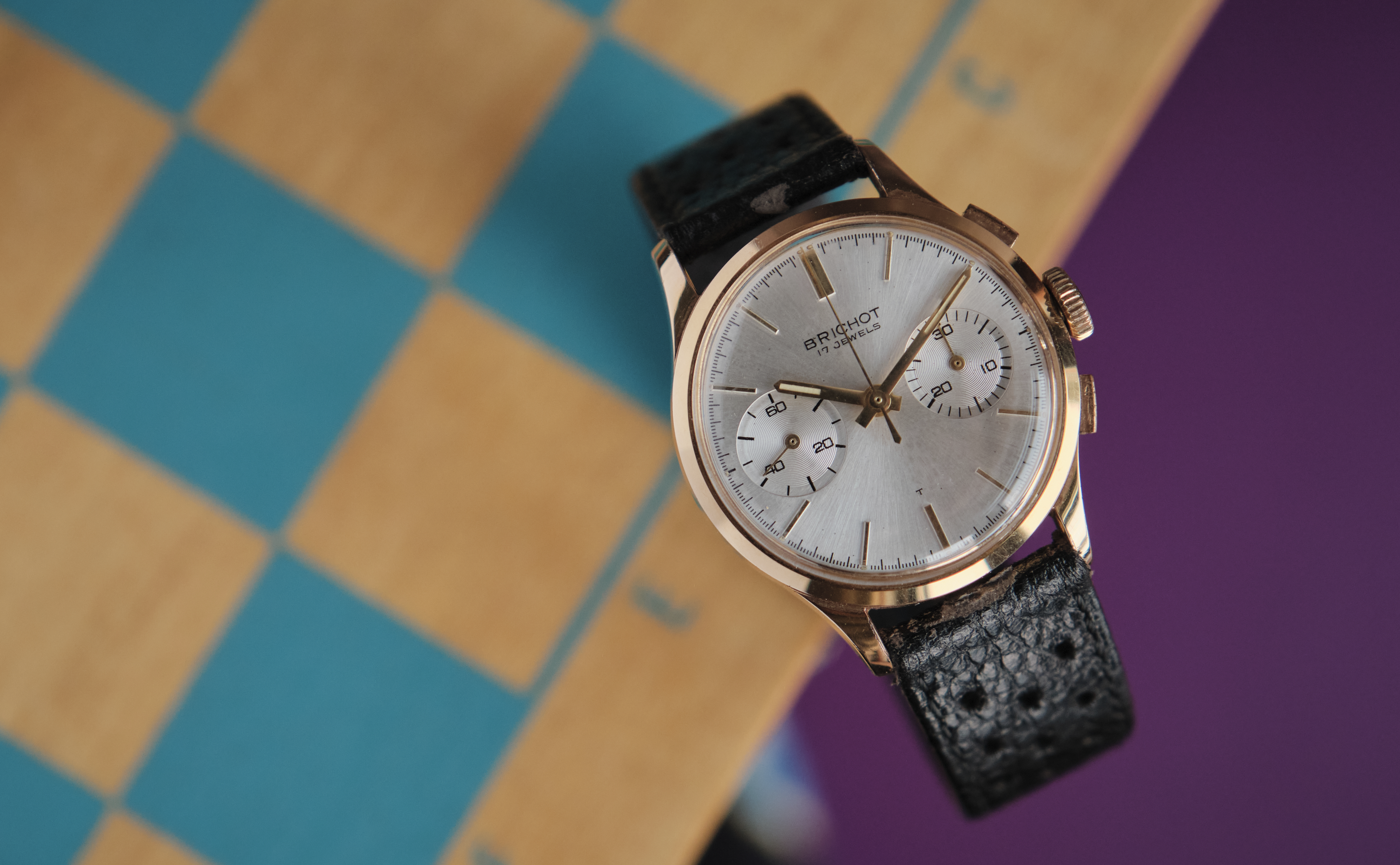 ·I am selling this pretty 1960s gold-plated Brichot chronograph that has Heuer Carrera aesthetics.