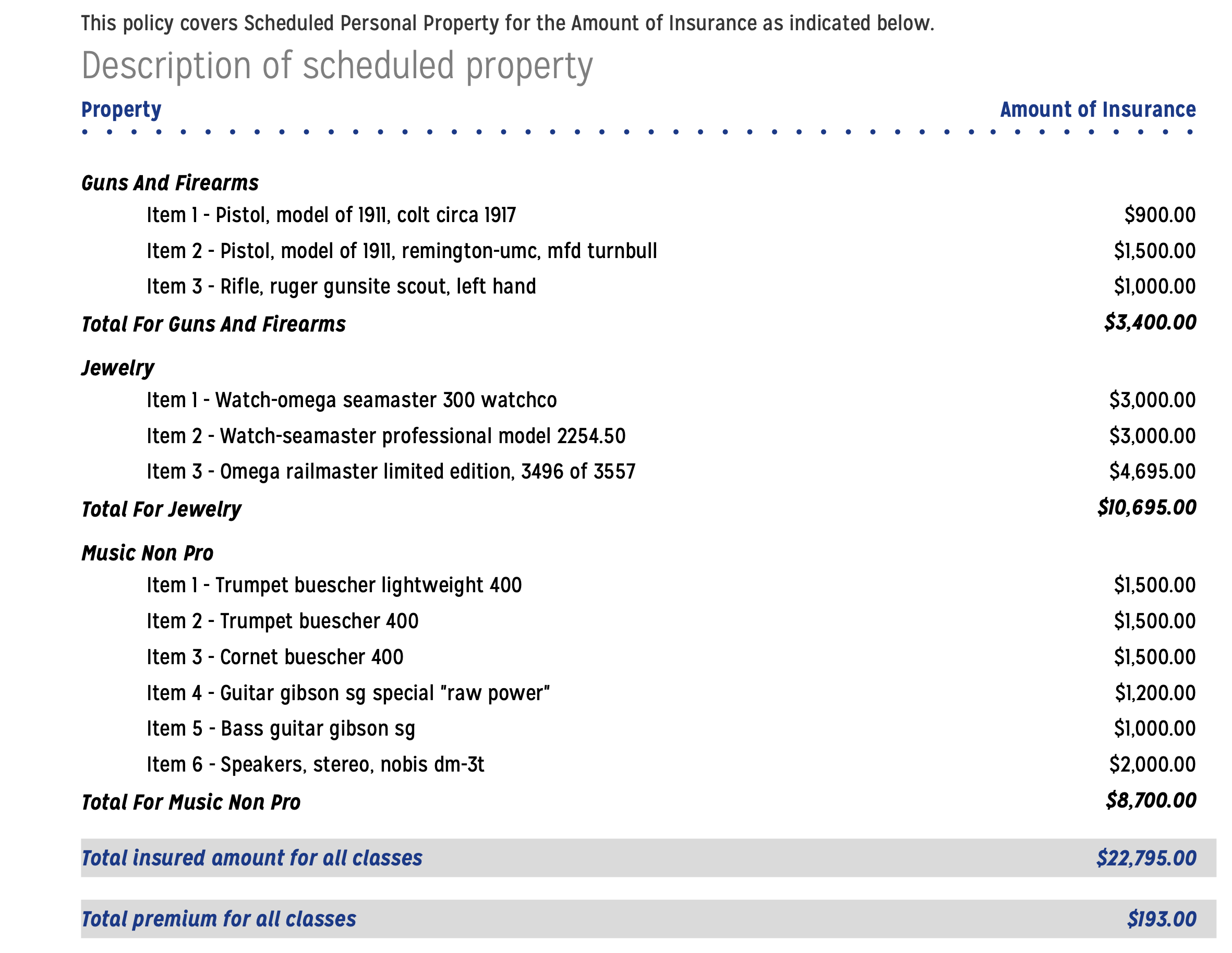 - Full replacement if lost, stolen, or damaged up to 125% of appraised value