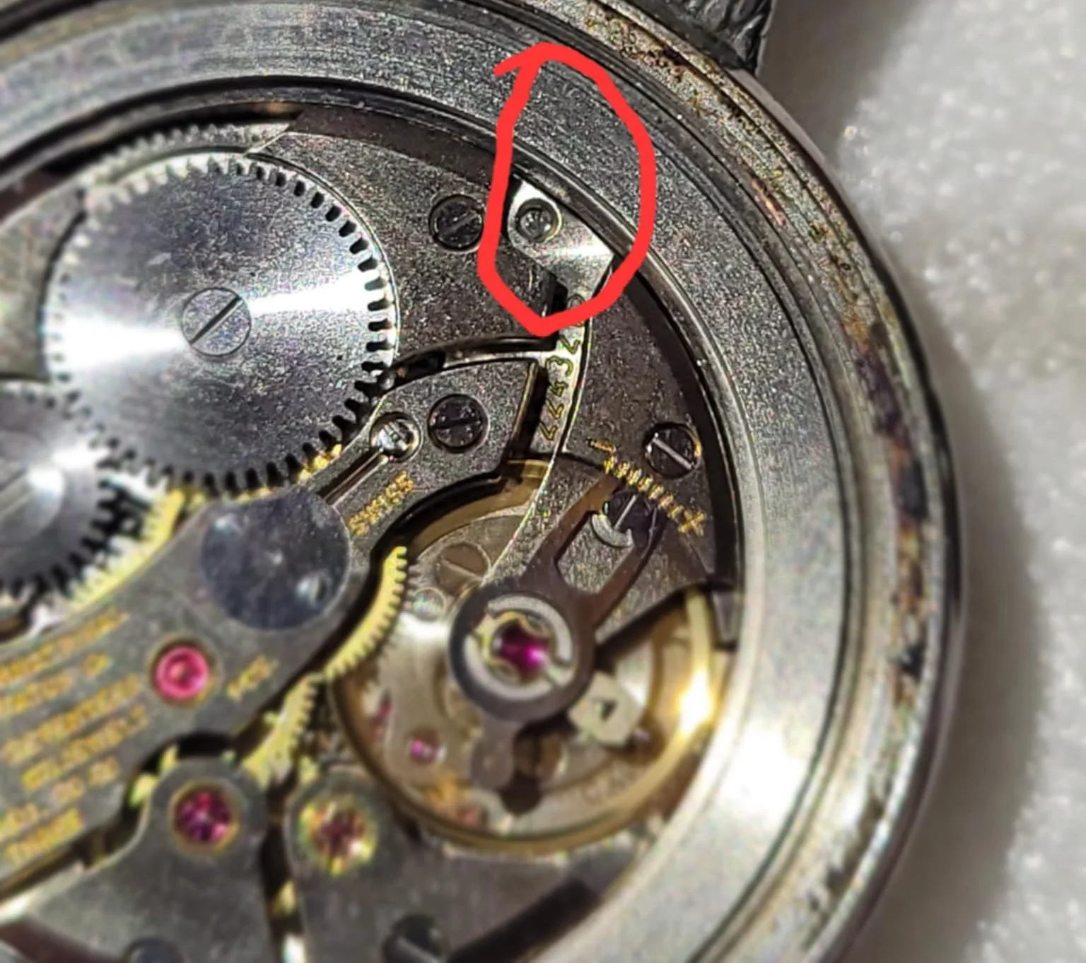 Recently won a 1971 IWC #2400 Cal. 403 on a yahoo auction, noticed it was making a clanking sound when I got it and also noticed the dial was moving slightly, so I opened it up and found that one of the movement holder screws broke and is stuck inside the hole