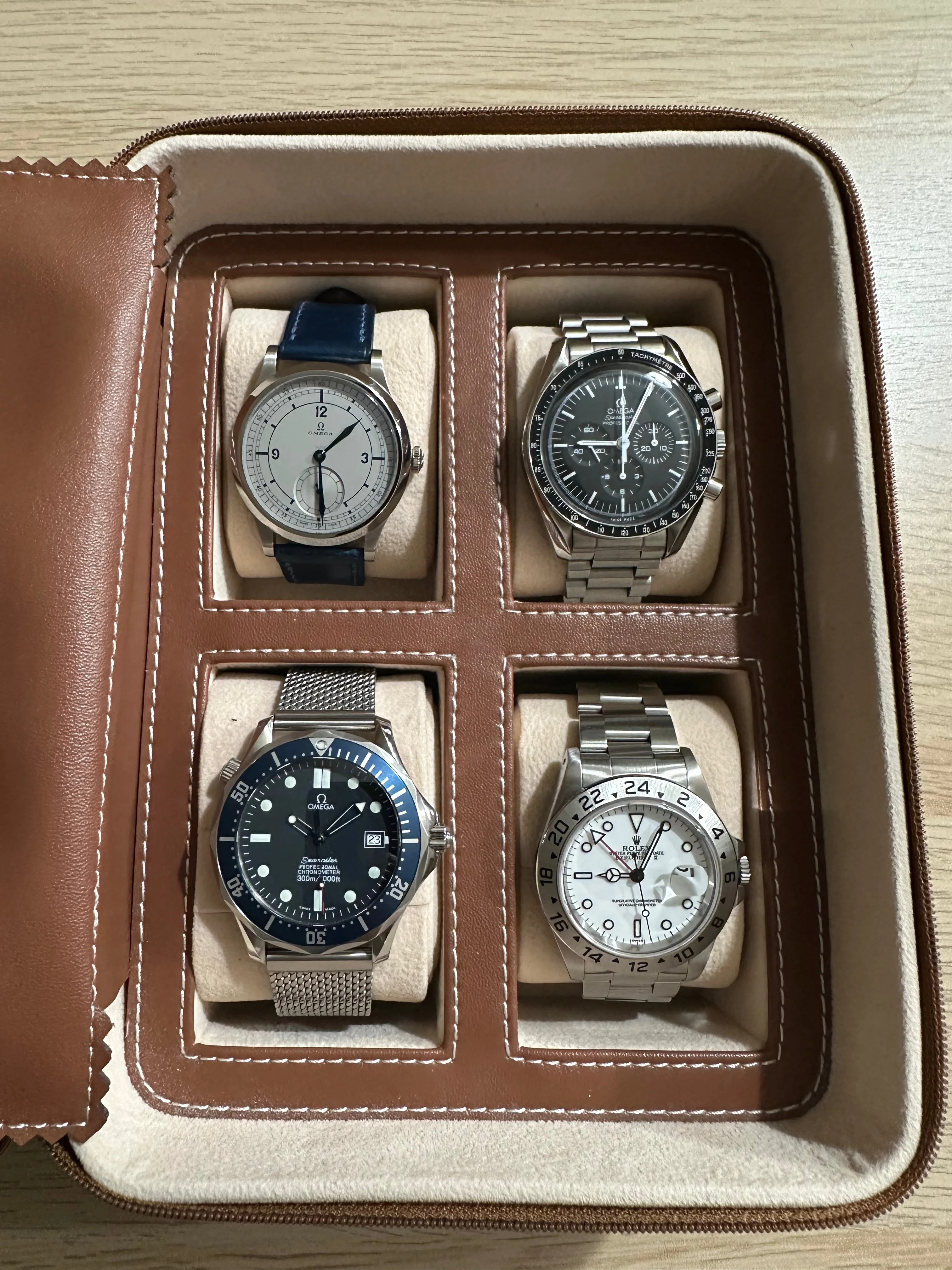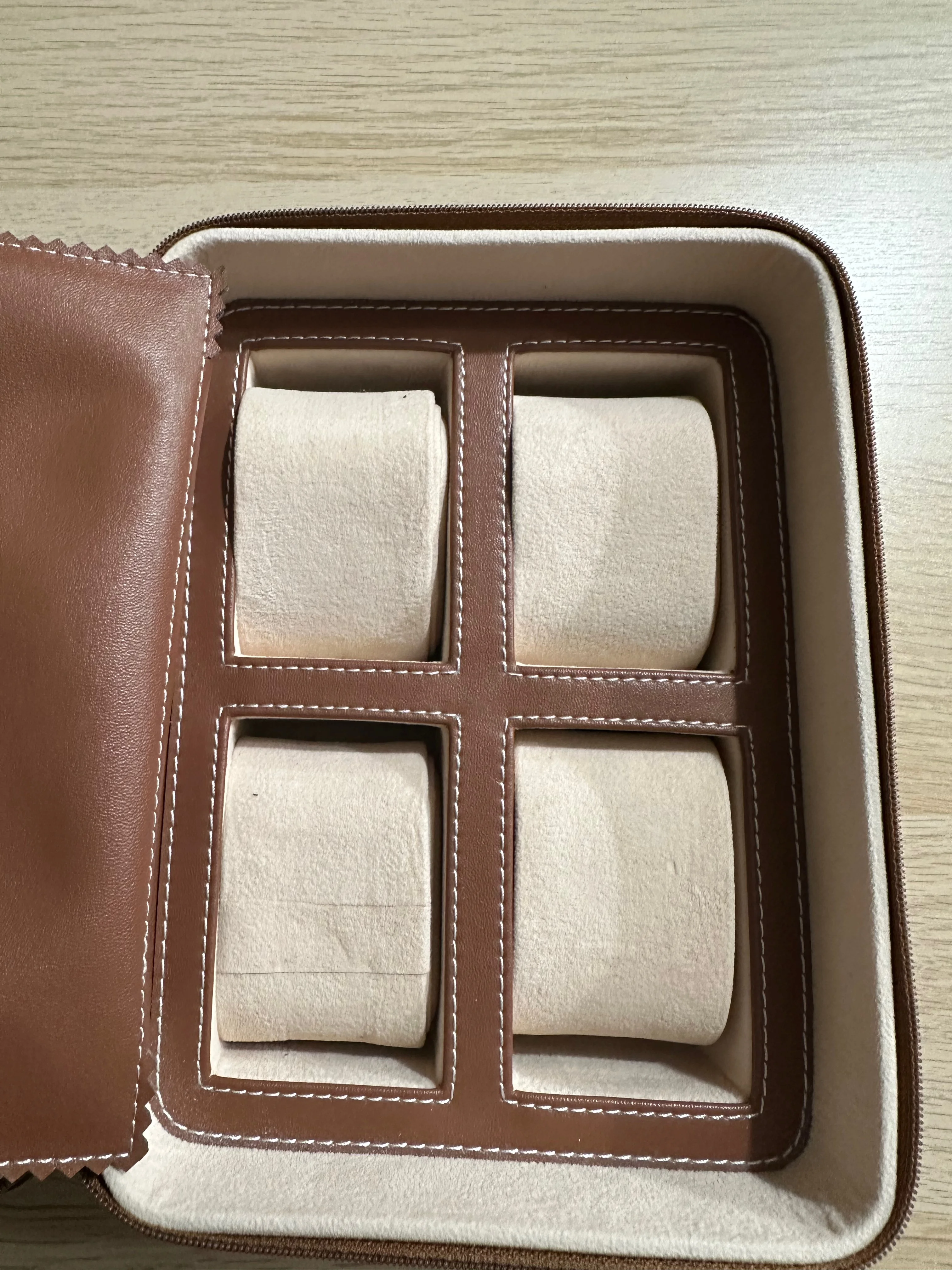 As I continue the mass consolidation, I find I am no longer in need of this watch box. It's an unbranded box made of high quality brown leather with a soft fabric interior. I bought it at Nordstrom's or Pottery Barn a few years ago, I can't remember which. It's in excellent condition and perfect for enabling the further hoarding of timepieces.