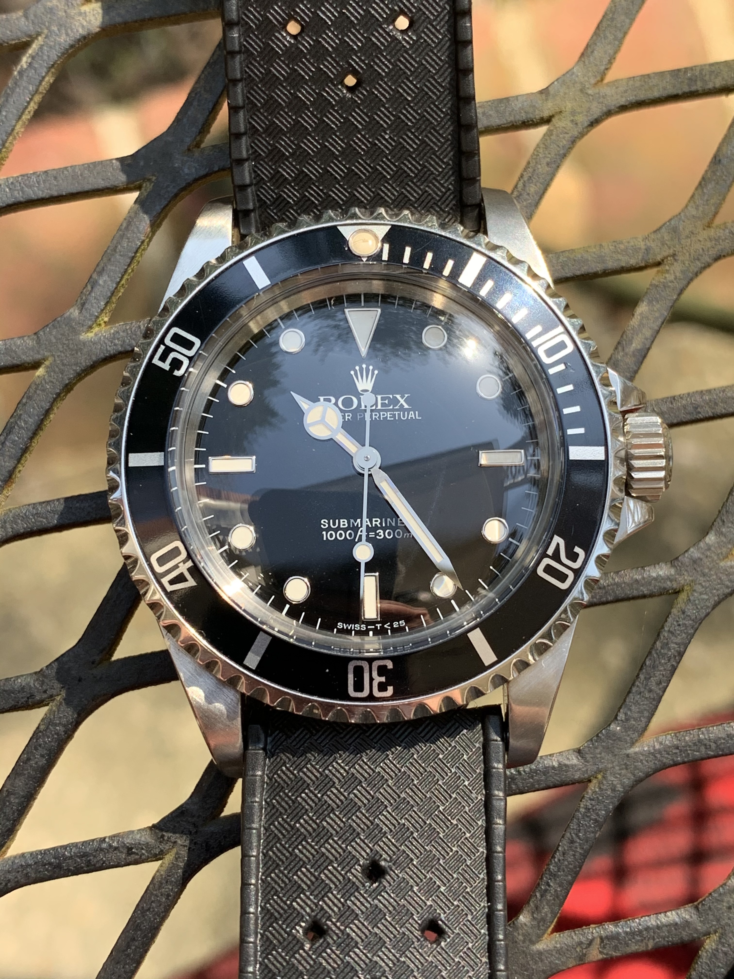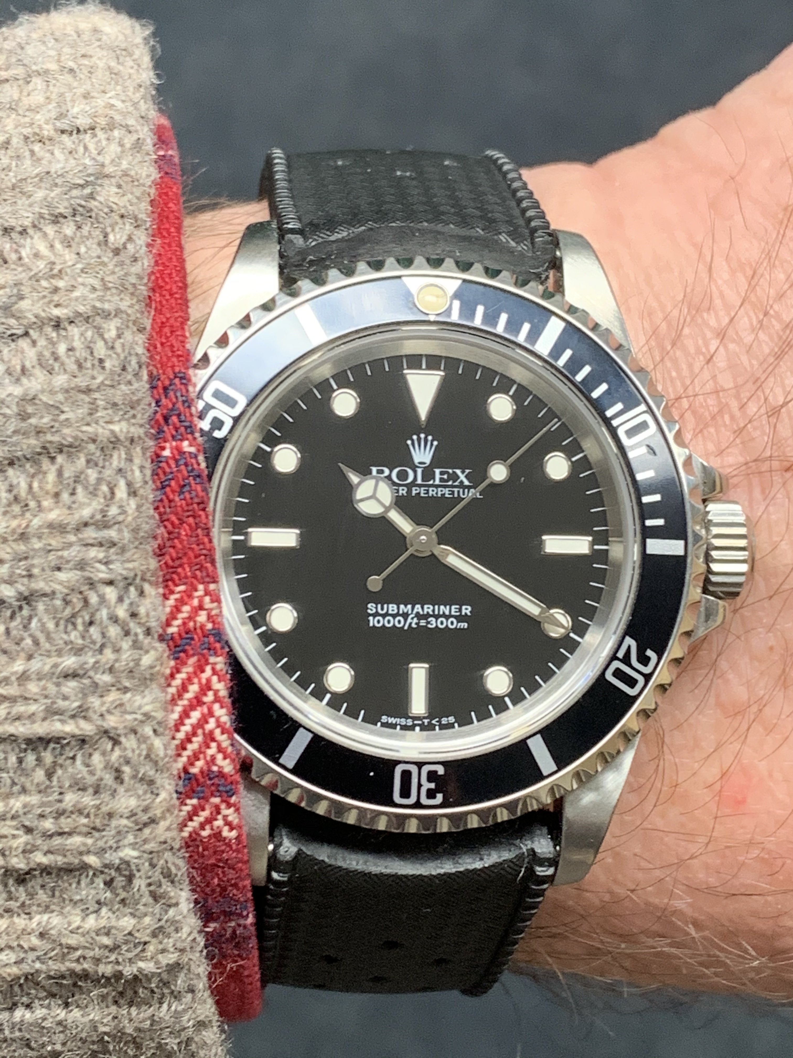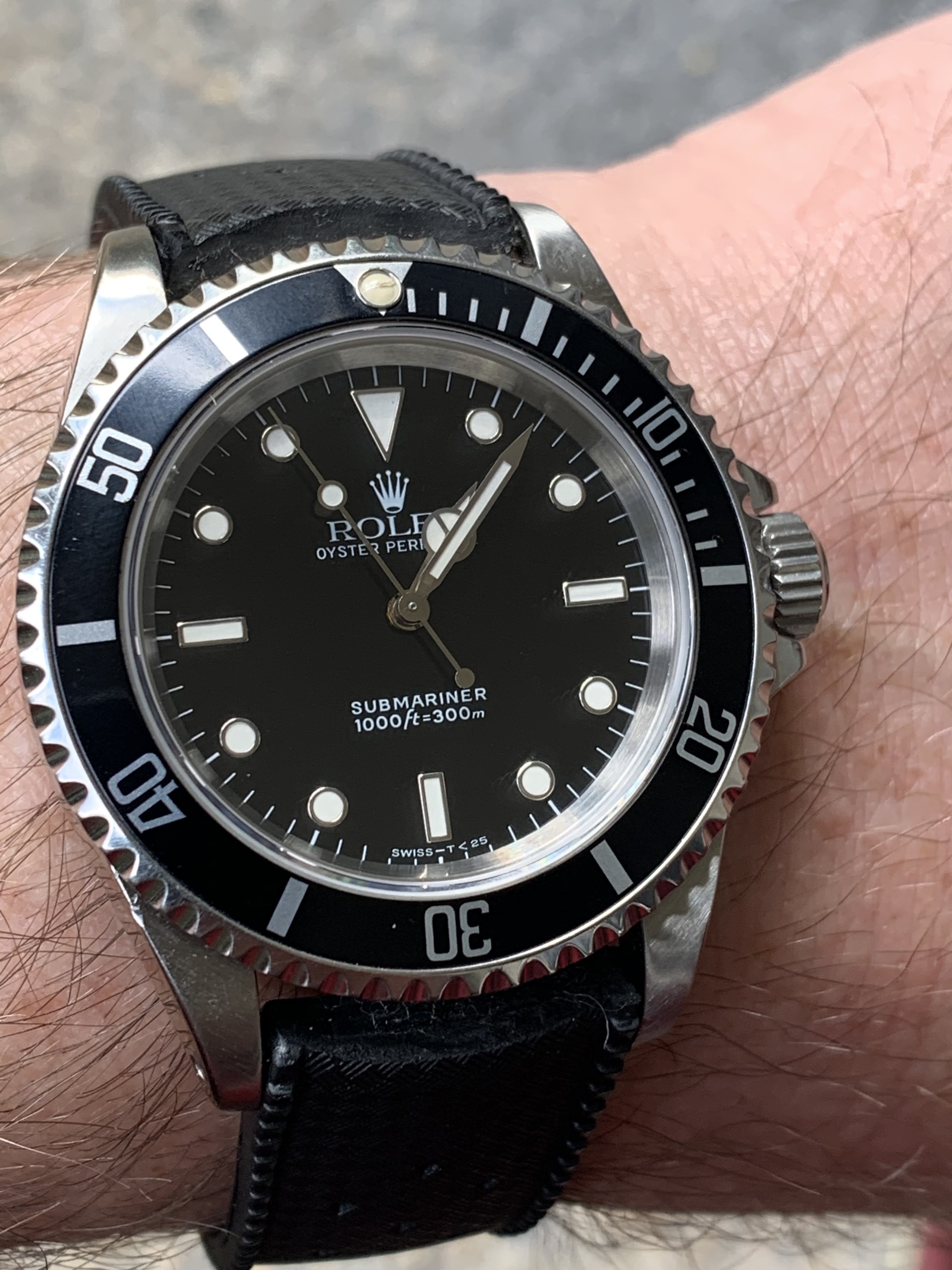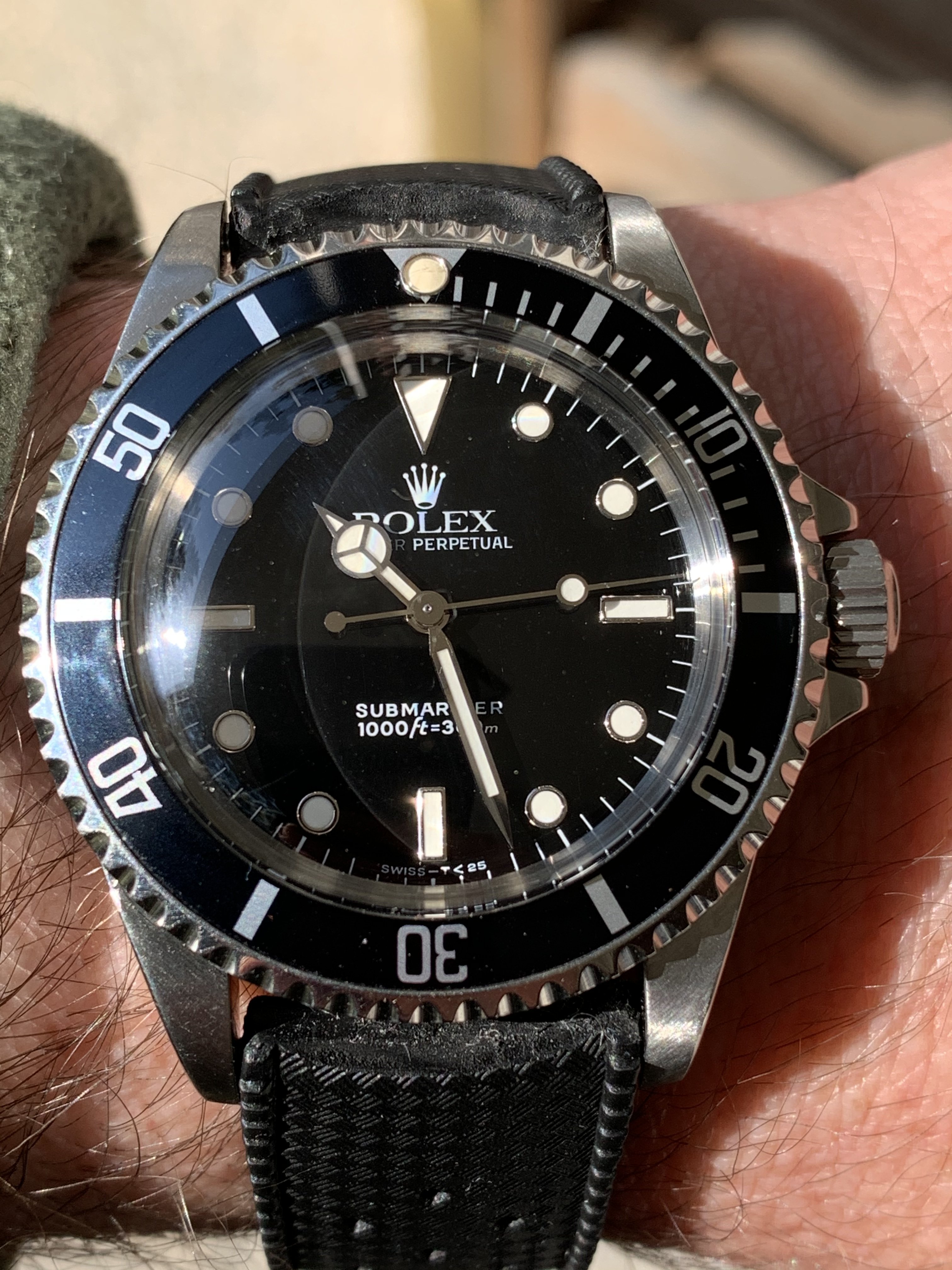 I never really wanted a sub, I have owned my GMT for almost 20 years and felt they were too similar to justify- not to mention the sub is just so....black. But I got it from a fellow member here in a trade deal and I realized that I really like this watch- it is very different from the GMT and I love the simplicity of the dial, the symmetry of no date, and perfect balance on the wrist- it really is the epitome of a classic dive watch.