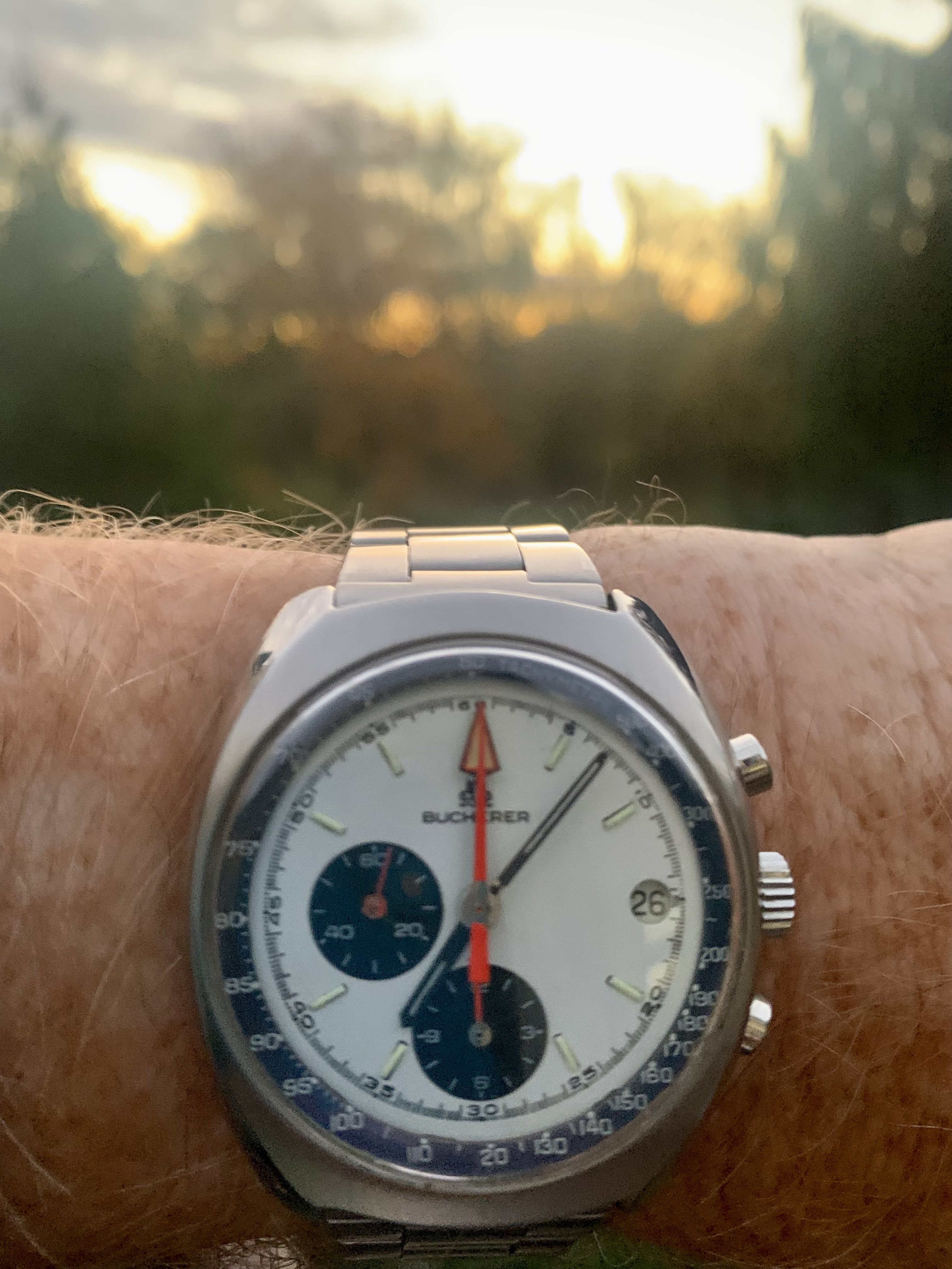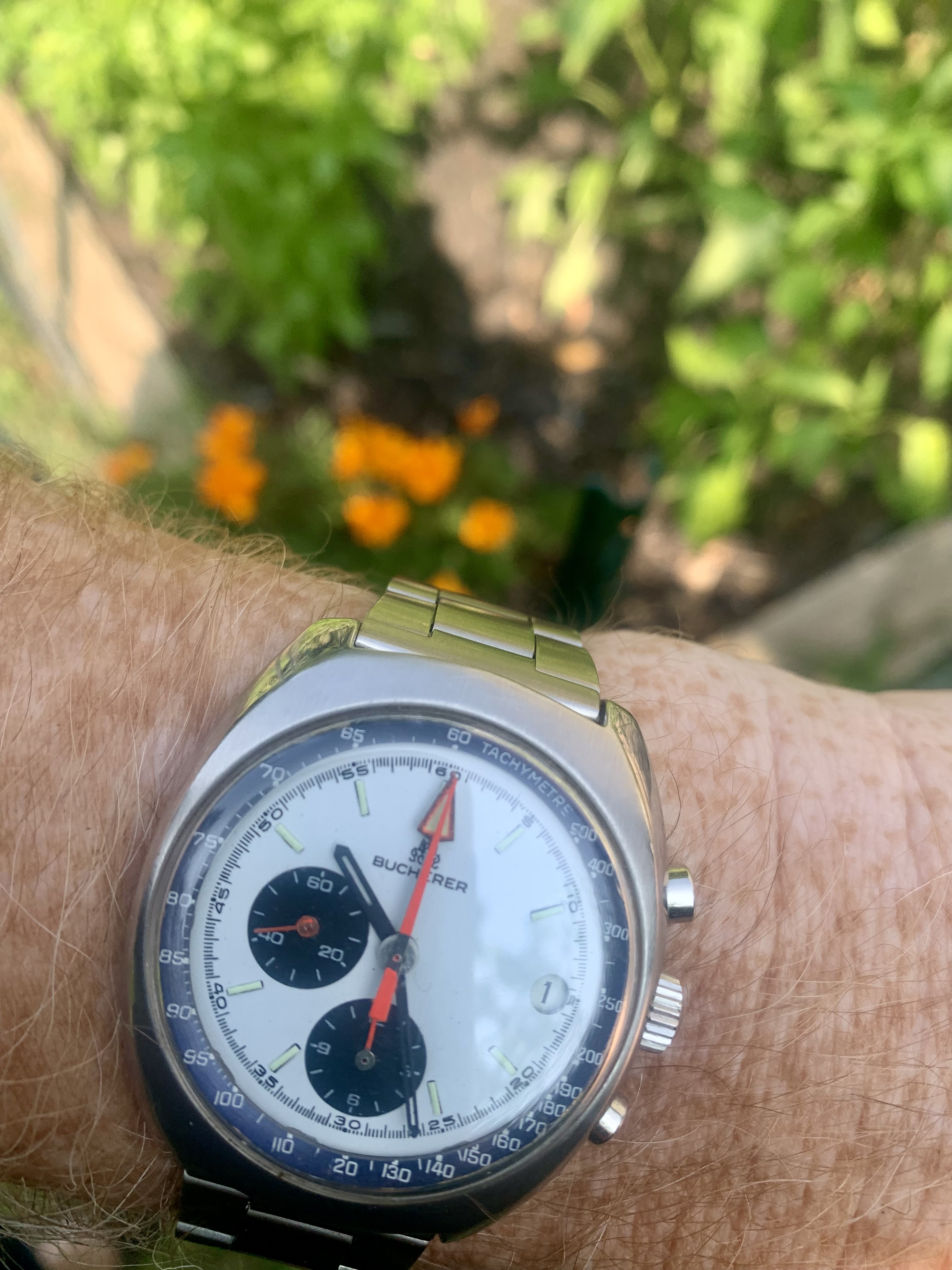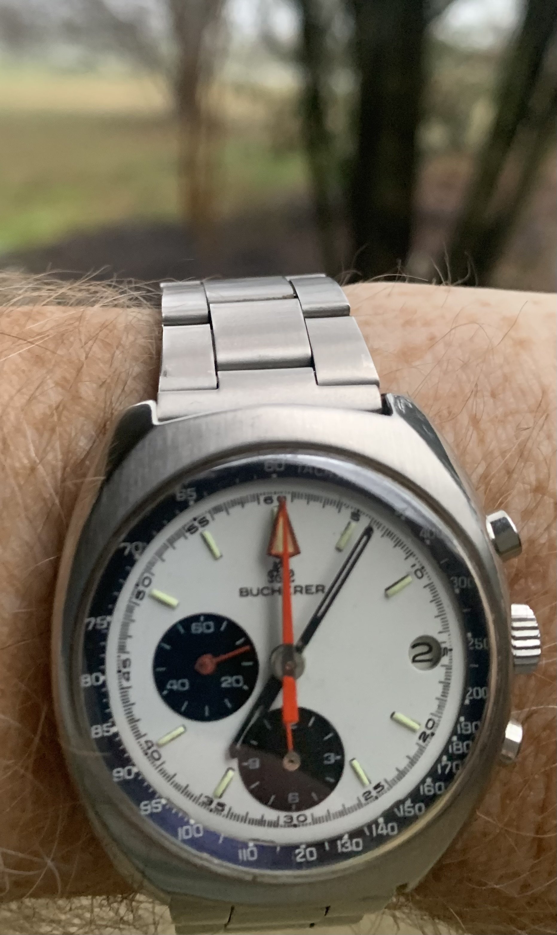 Lemania 1340 aka Omega 1040 has central second and minute accumulators, hour accumulator at 6 and running seconds at 9 with quickset date at 3. Serviced 2019 by my then Brooklyn neighbor and forum favorite HF.