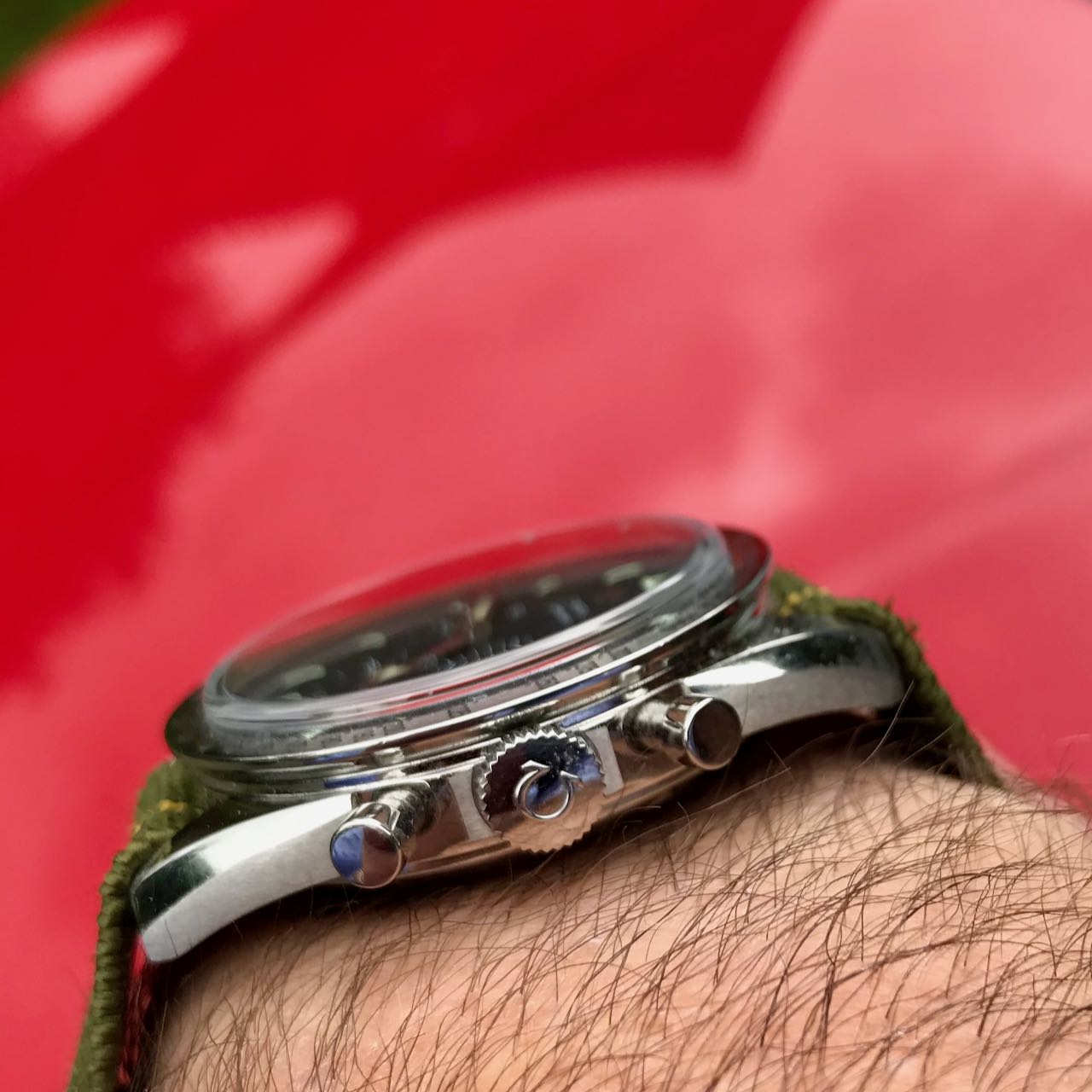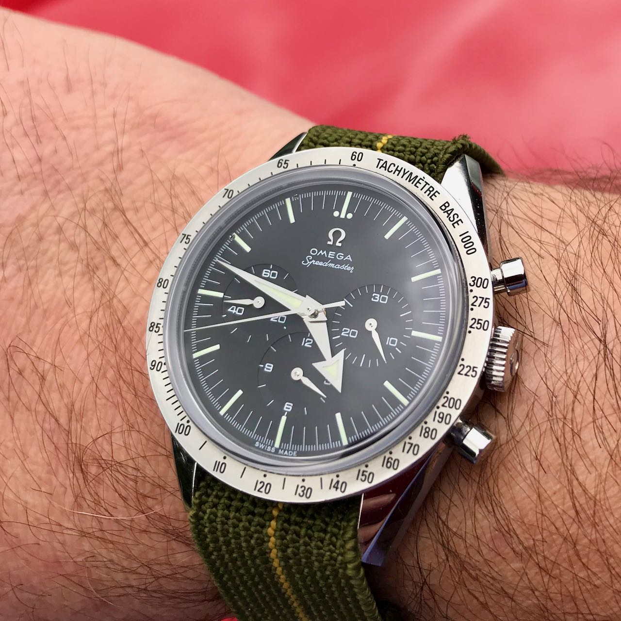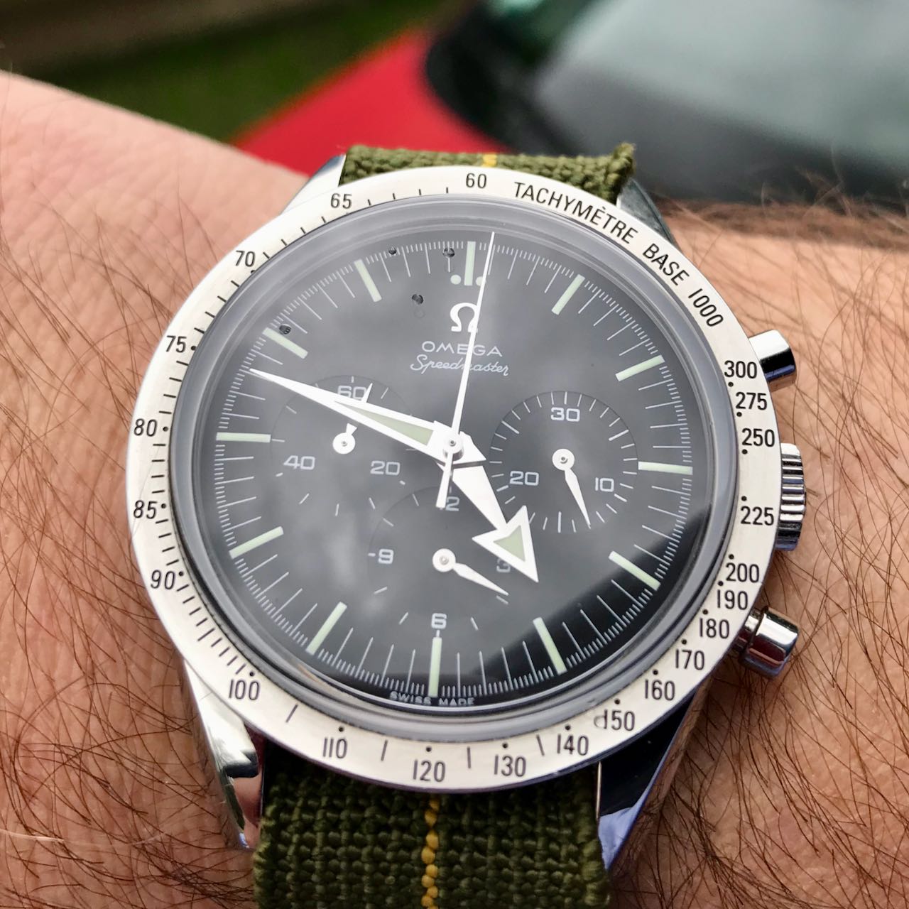 ·Here's one end of the spectrum: my minimal mod of the Broad Arrow. It originally had a polished steel bezel, I put on an (original Omega) brushed one meant for a later watch.