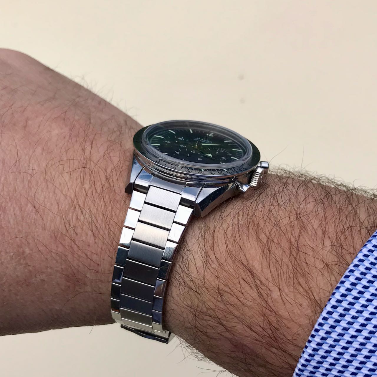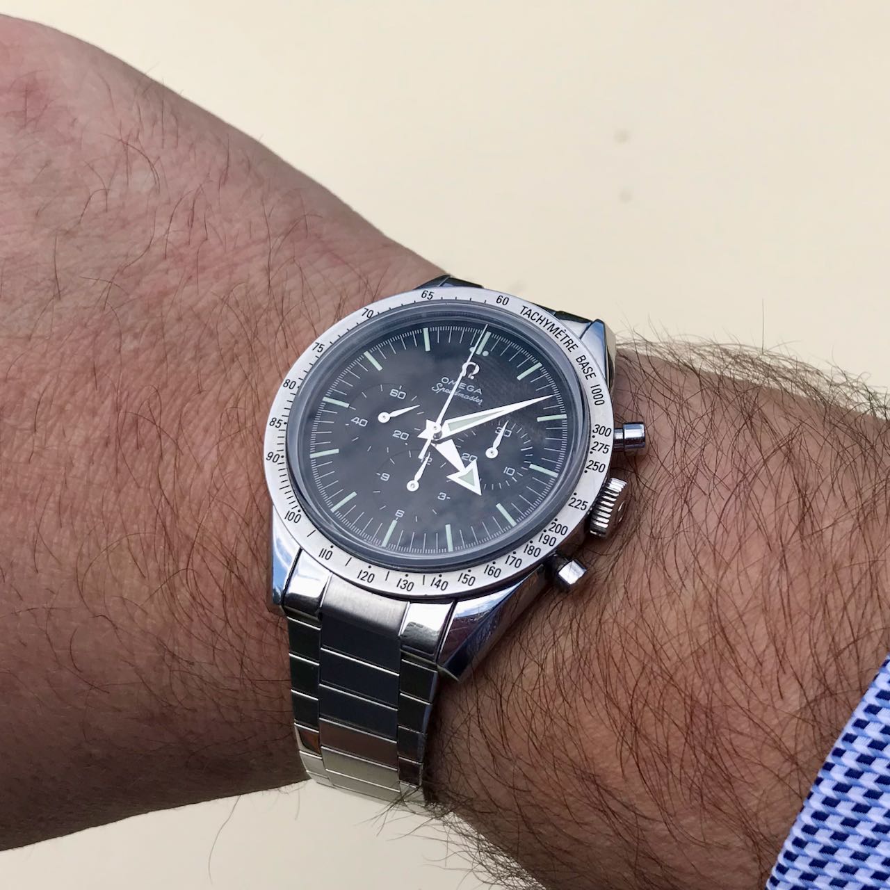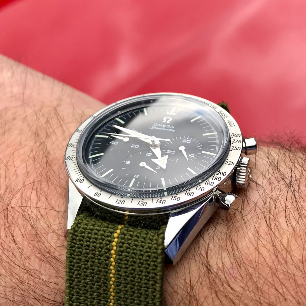 ·Here's one end of the spectrum: my minimal mod of the Broad Arrow. It originally had a polished steel bezel, I put on an (original Omega) brushed one meant for a later watch.