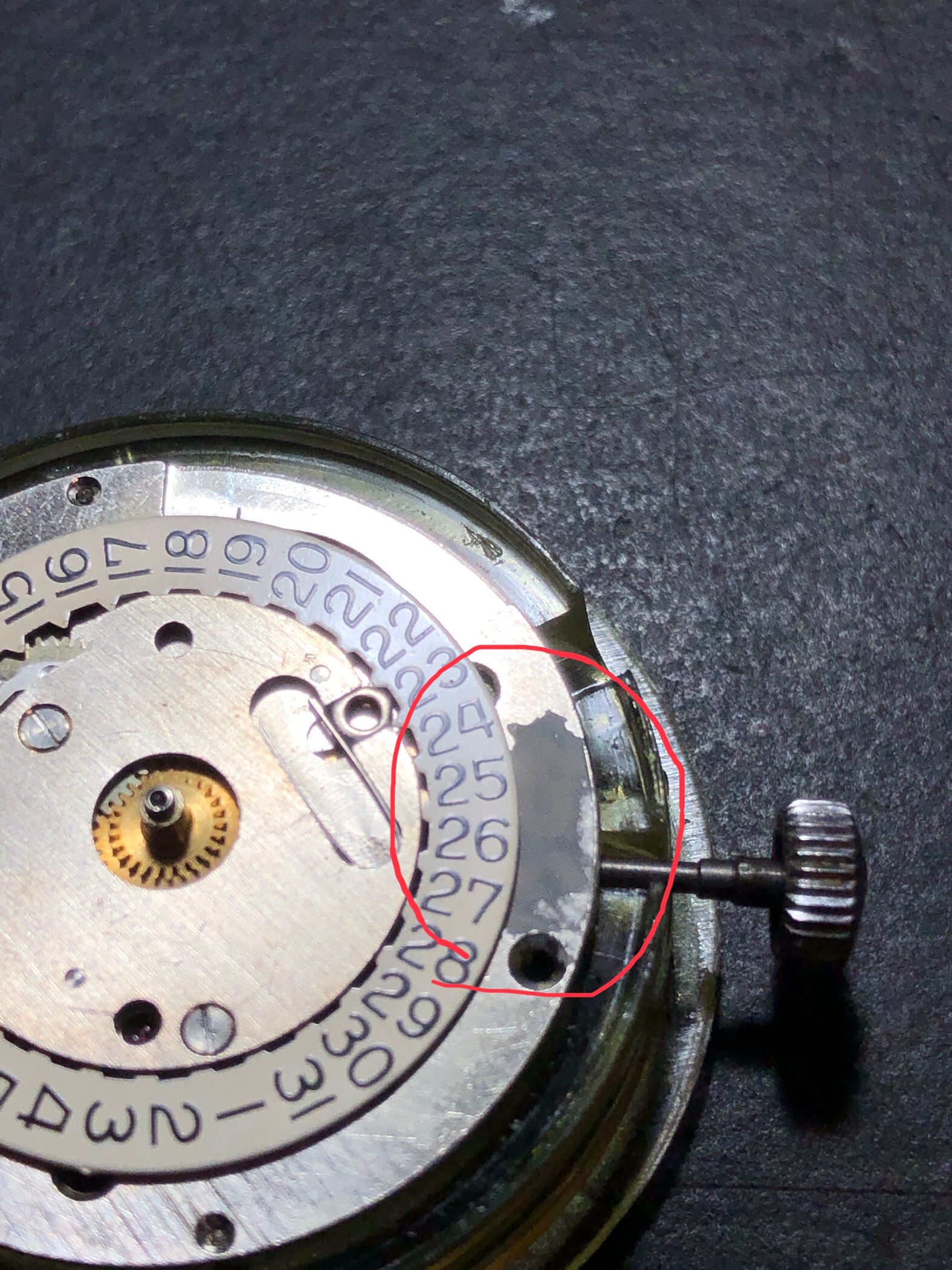 I didn't notice it at first but my friend who works on watches (not a watchmaker) noticed that the date window was slightly off from the date wheel.
