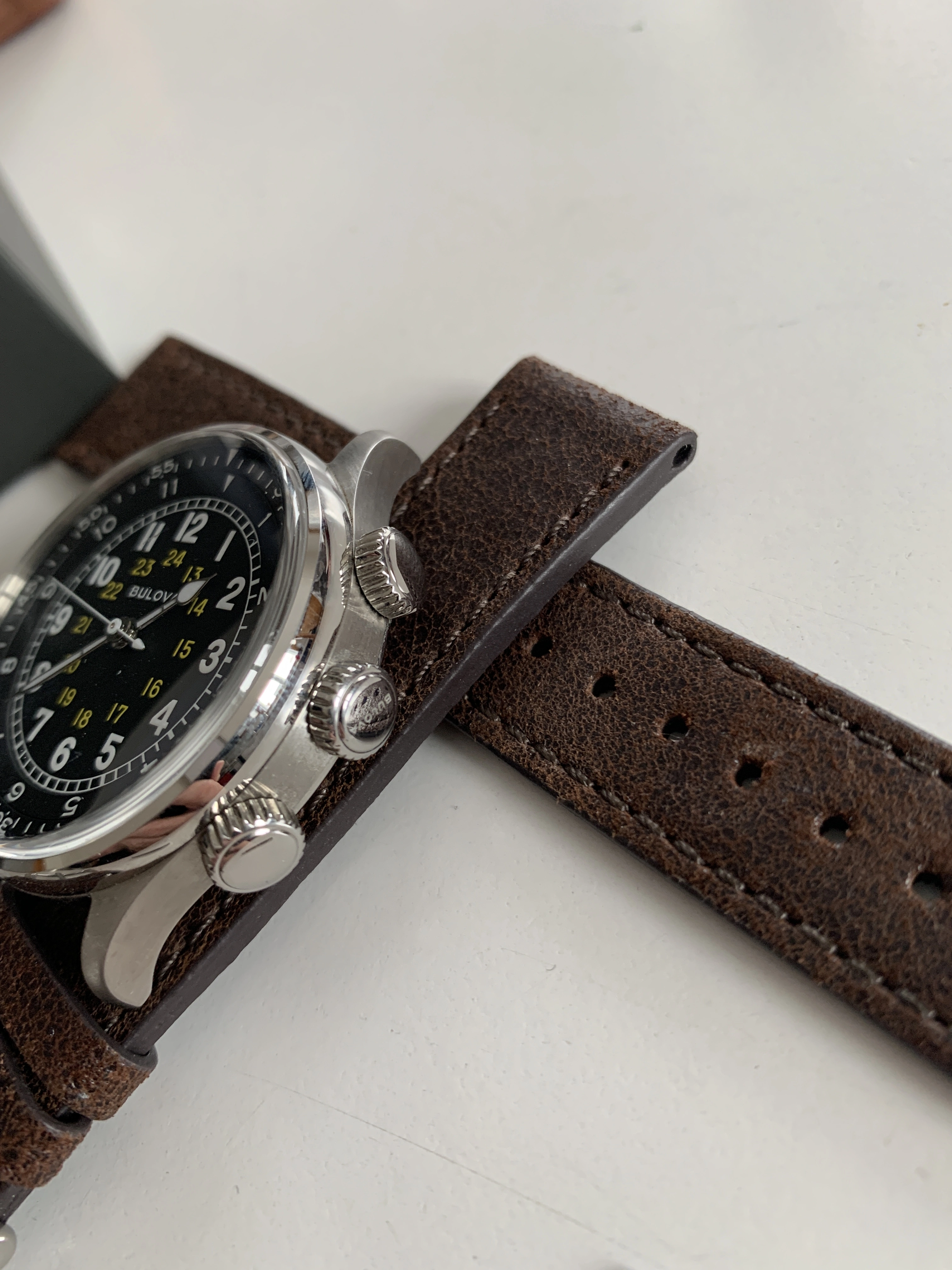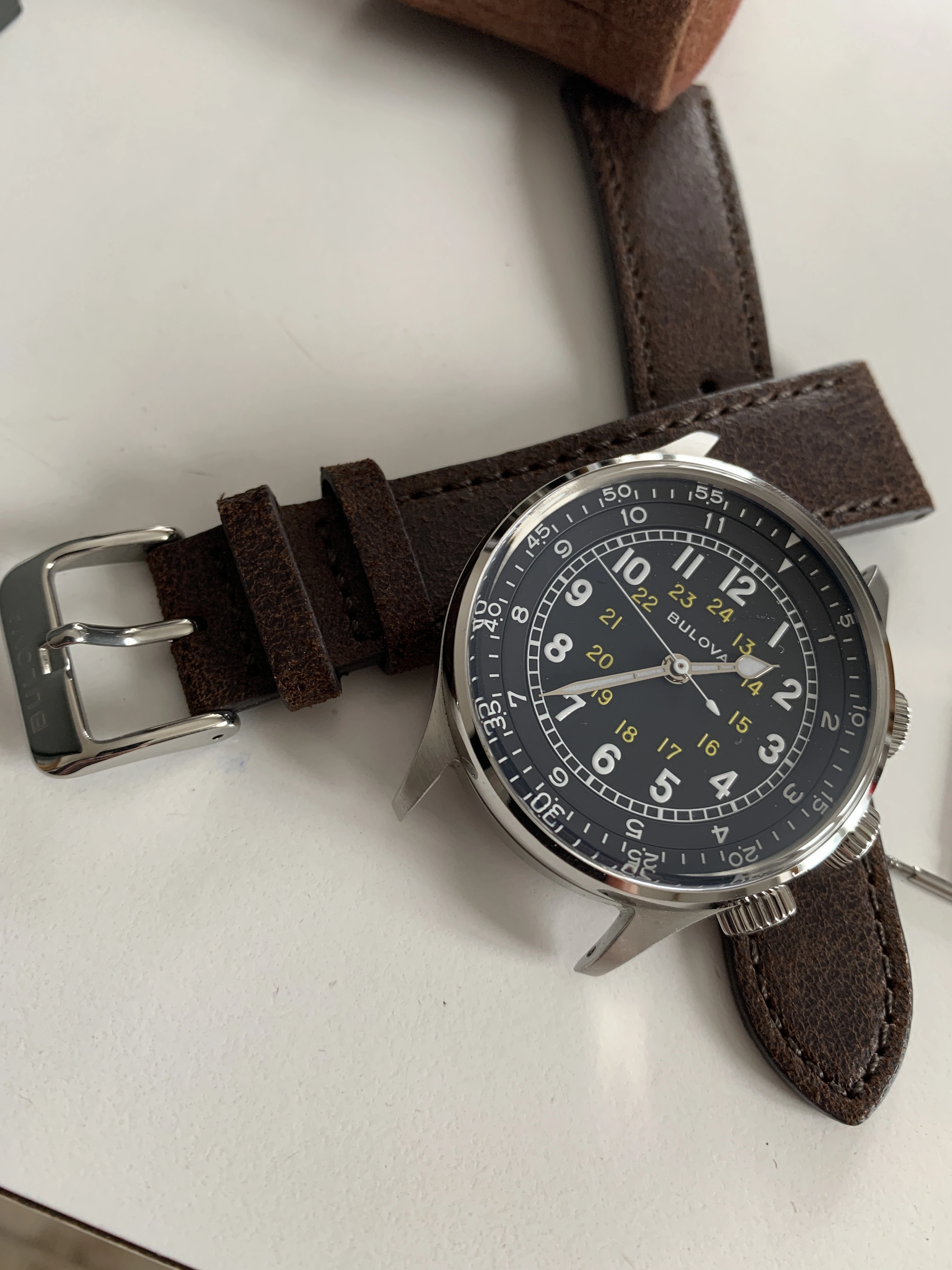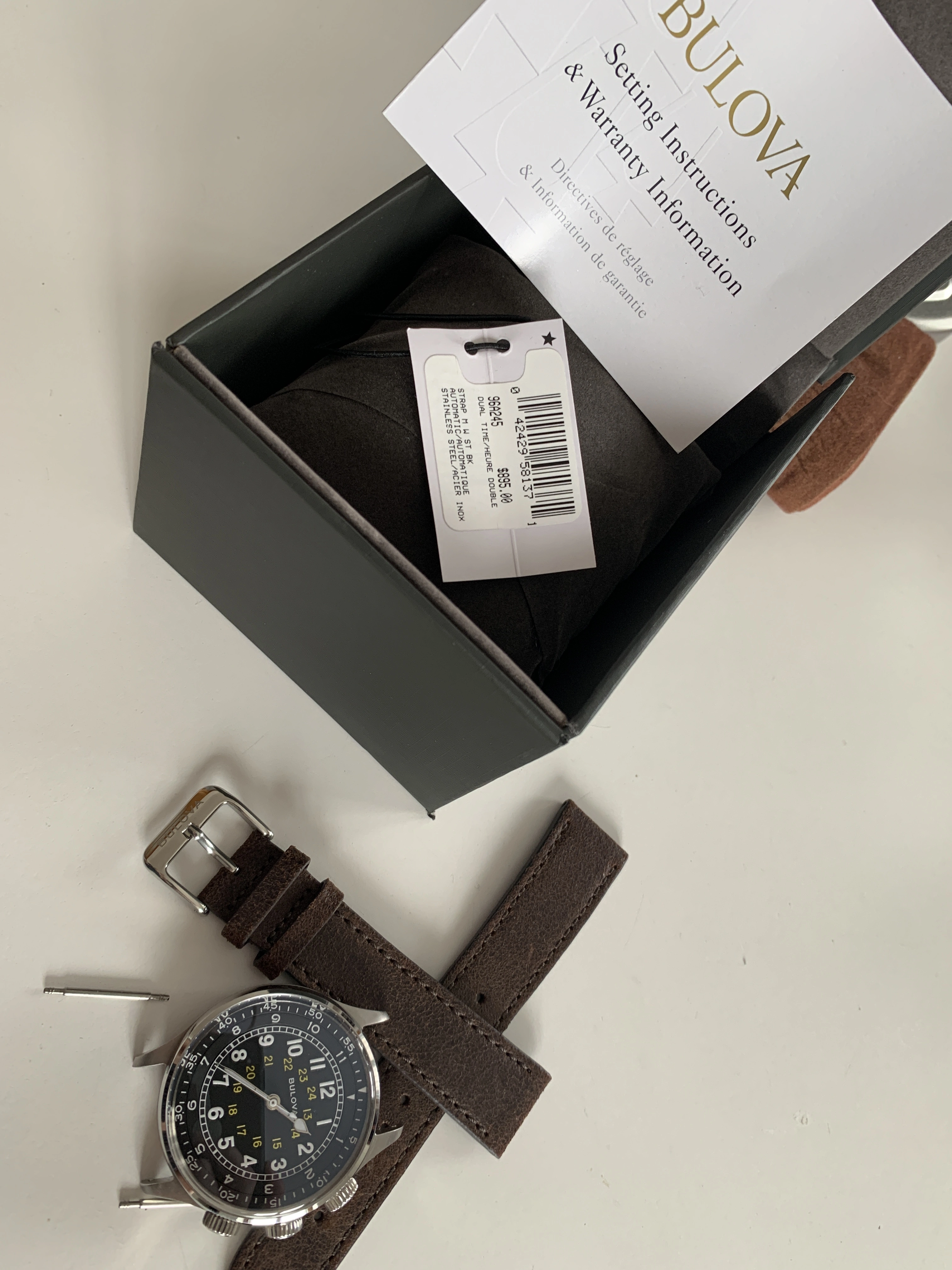 Selling my practically unworn Bulova A-15 Pilot. Watch comes with all the original packaging and strap which has been worn less than a handful of times. Dimensions are 42mm wide and 14mm tall, the sapphire crystal is flawless. The Miyota 82S6 movement run as it should. The watch runs accurately for a piece in this price range. Excellent presence of the wrist. Makes for a great daily wear or gift.