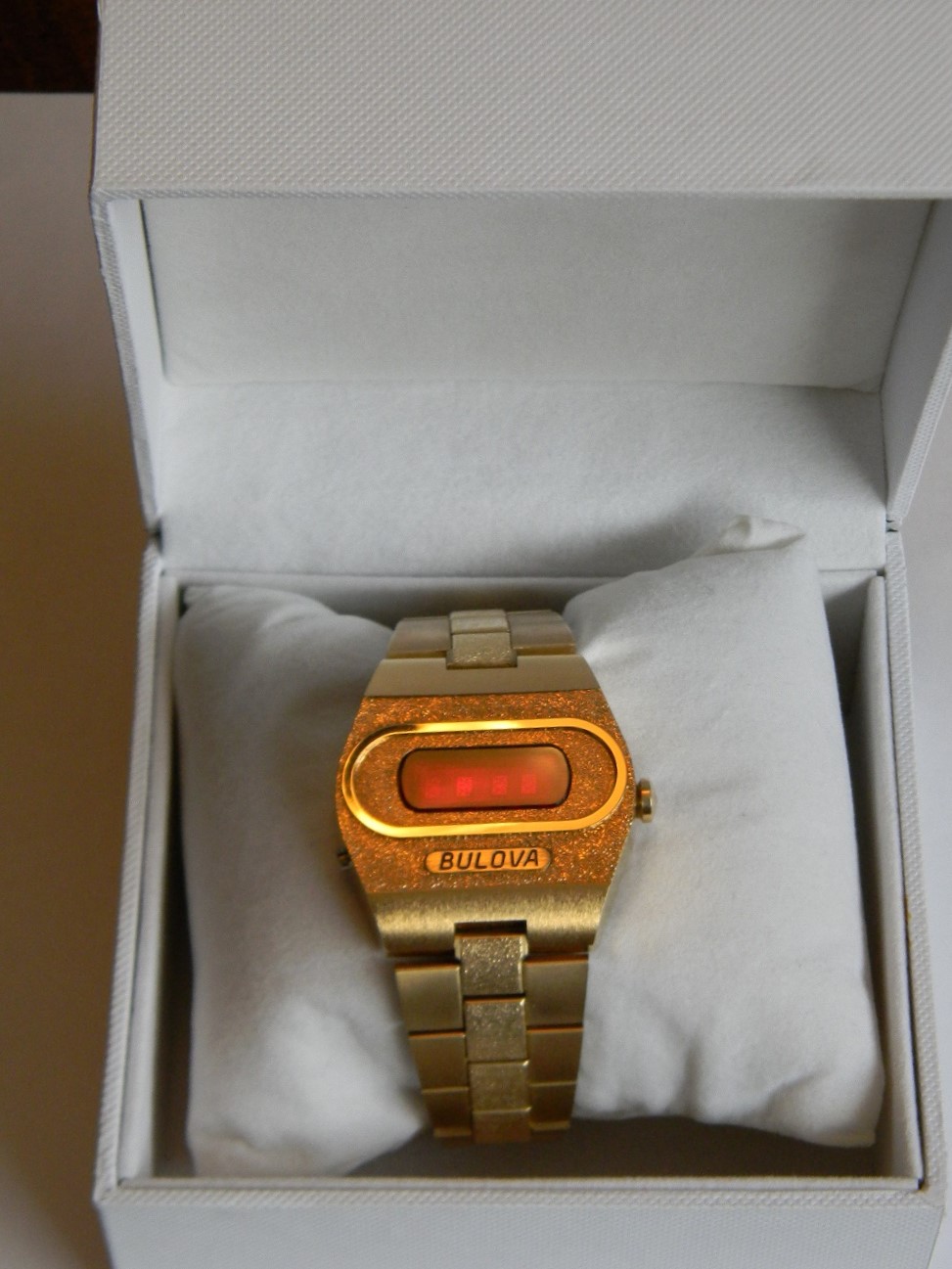 I'll include this Bulova 1981 rolled gold plate dress watch as a gimme to whoever buys this LED watch. It's a nice looking everyday watch you can throw on and not worry about it.