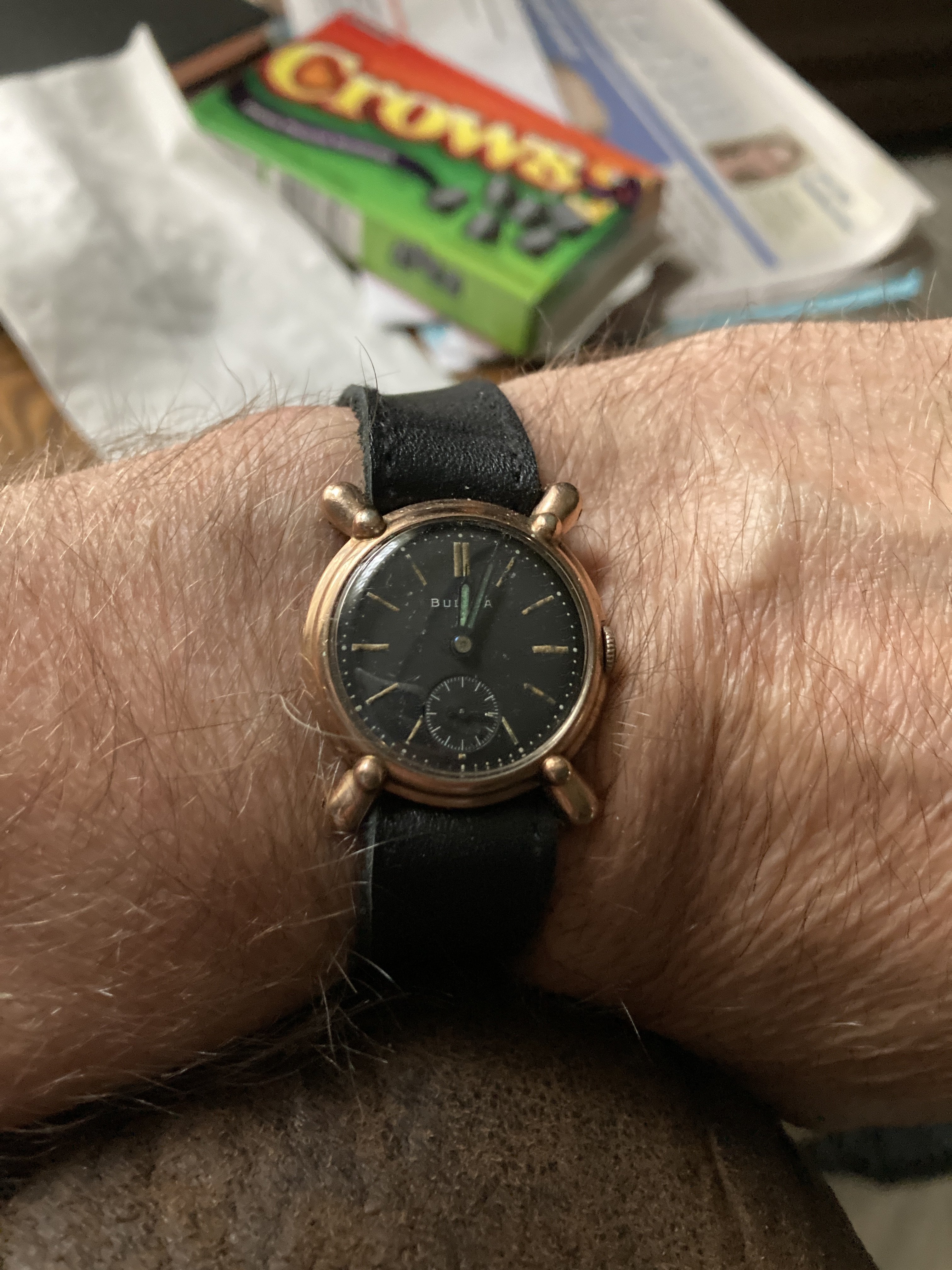 A day with a bad cold and my Bulova Commodore. It is one of those watches that looked good in the auction photos, but even better in hand.......an intoxicating purple/gray dial. I've never seen another dial with anything near the same color. Runs well, to boot.