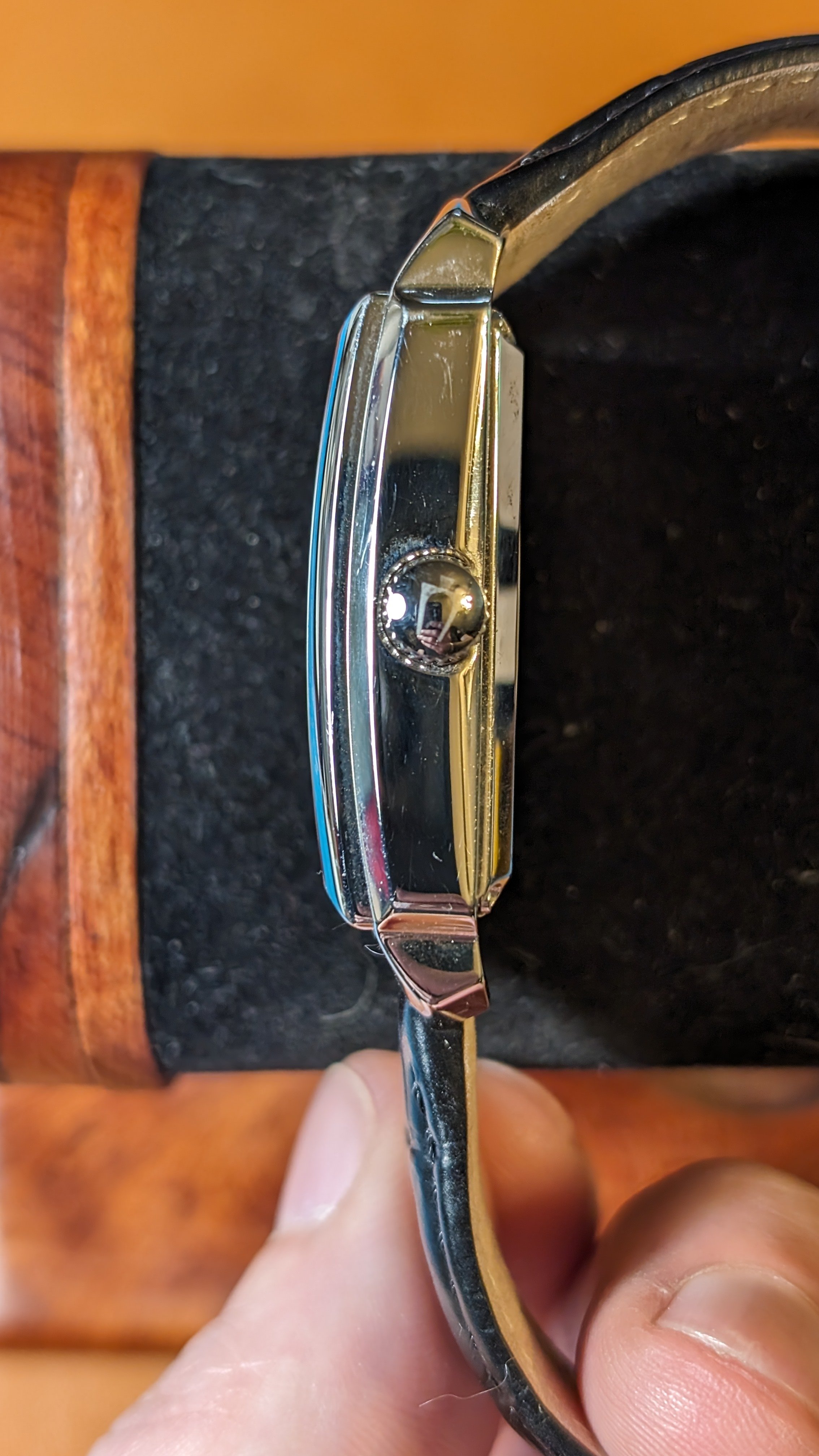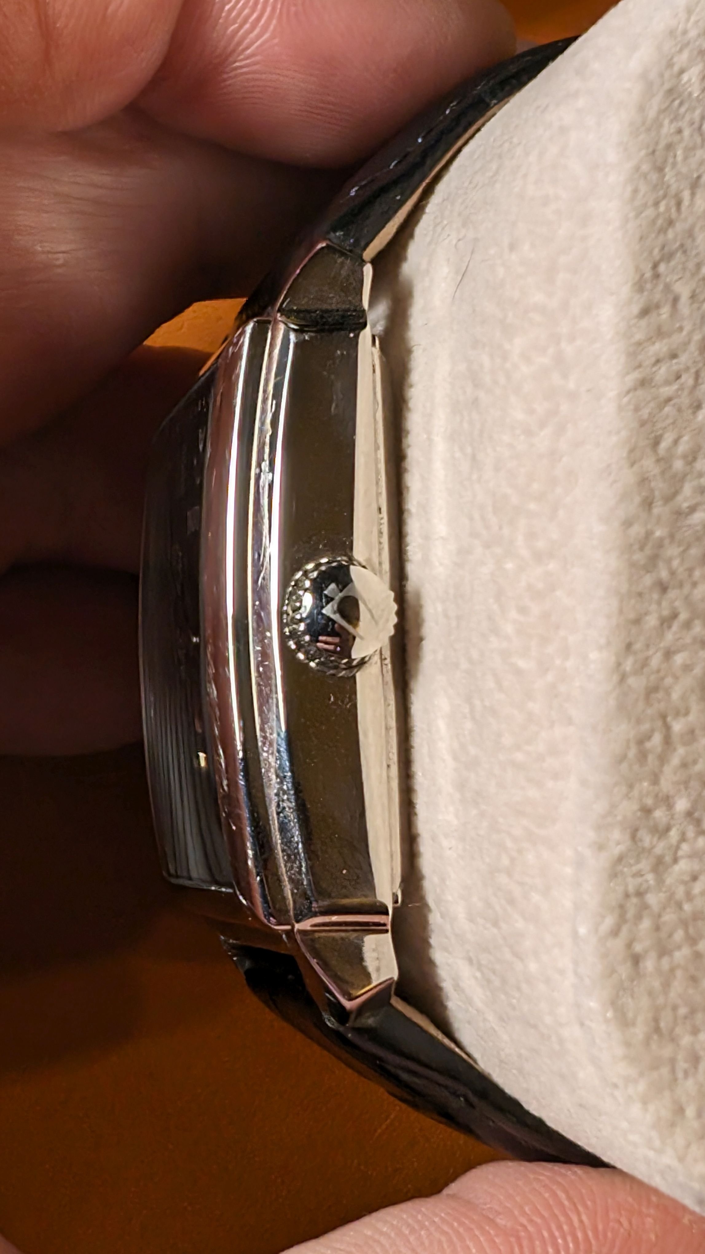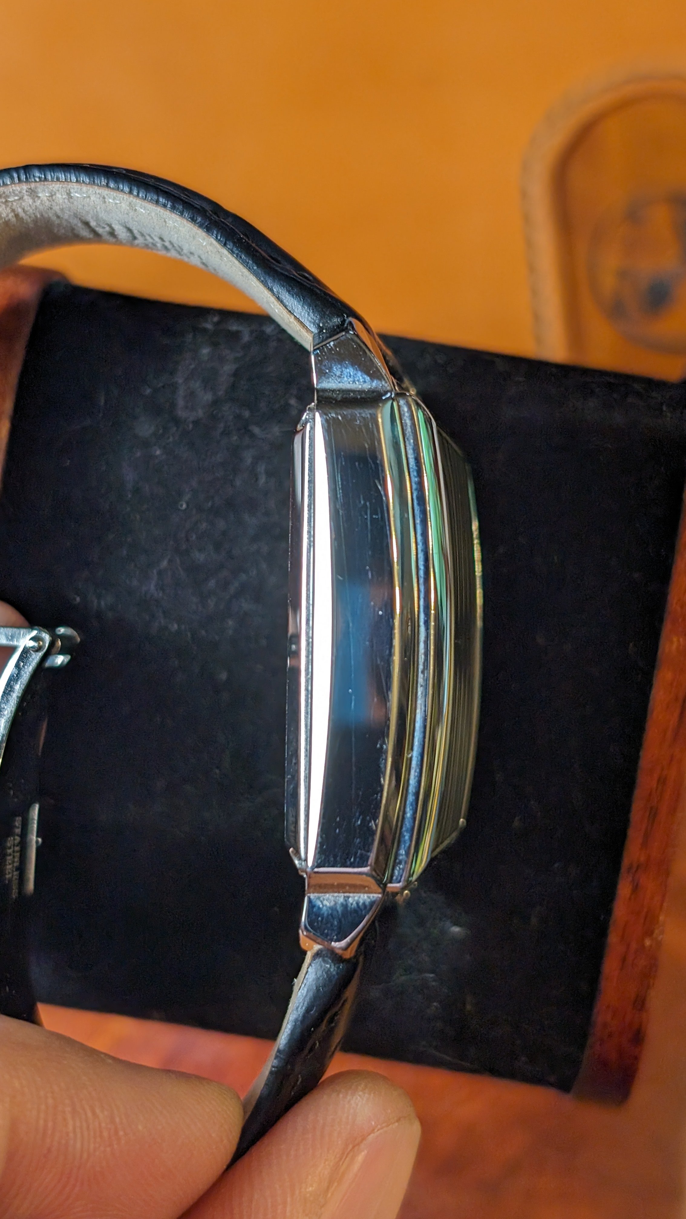 Strap: Original 22mm alligator-grain leather strap with rare, signed deployant clasp that I sourced myself (original pin buckle included)