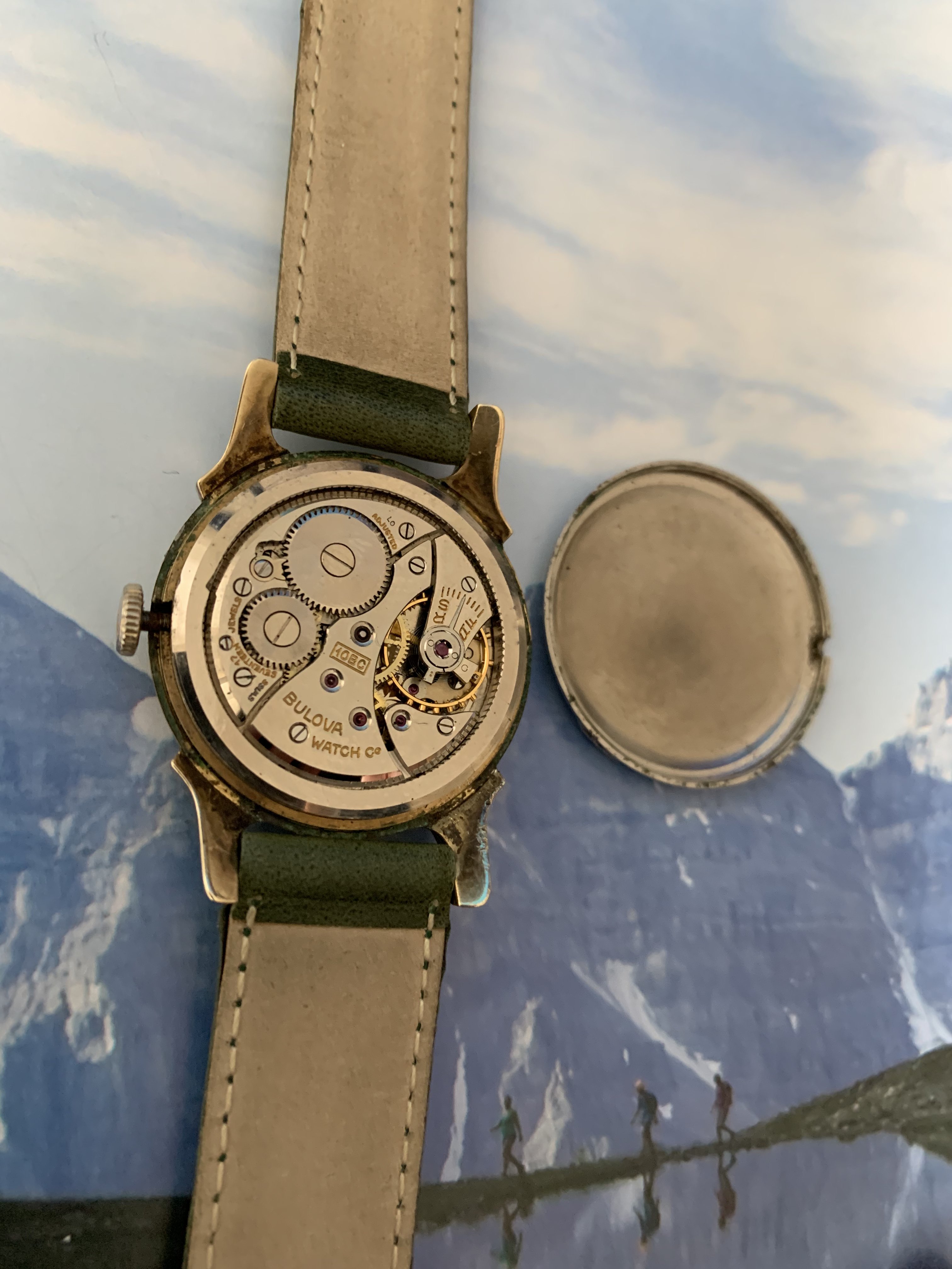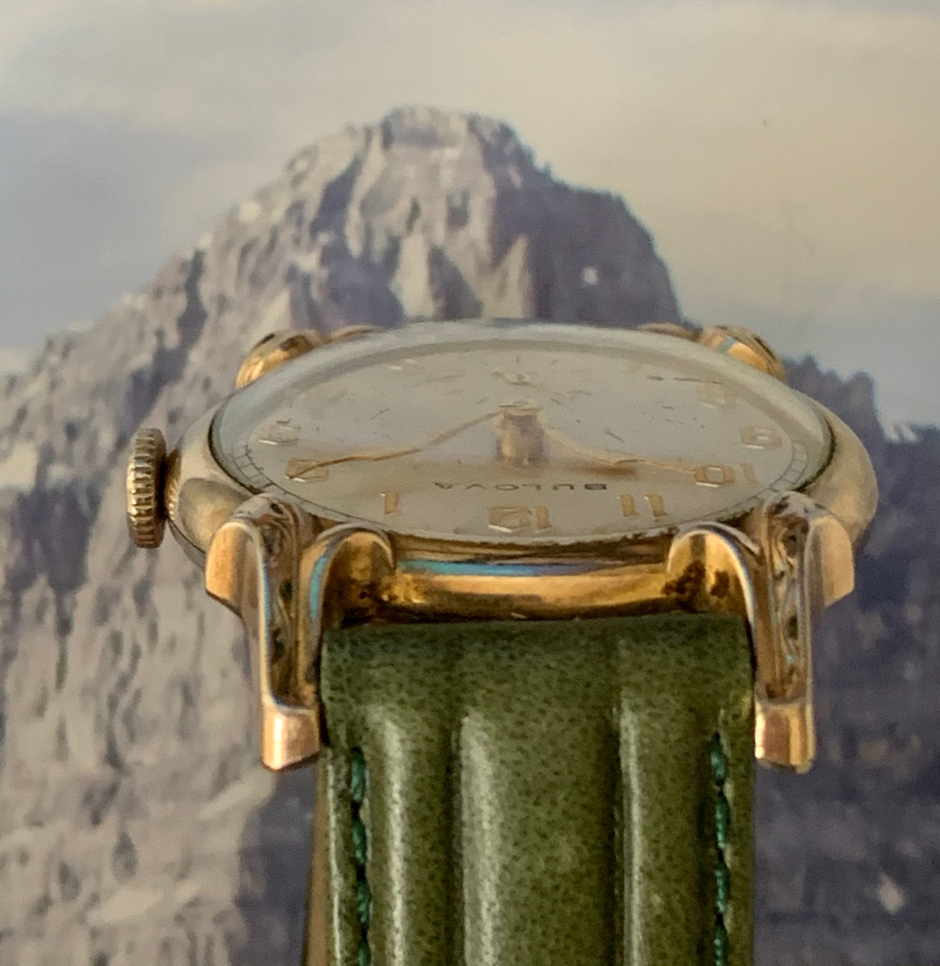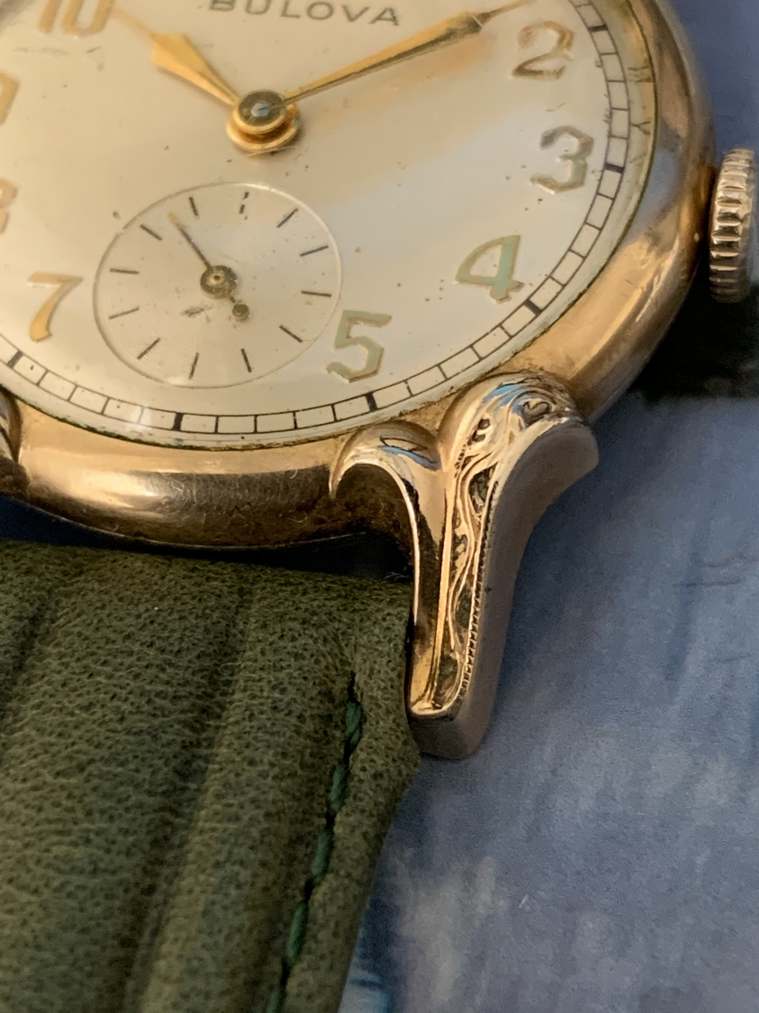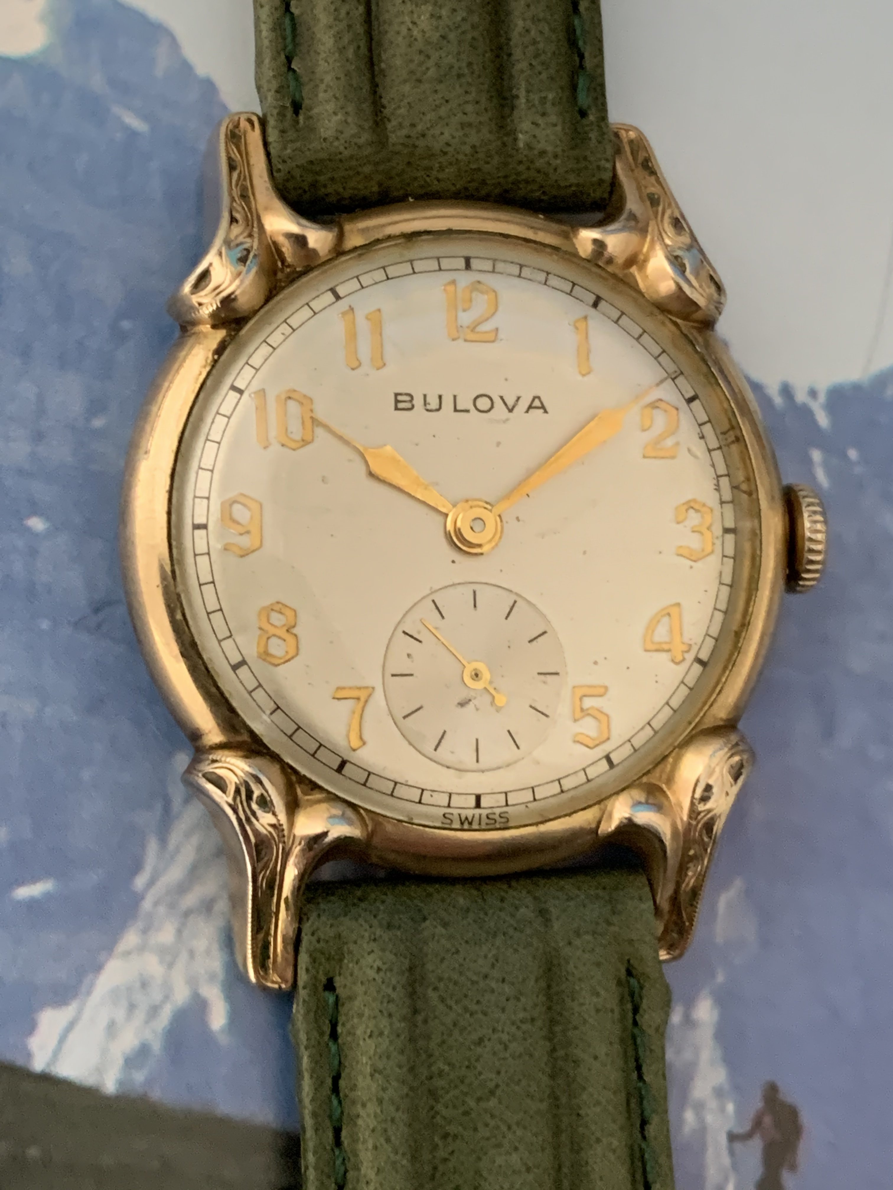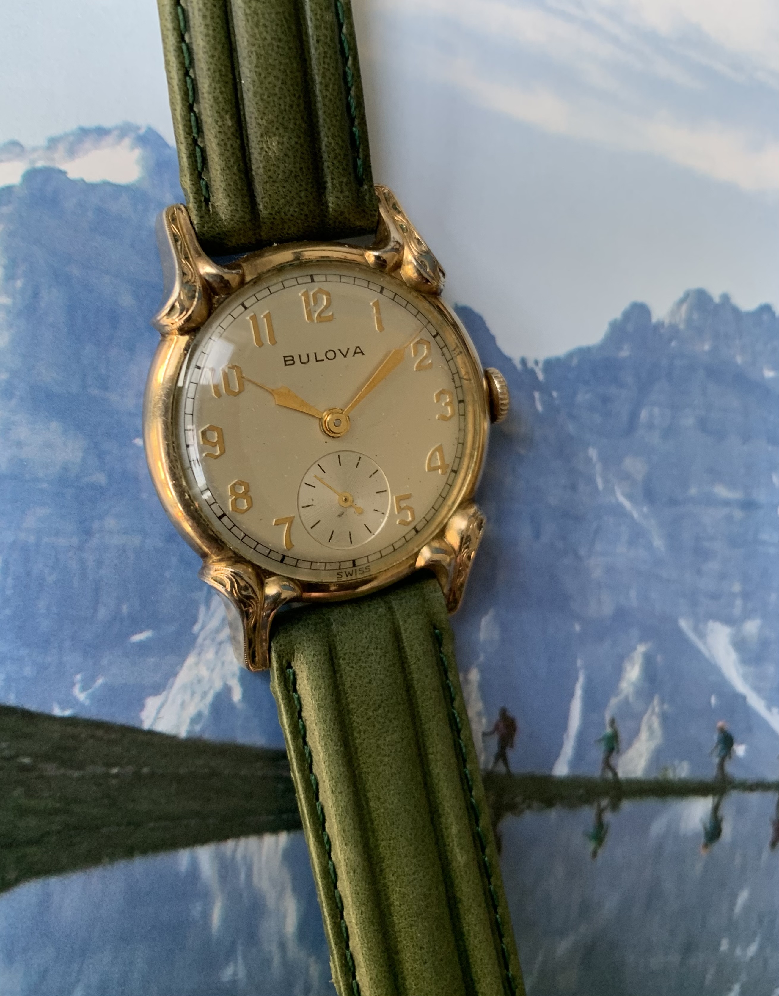 What we have is this handsome 1950 Bulova “Windsor”. The 30mm case is small by today's standards, but it was marketed as a man’s watch. This is an uncommon model, with a super attractive design that (IMO) marries 1930s styling with the 50s