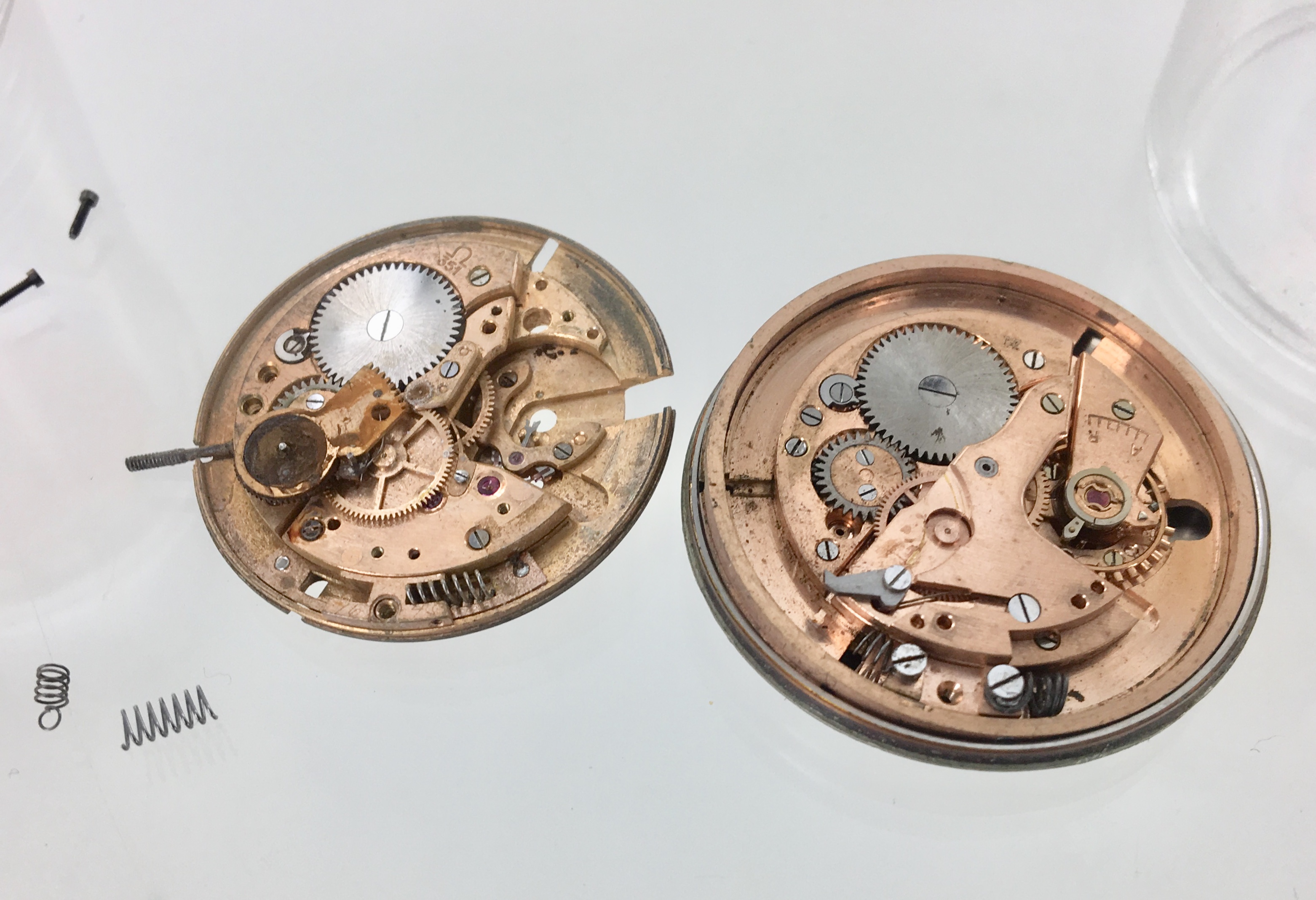 ·I understand that the cal 330 bumper has stop springs located on the center bridge to help cushion the rotor as it rotates. I have a Seamaster cal 2757 that utilizes a cal 355 bumper movement that sounds as if it makes a hard stop on the center bridge. However, unlike the 330 I see no spot for stop springs to attach on the bridge. Did the 355 not use stop springs and hence the hard stop or am I missing something here?