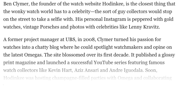As for their stake in Hodinkee, as stated above the figure I read was 40 million. (Dollars or euros, I forget).