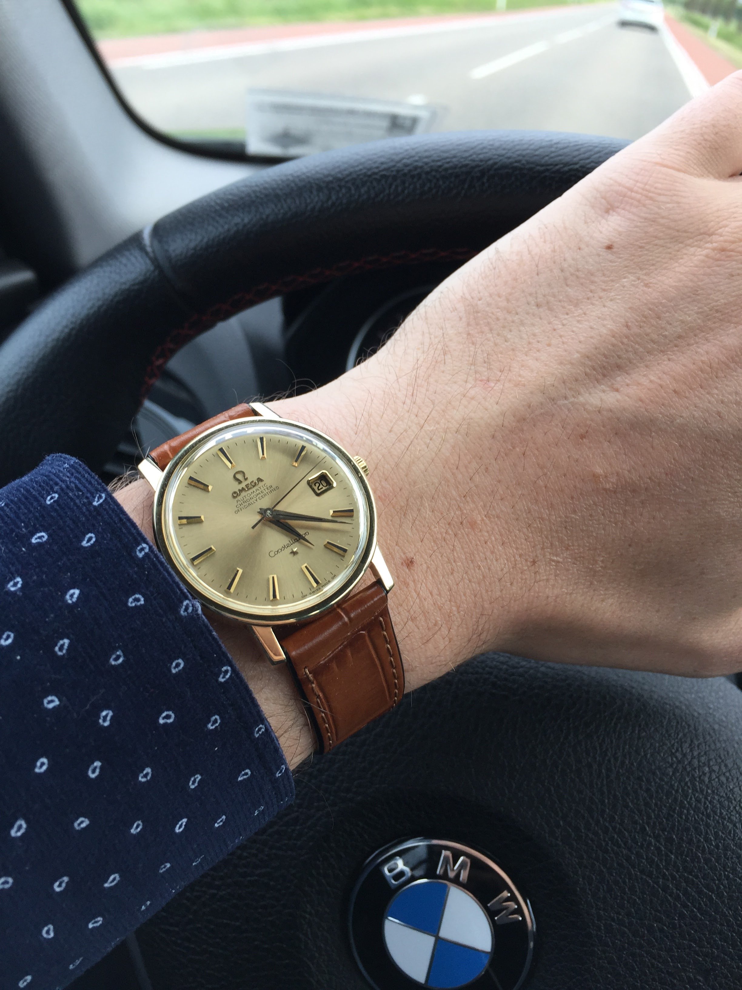 That tag is for a small two tone ladies constellation with a mother of pearl dial and a quartz movement...