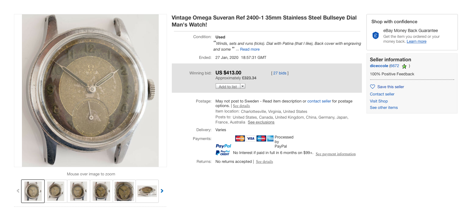I've been eyeing for an Omega Officer (black), or an Omega Suverän (black) as my first vintage mechanical watch. This one seems to be authentic to my untrained eyes.