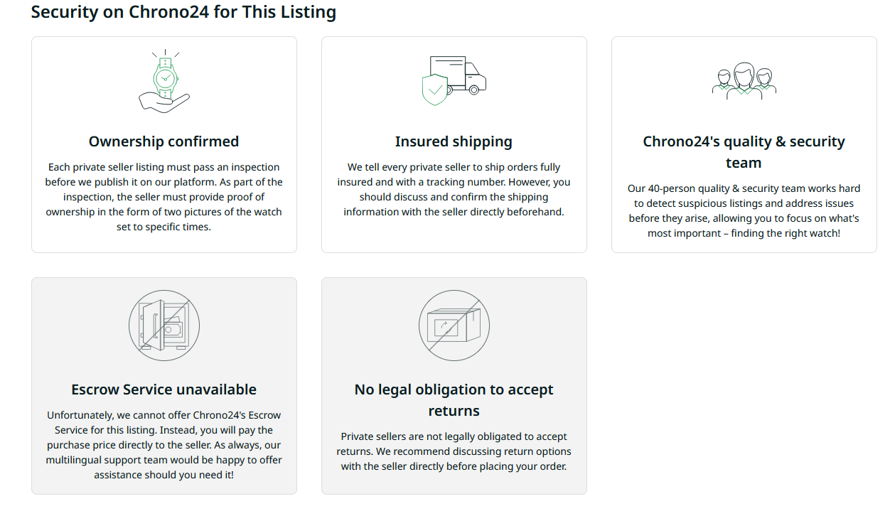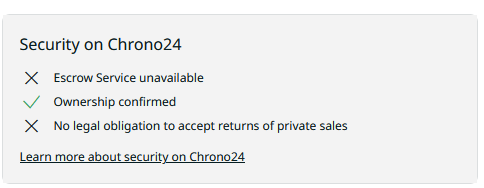 I'm interested in an early 1970's Omega watch that is available for sale on Chrono24 from a Private seller. I've never purchased on Chrono24, let alone from a private seller. I've looked through threads on OF for guidance, but most date from years ago, and Chrono24's policy may have changed since.