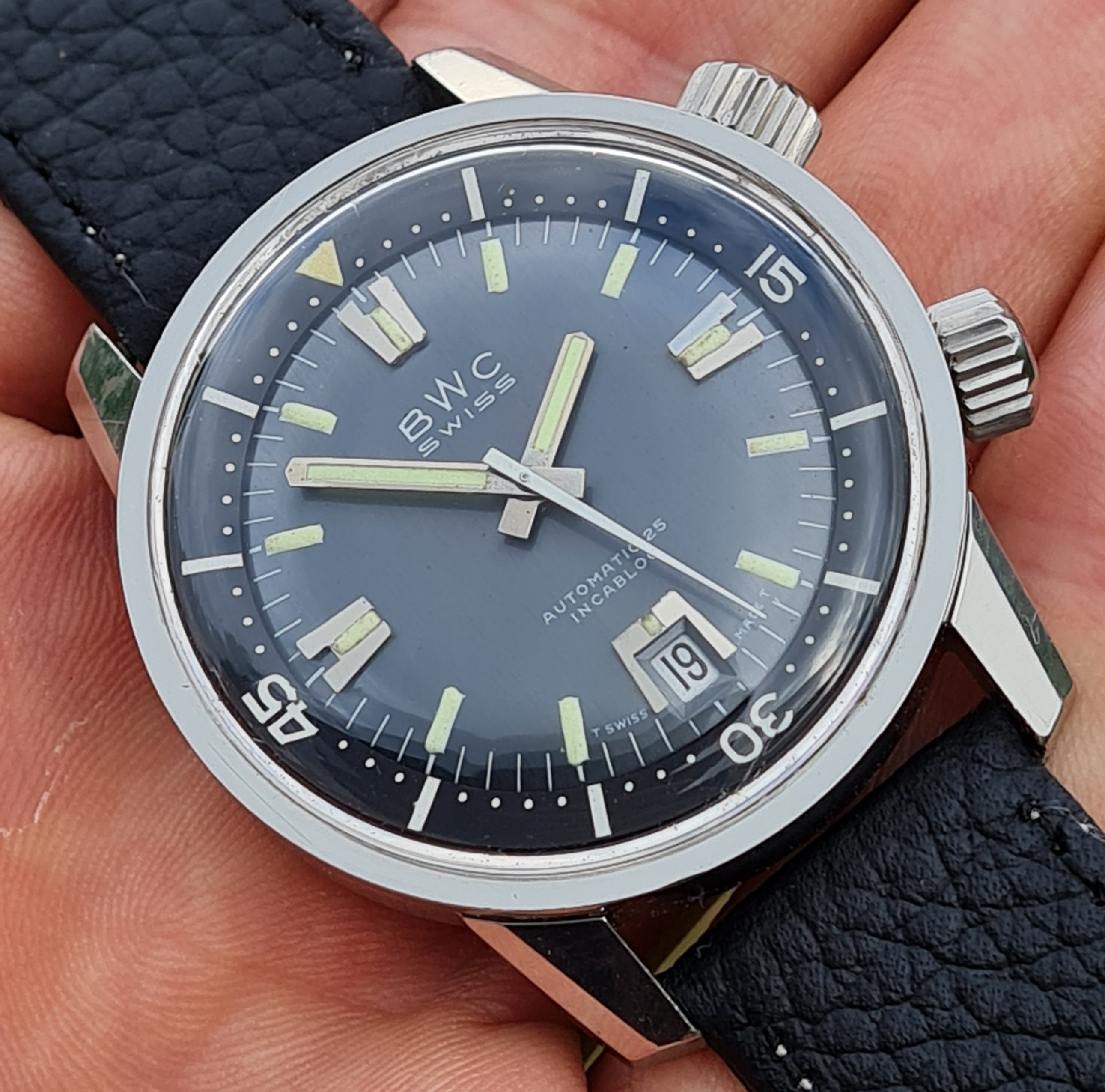 The lume looks great and the dial has a wonderful black/anthracite color.