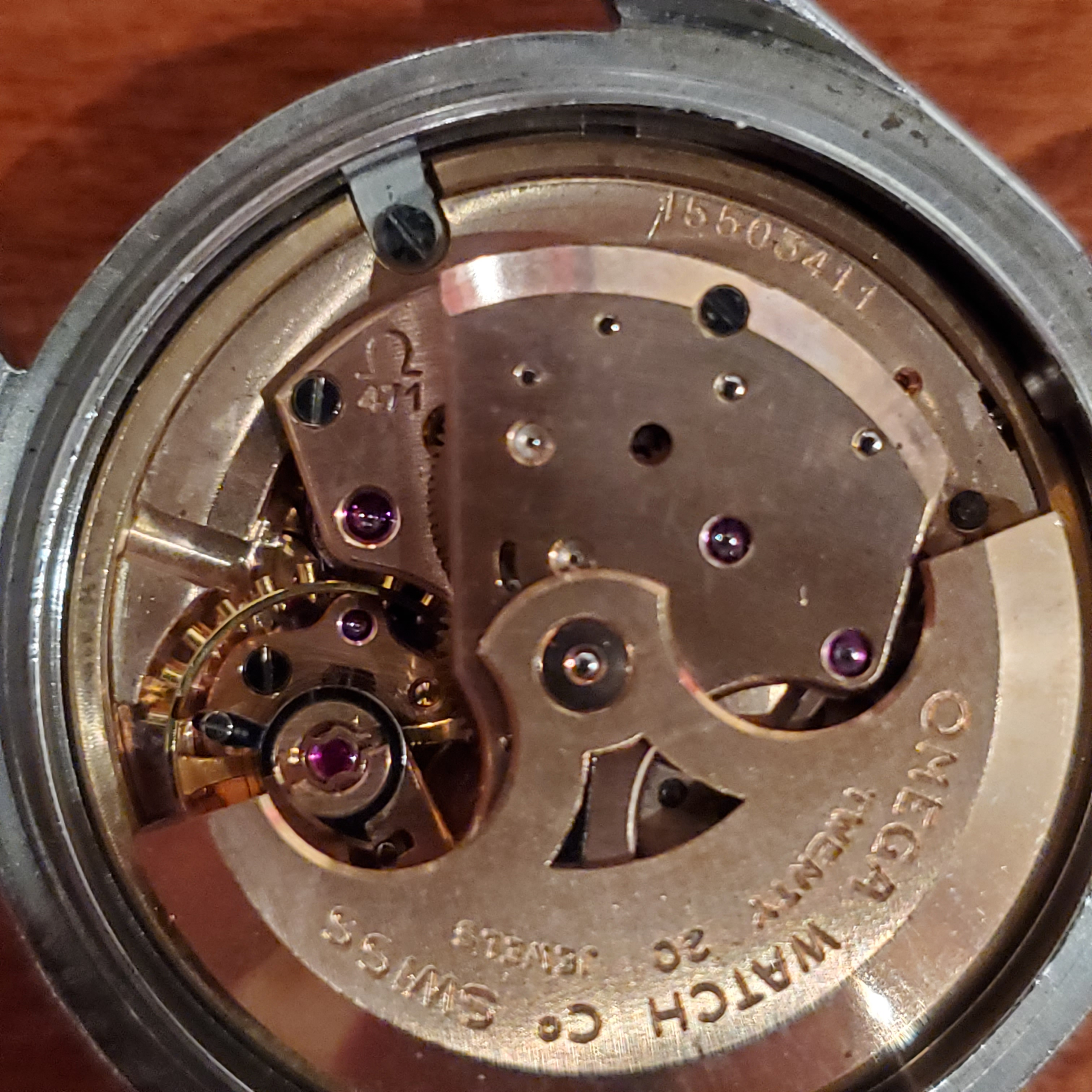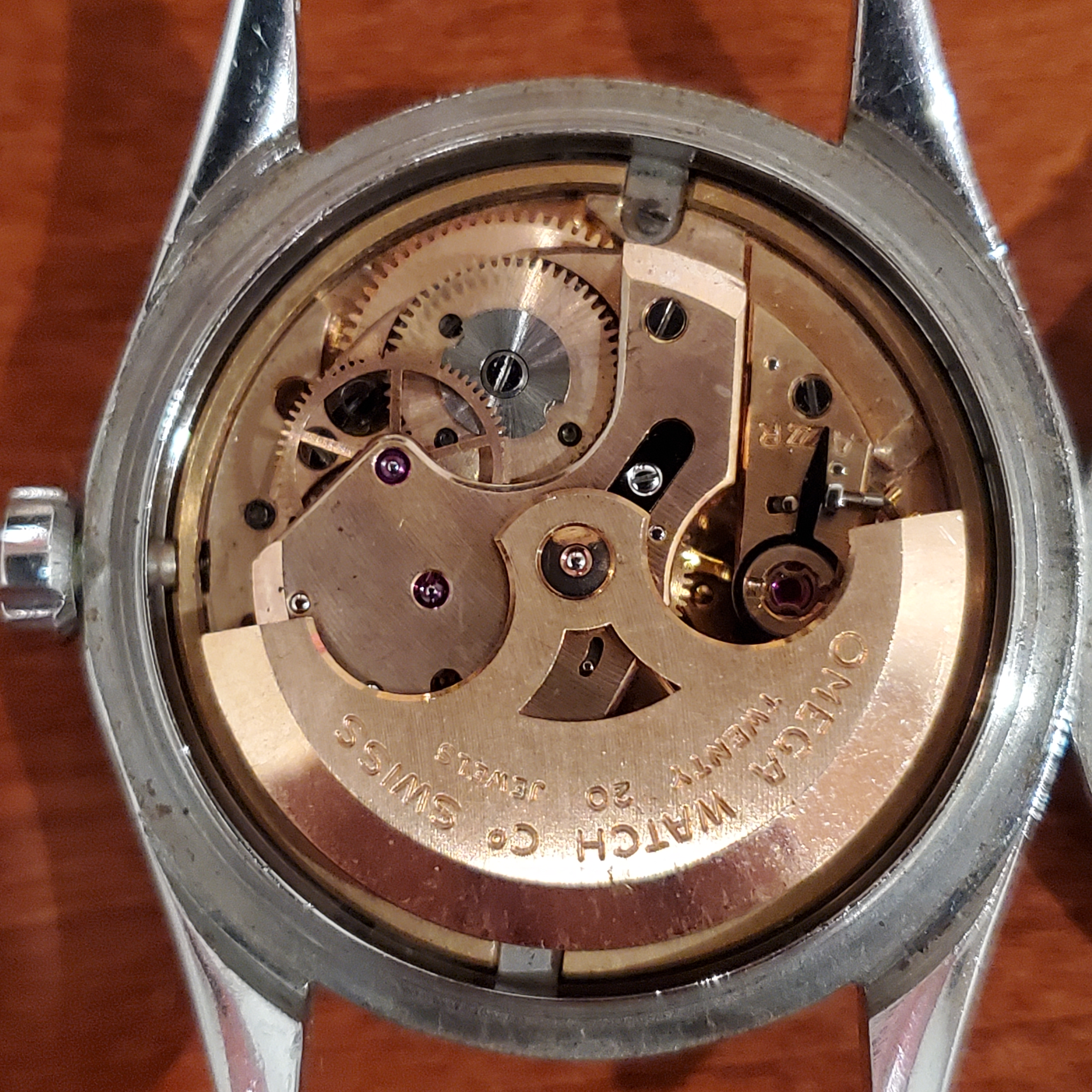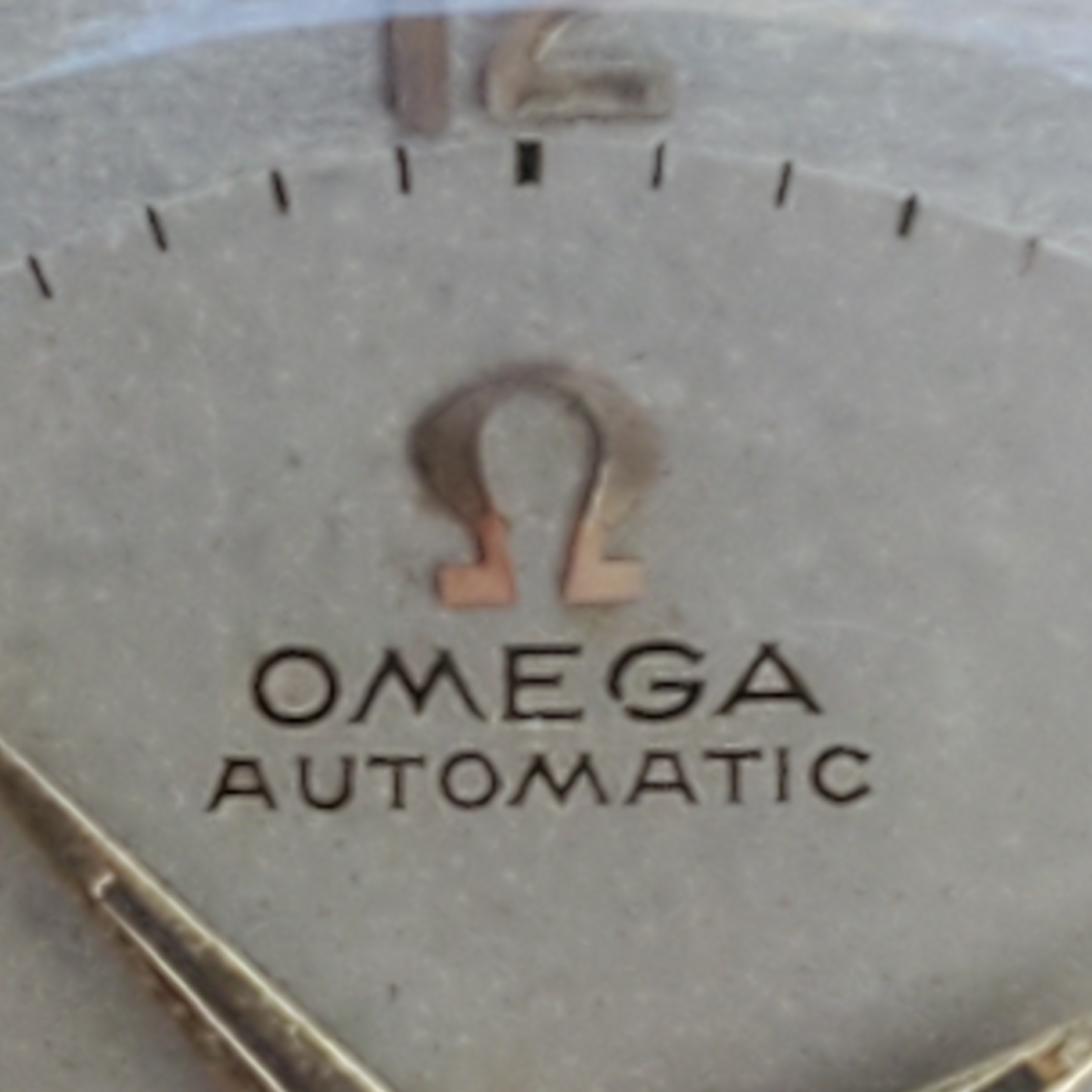 Dial, Hands, and Crystal - The dial has a very nice even patina and the text all seems original to me. The gold hands and indices are in good condition. The crystal has the Omega logo, but it has several deep scratches that may not polish out.