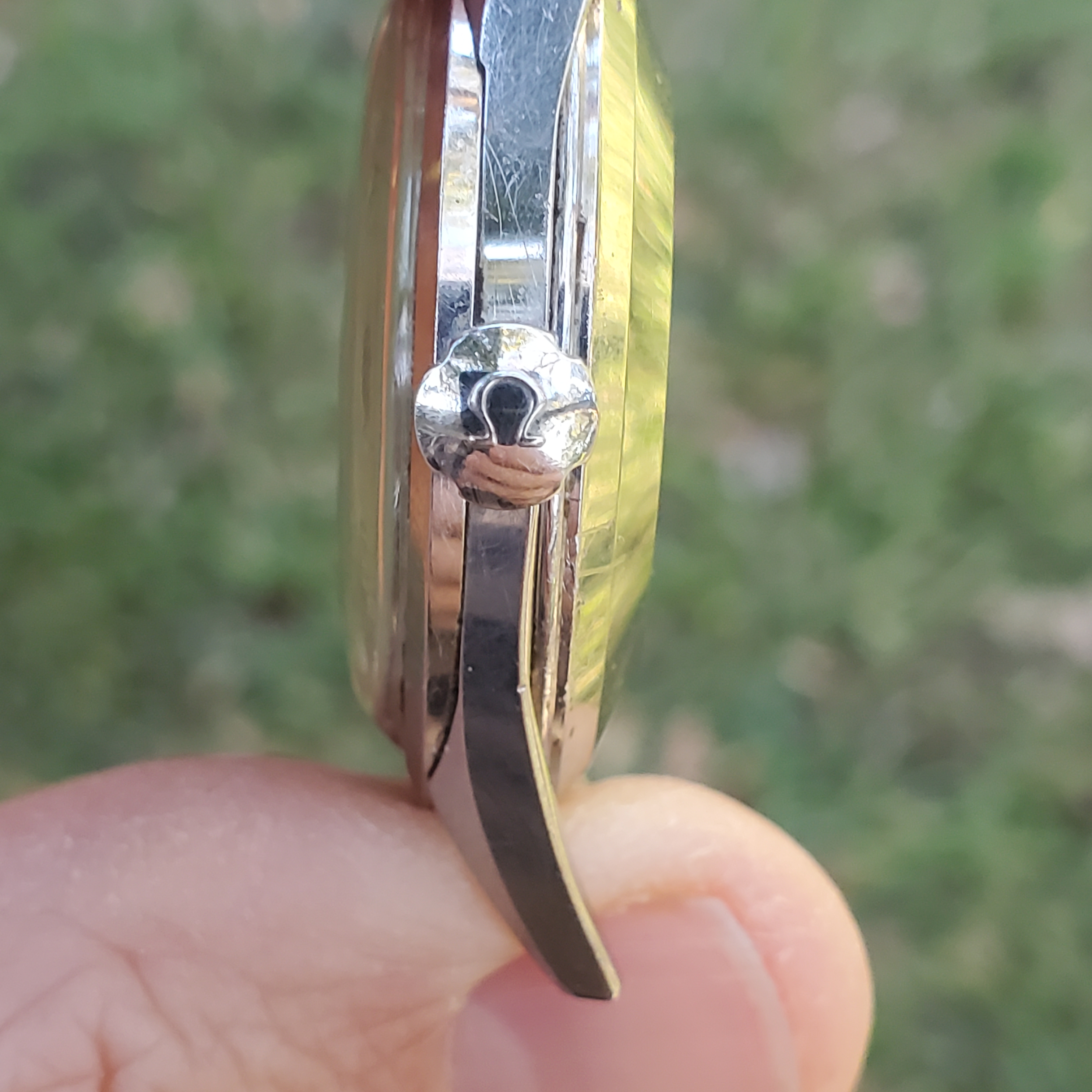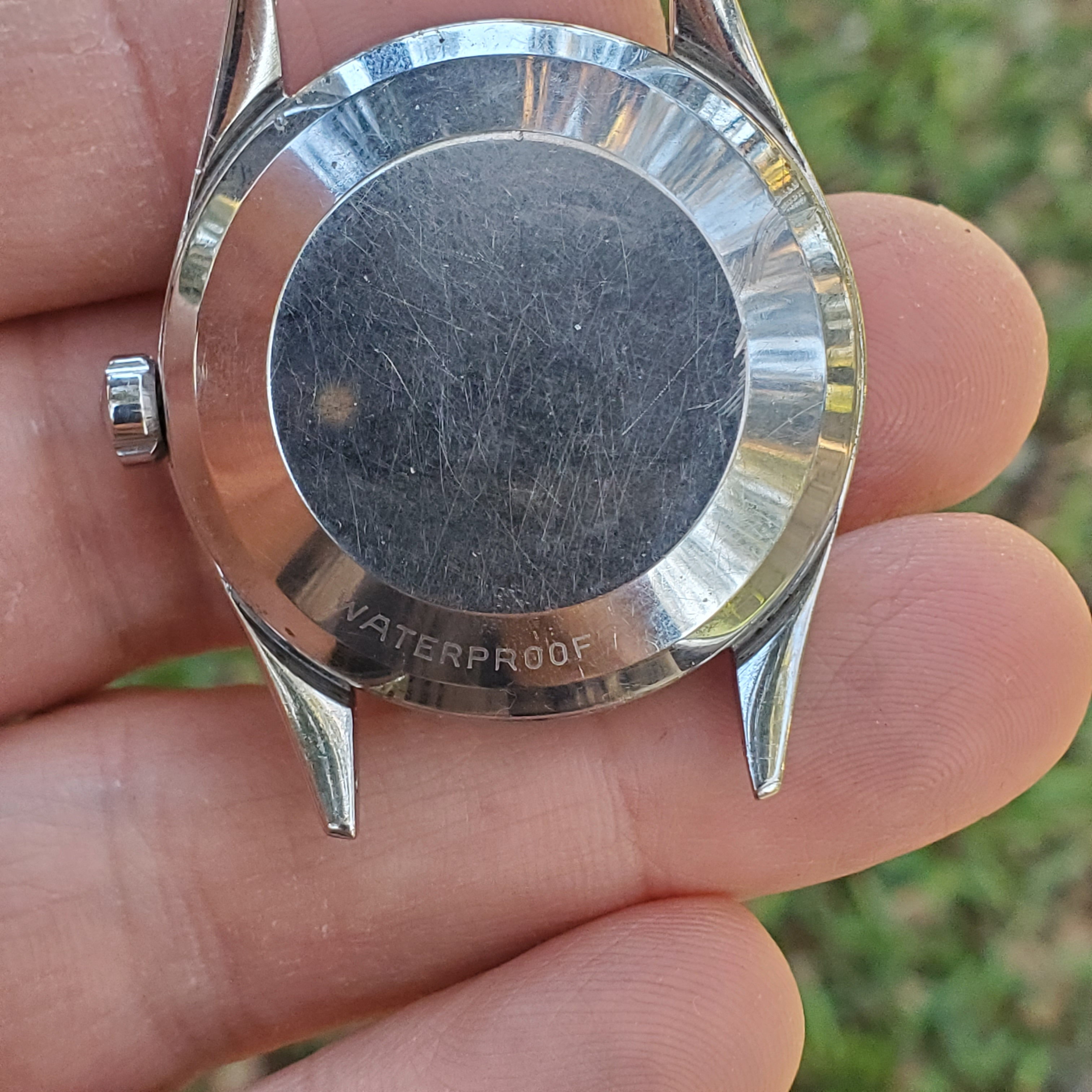 Case - Stainless steel. Approximately 33.5 mm diameter excluding the crown. Lug width is 18 mm. The case is honest and, I believe, unpolished. Some scratches are visible.